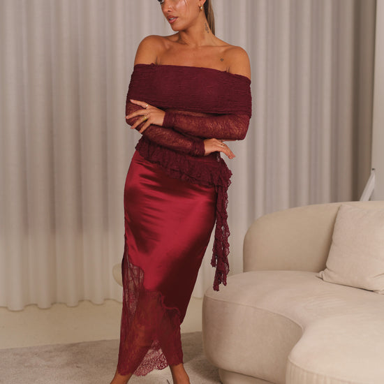 Blusa off shoulder rendada - bordeux