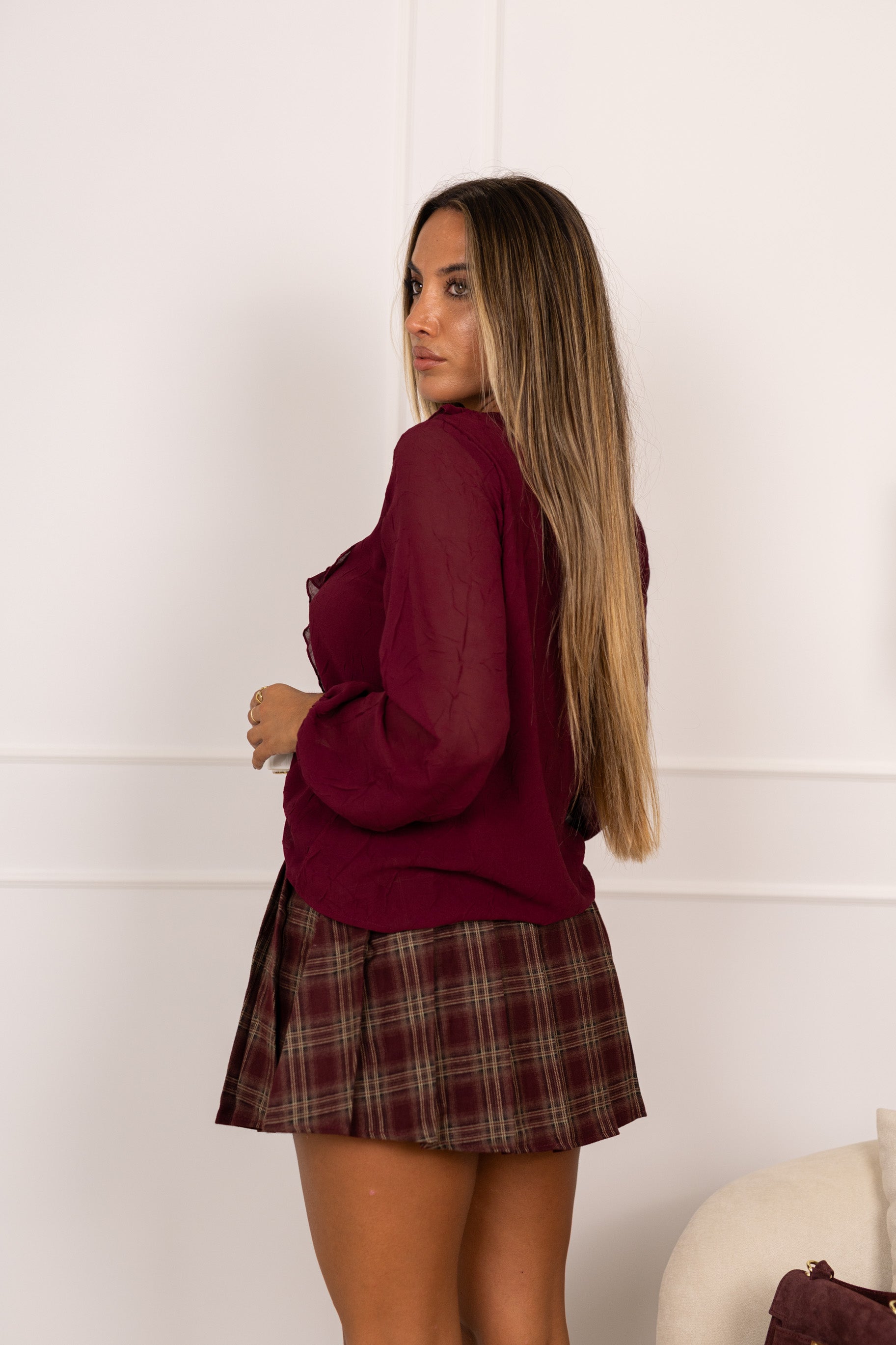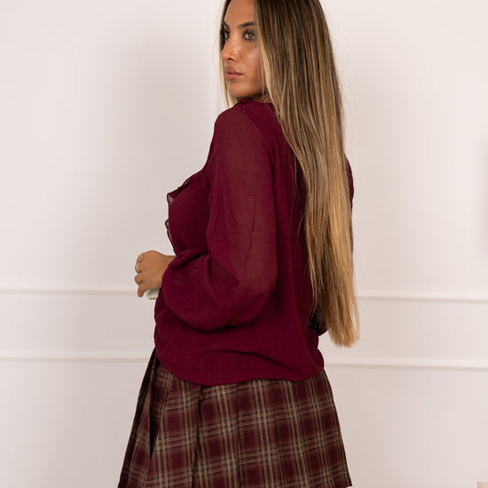 Blusa texturada c/ atilhos - bordeux
