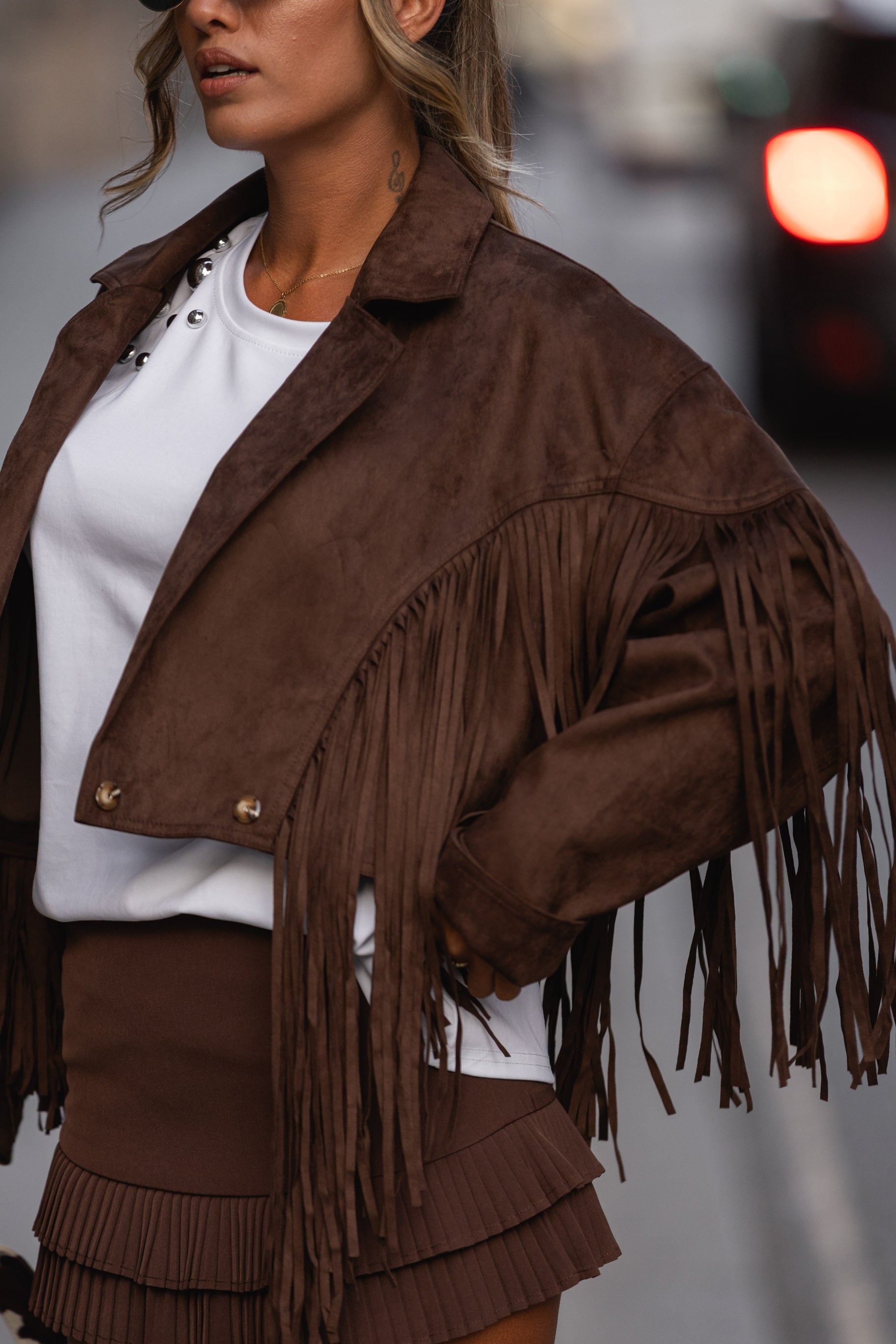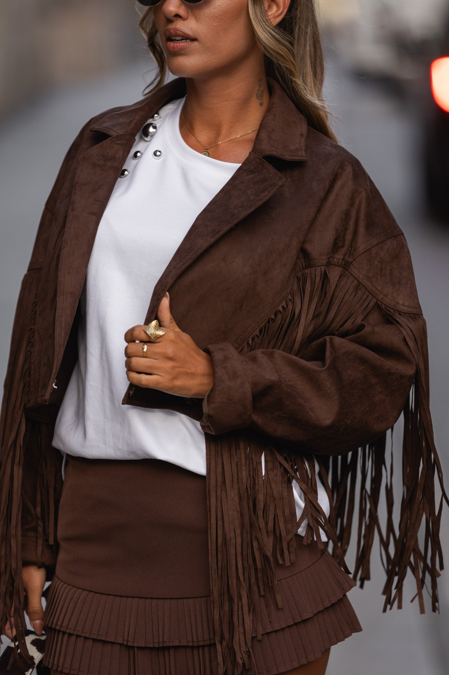 Bomber franjas - castanho