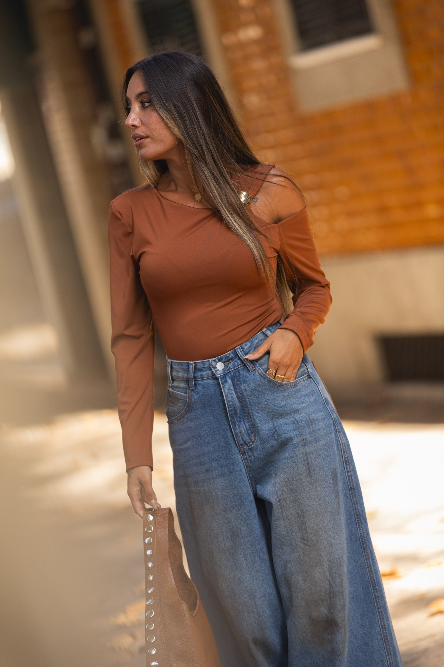 Veste o tamanho certo. A modelo está com S.
