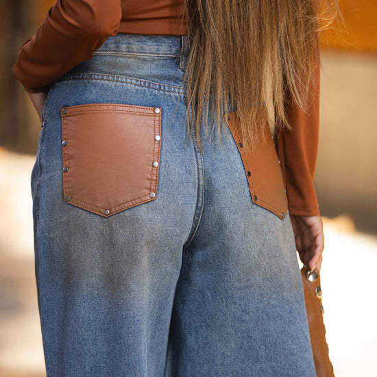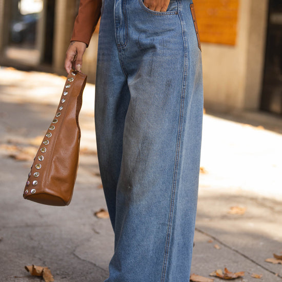 Calça de ganga c/ bolsos ecopele