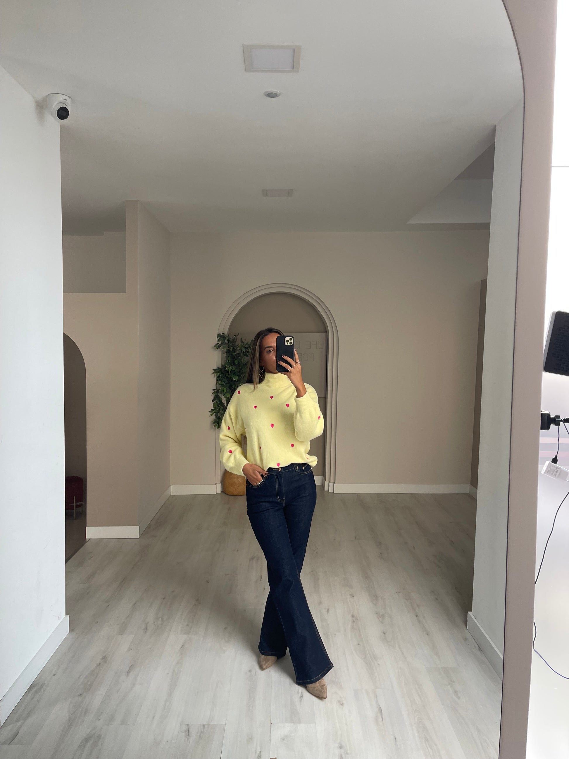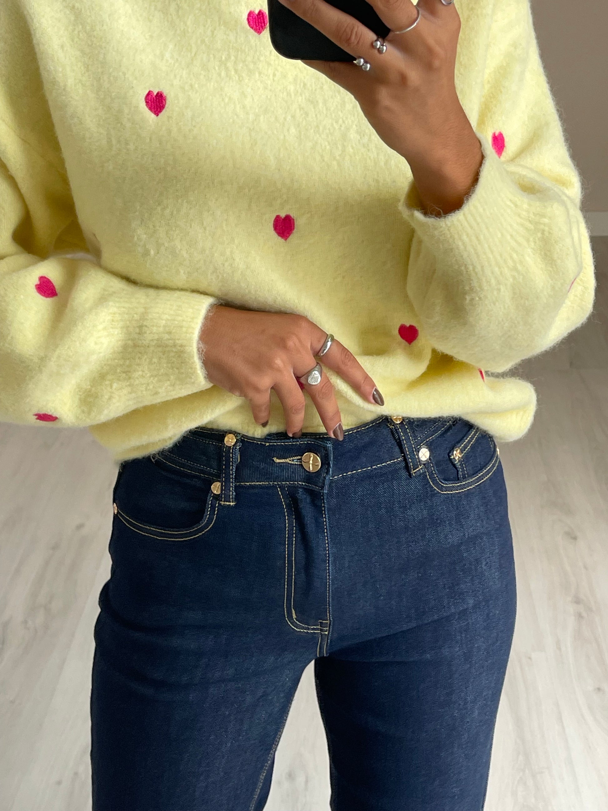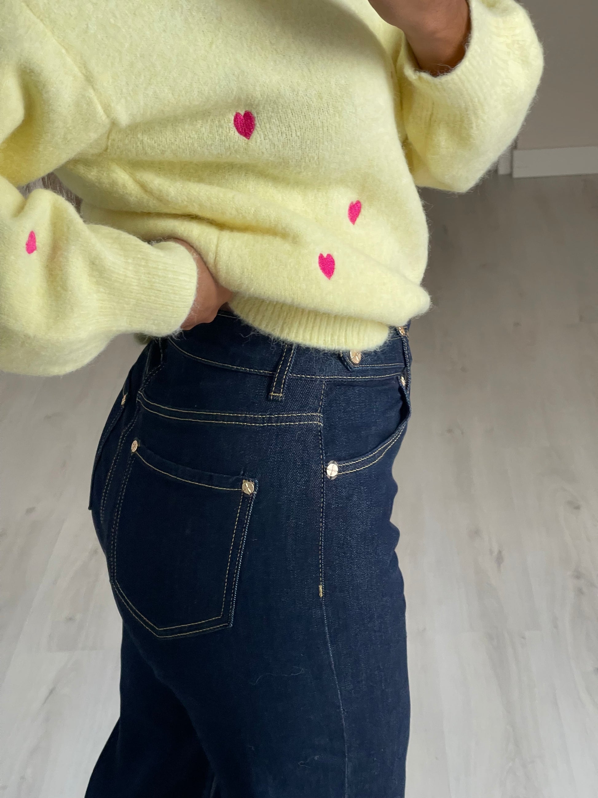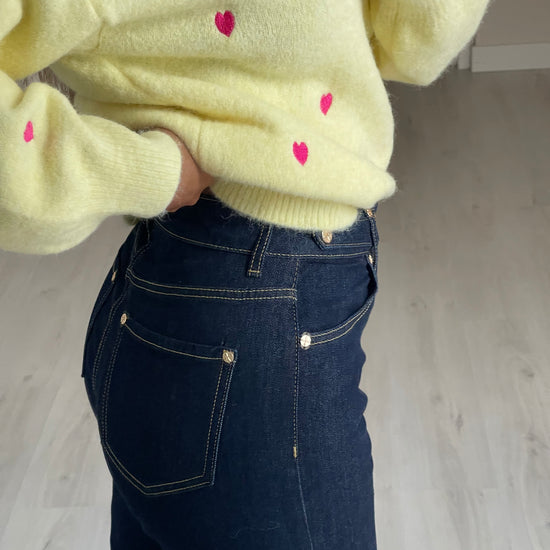 Calça wide leg c/ pormenor dourado na cintura - Ganga escura