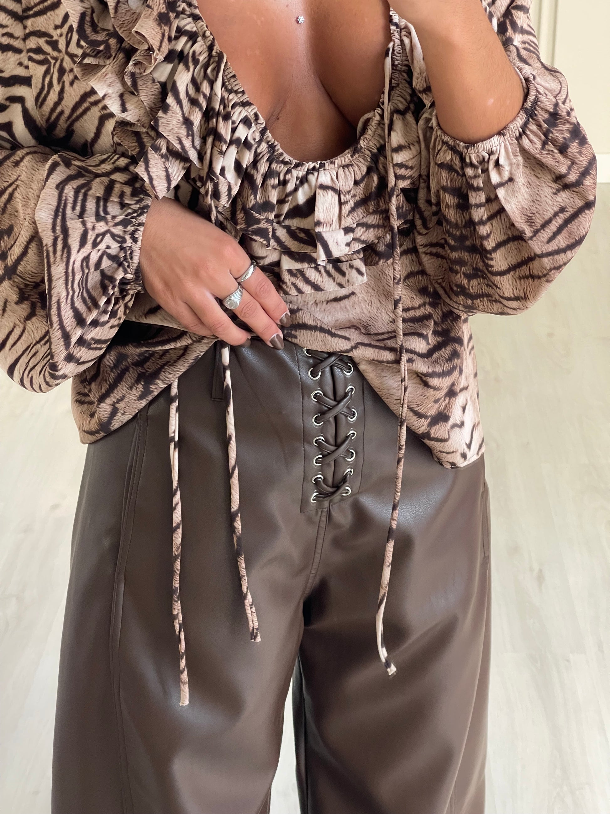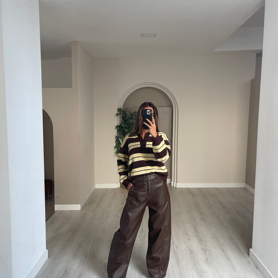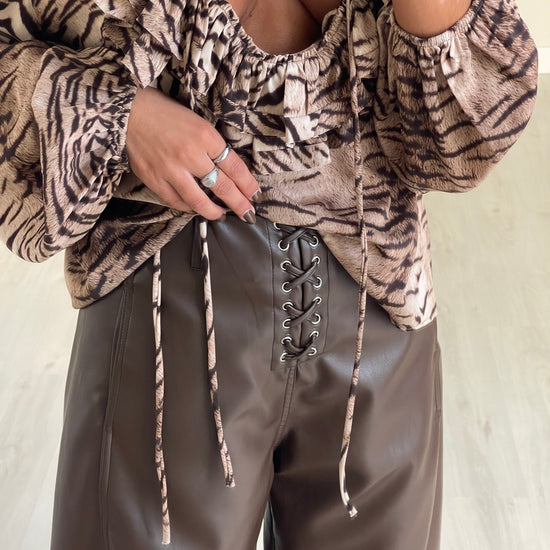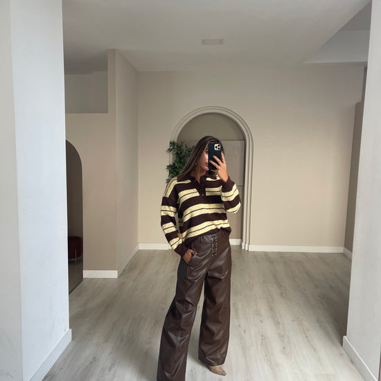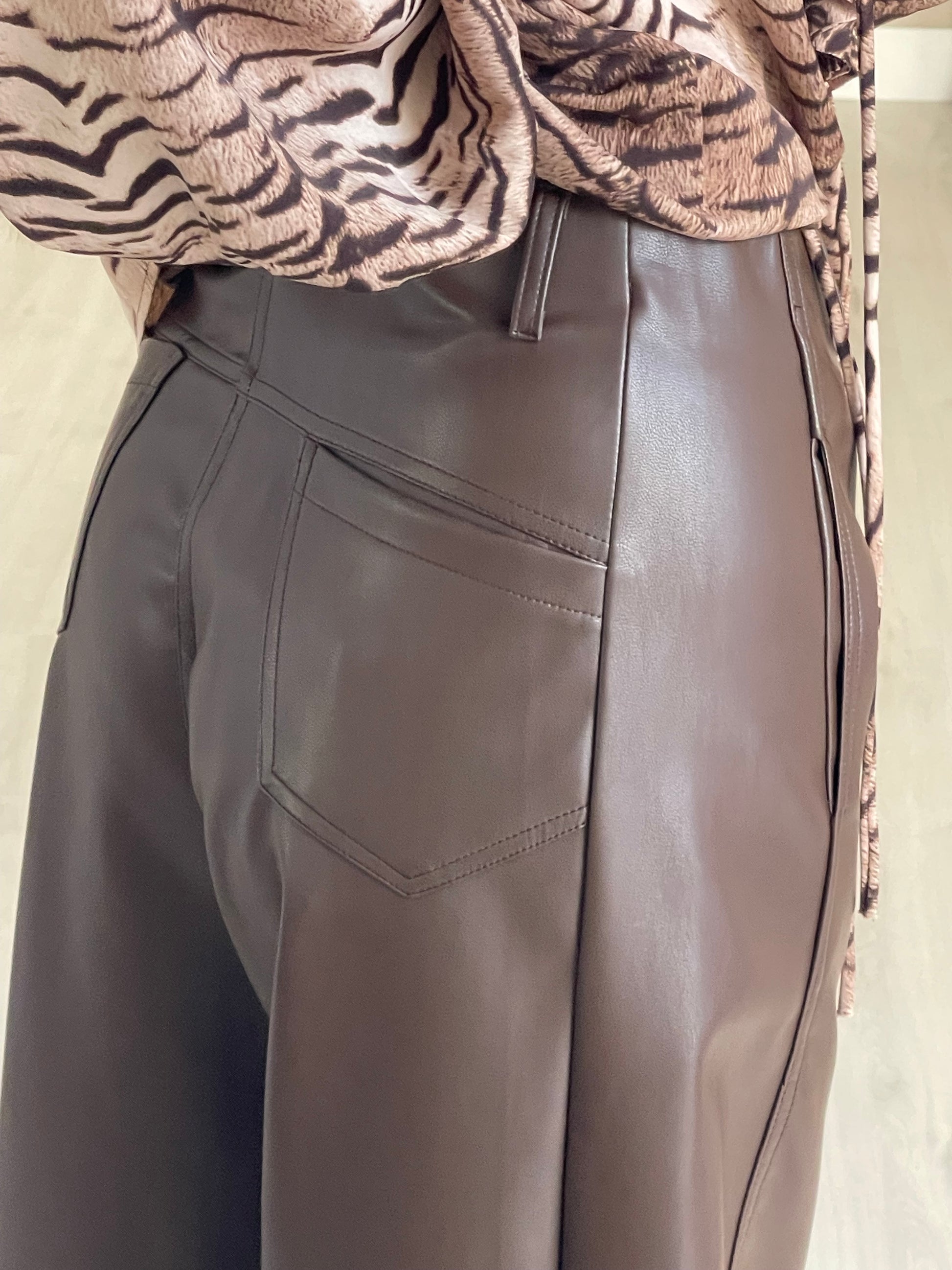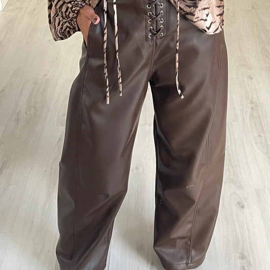 Calça wide leg ecopele - castanho
