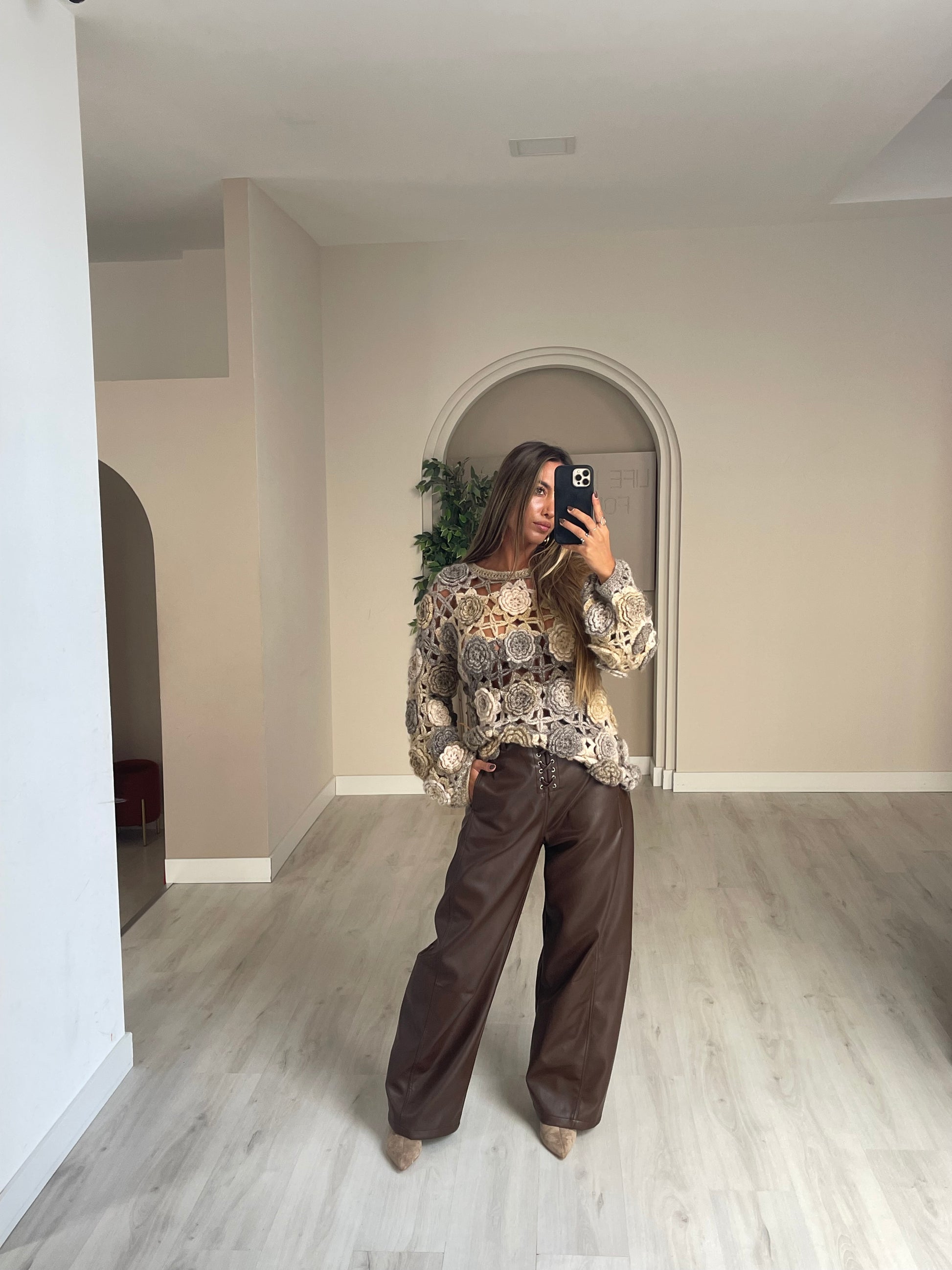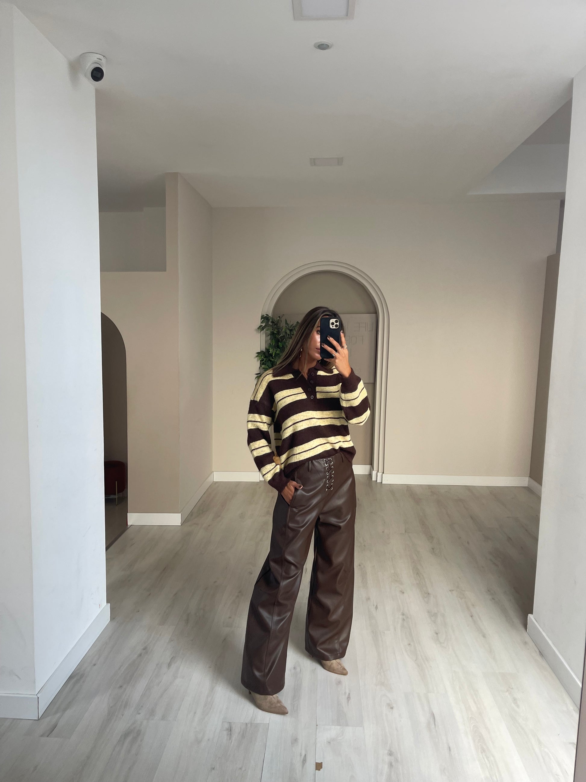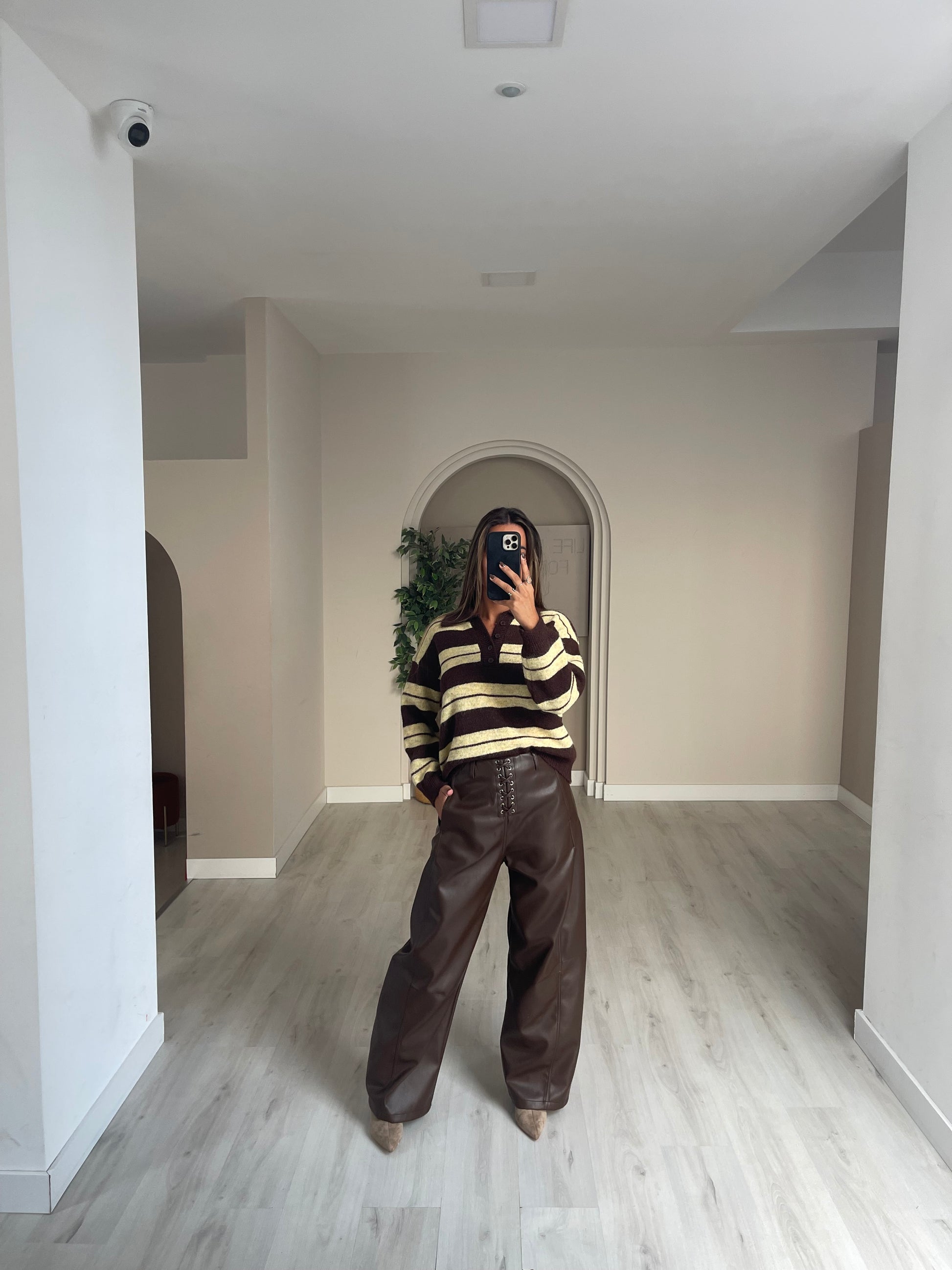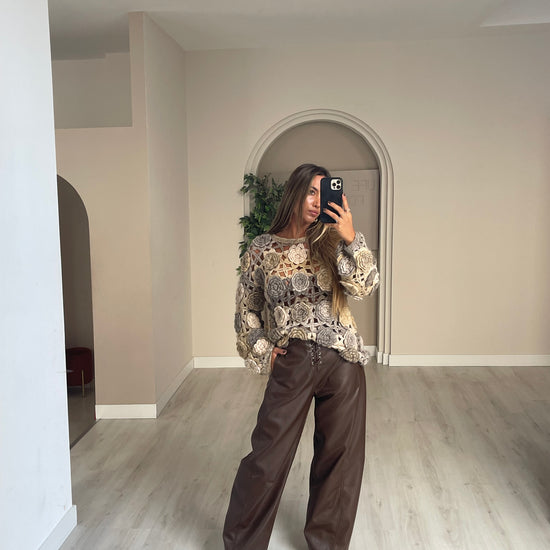 Calça wide leg ecopele - castanho
