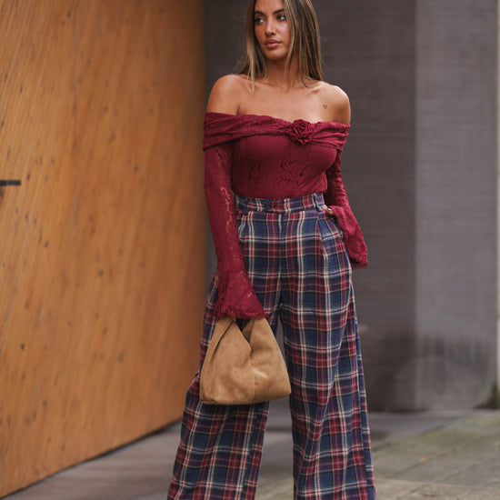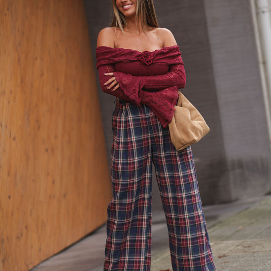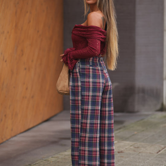 Calça Xadrez - azul marinho c/ bordeux