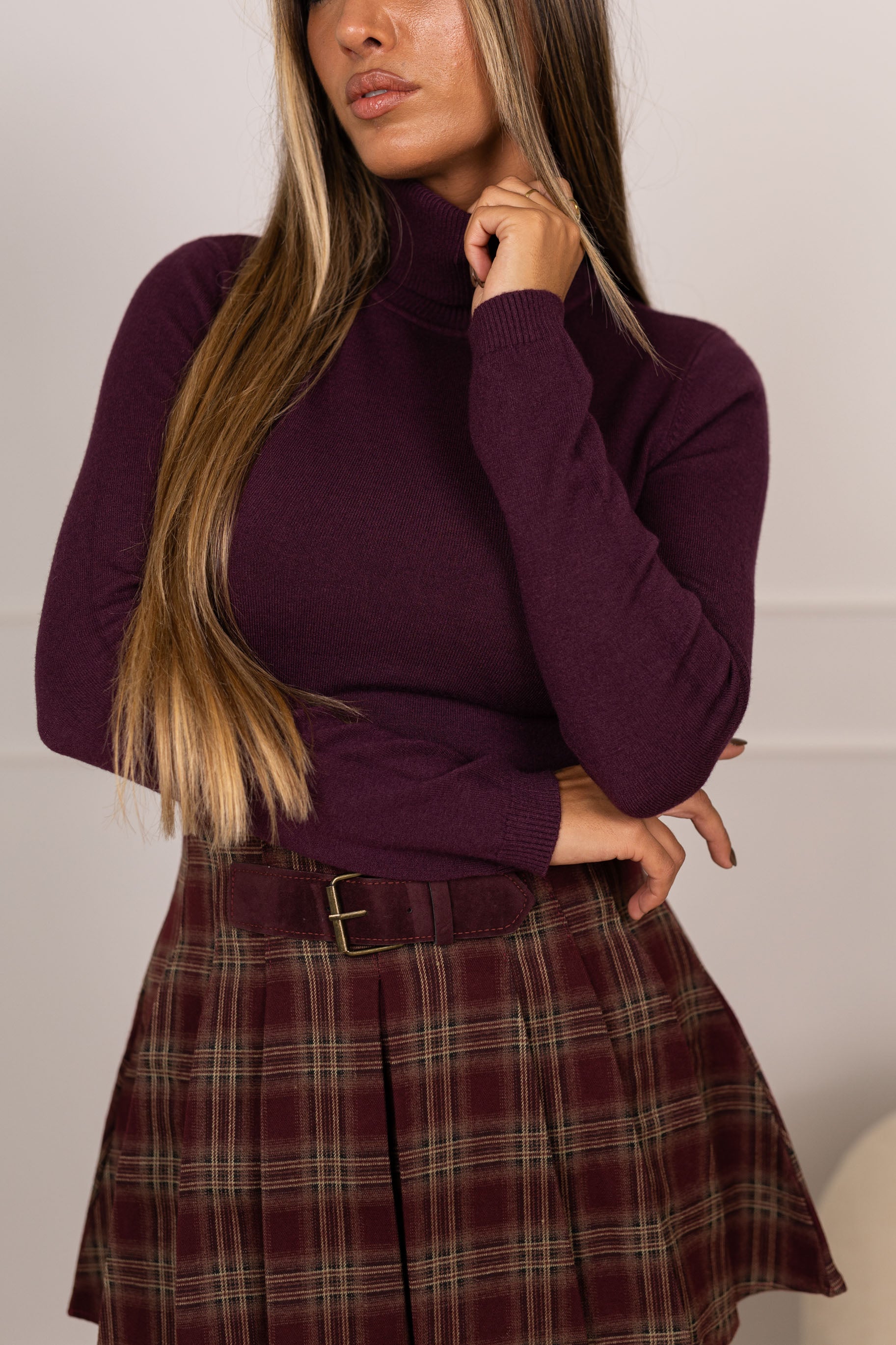 Camisola básica de gola alta - bordeux