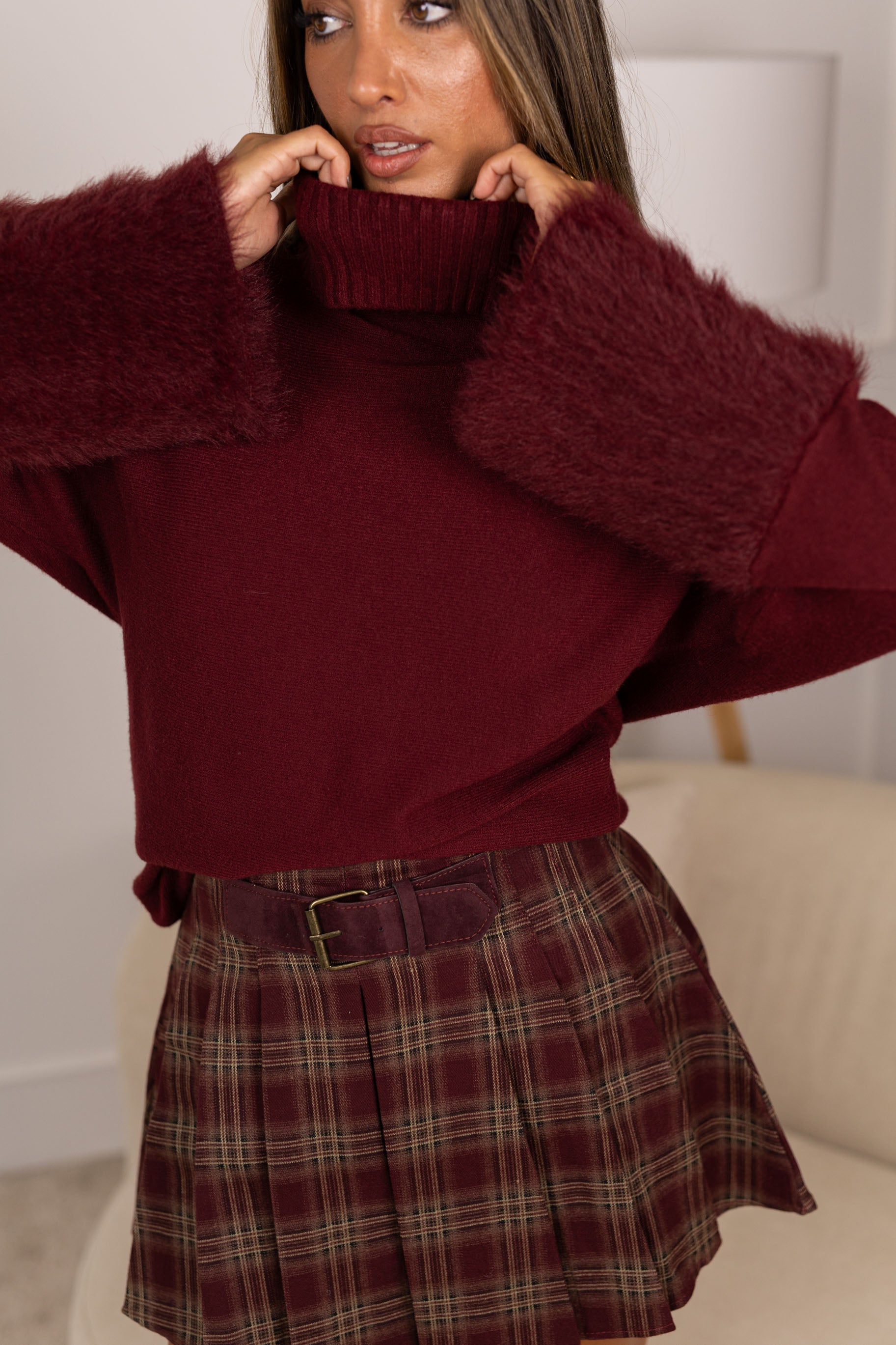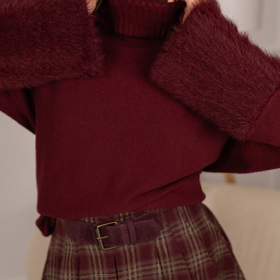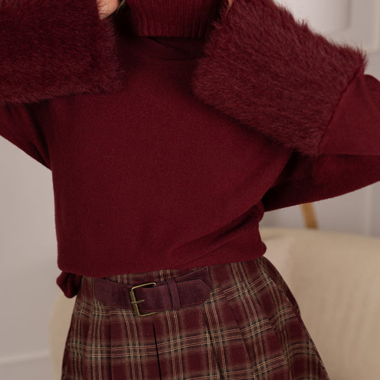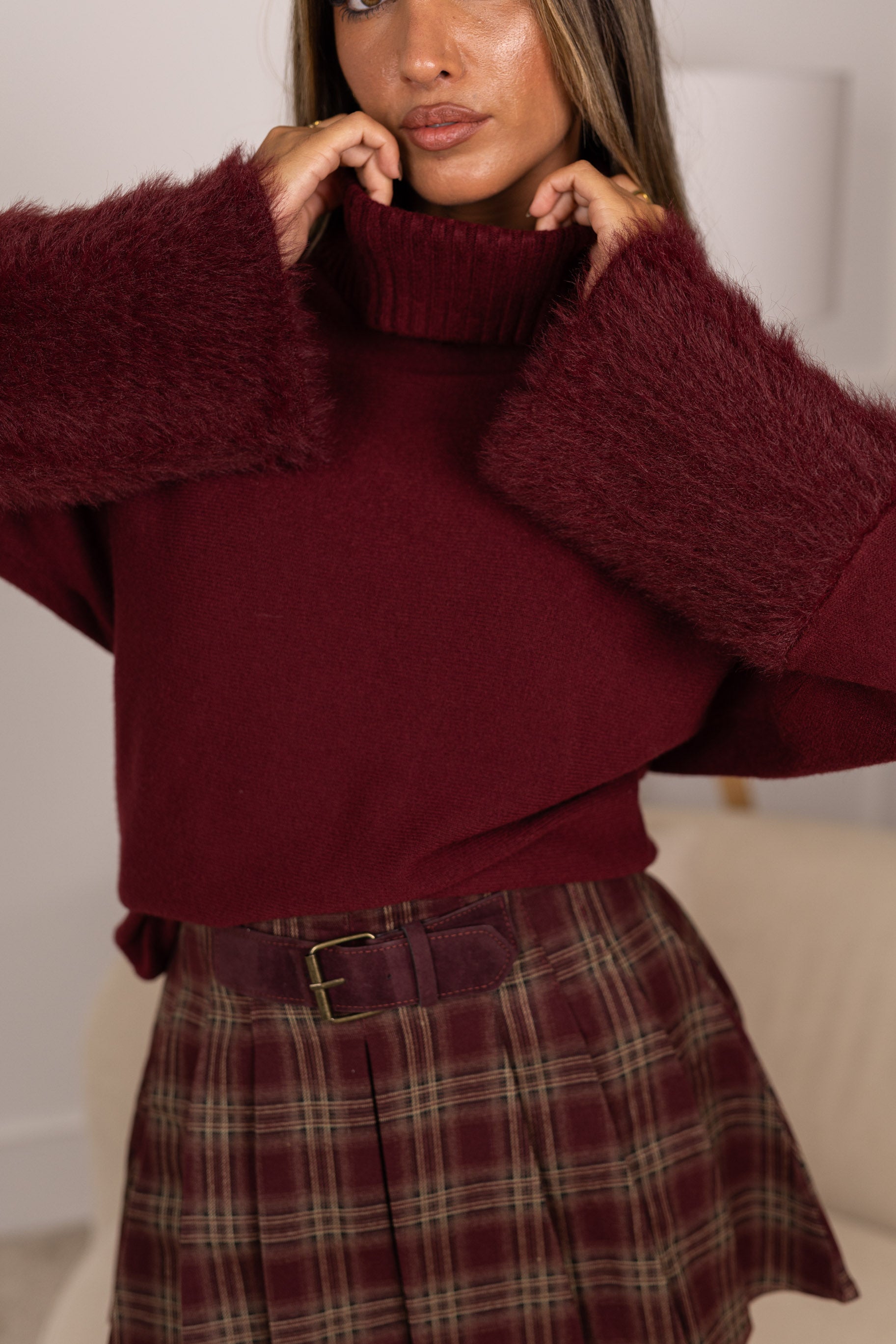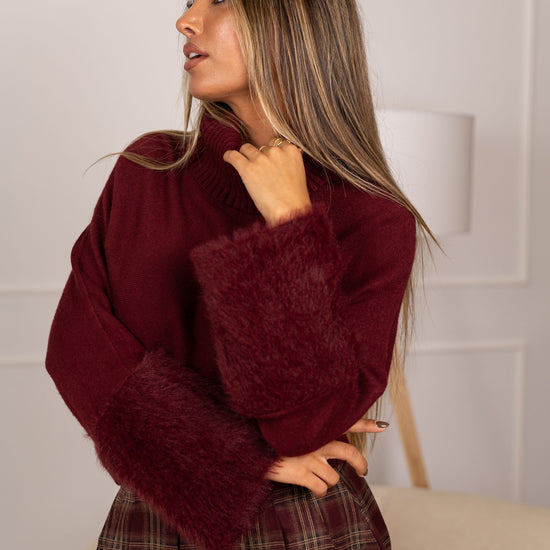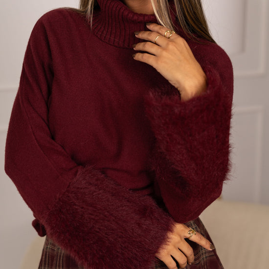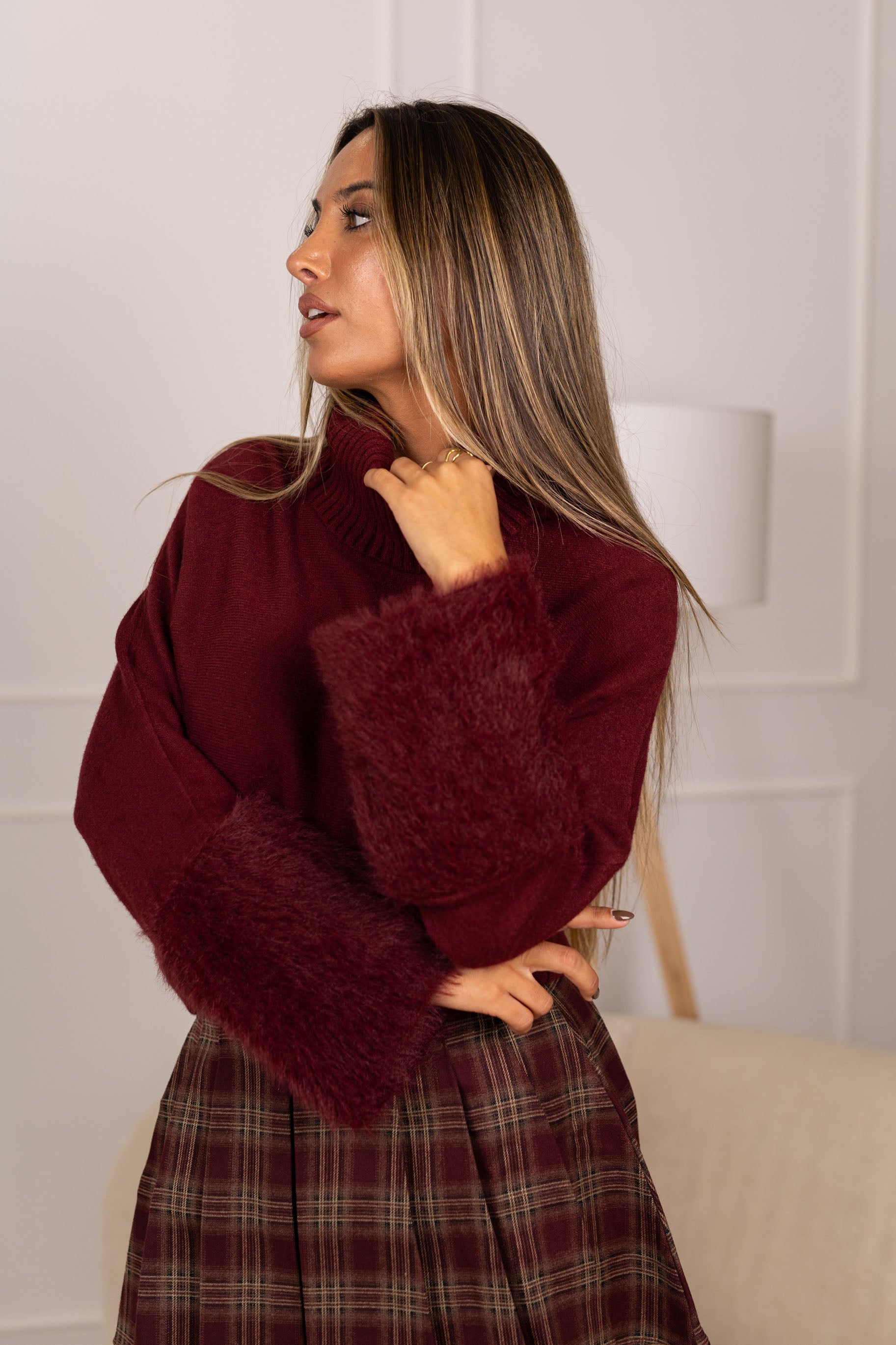 Camisola em malha, com pormenor de pêlo na manga e a gola é soltinha. É tamanho único e serve bem a L/XL