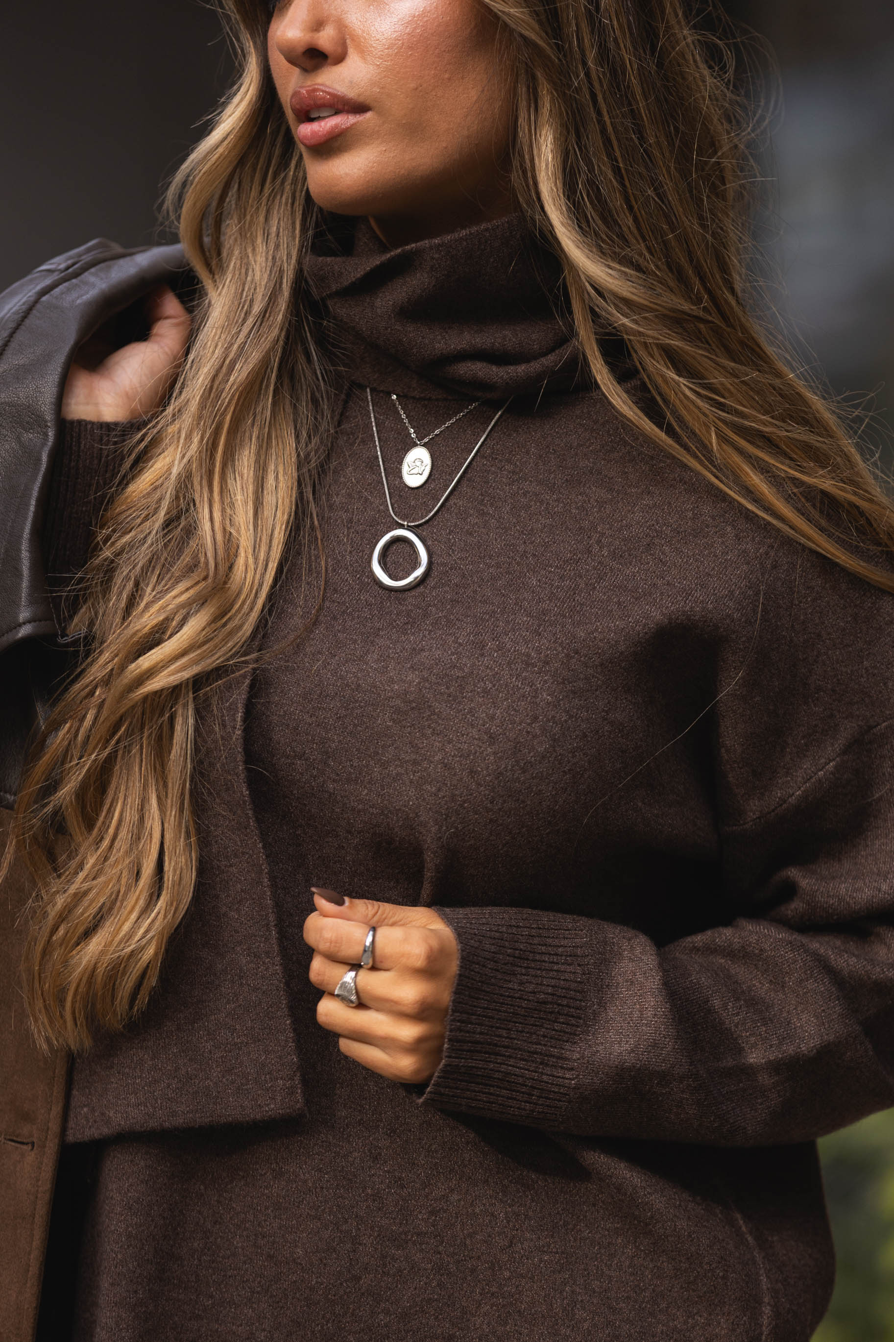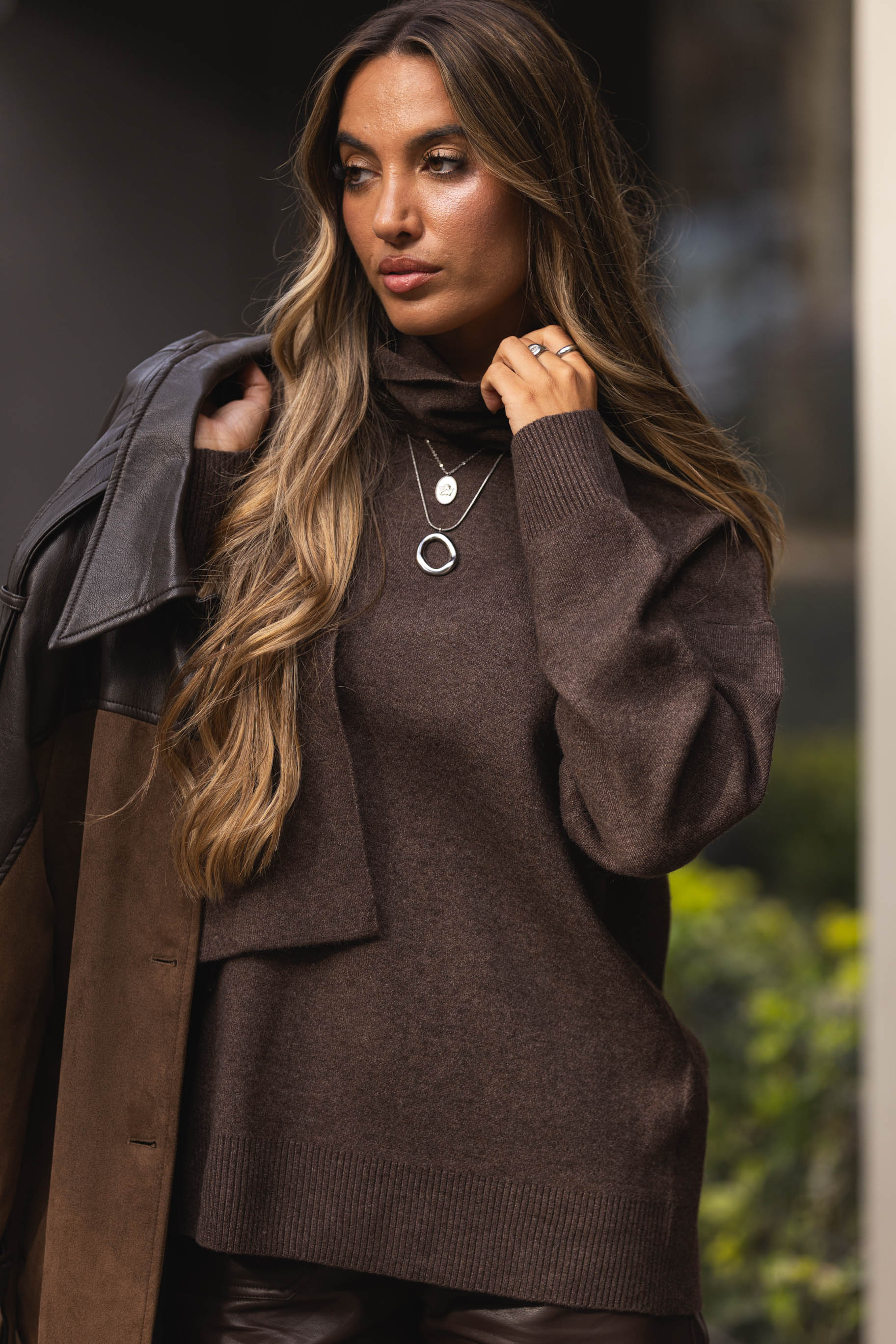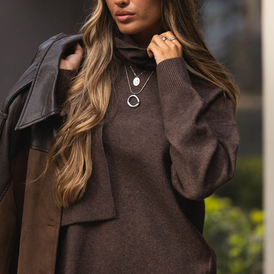 Camisola c/ cachecol embutido - castanho