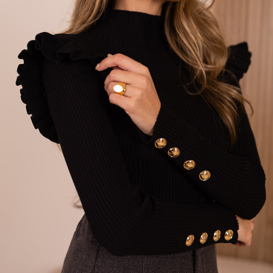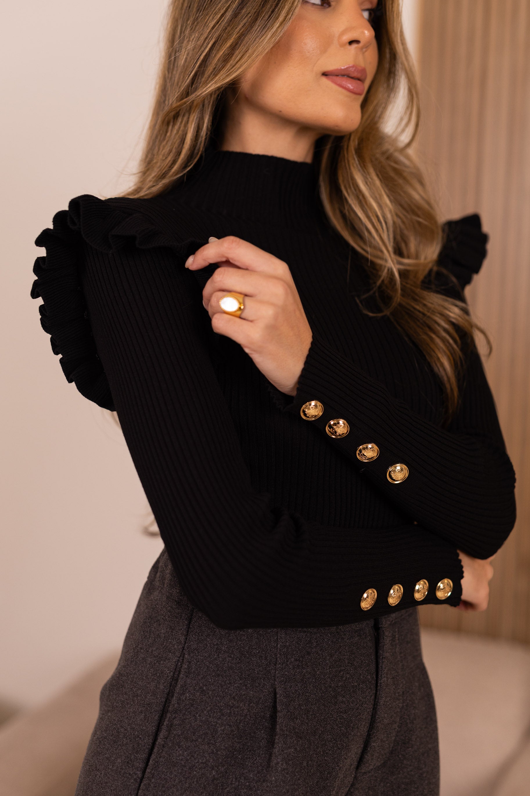 Camisola canelada c/ botões dourados - preto
