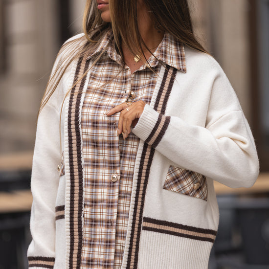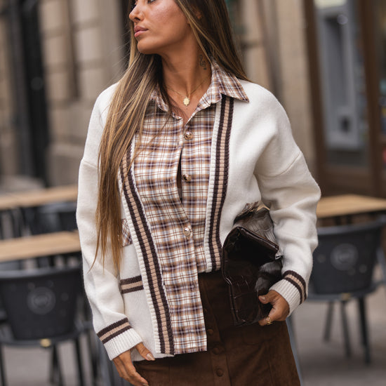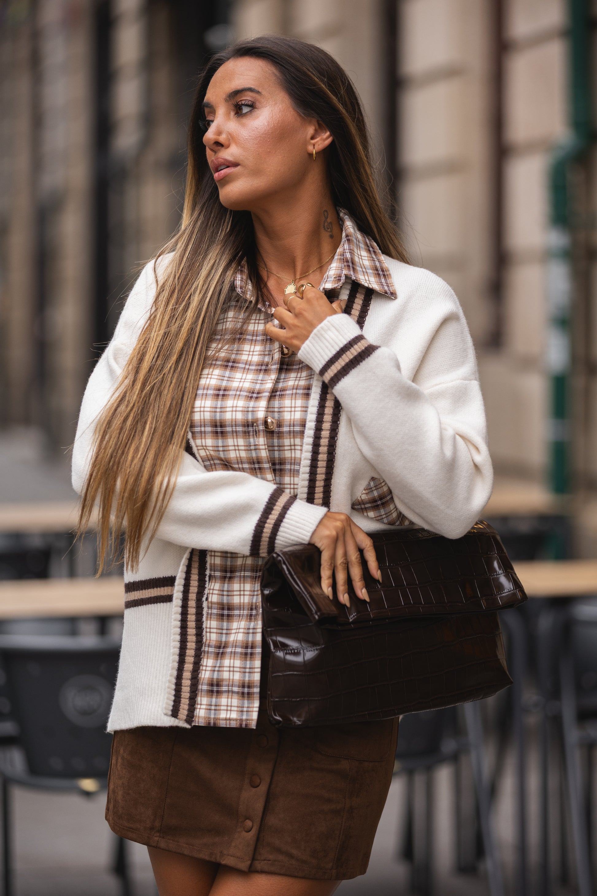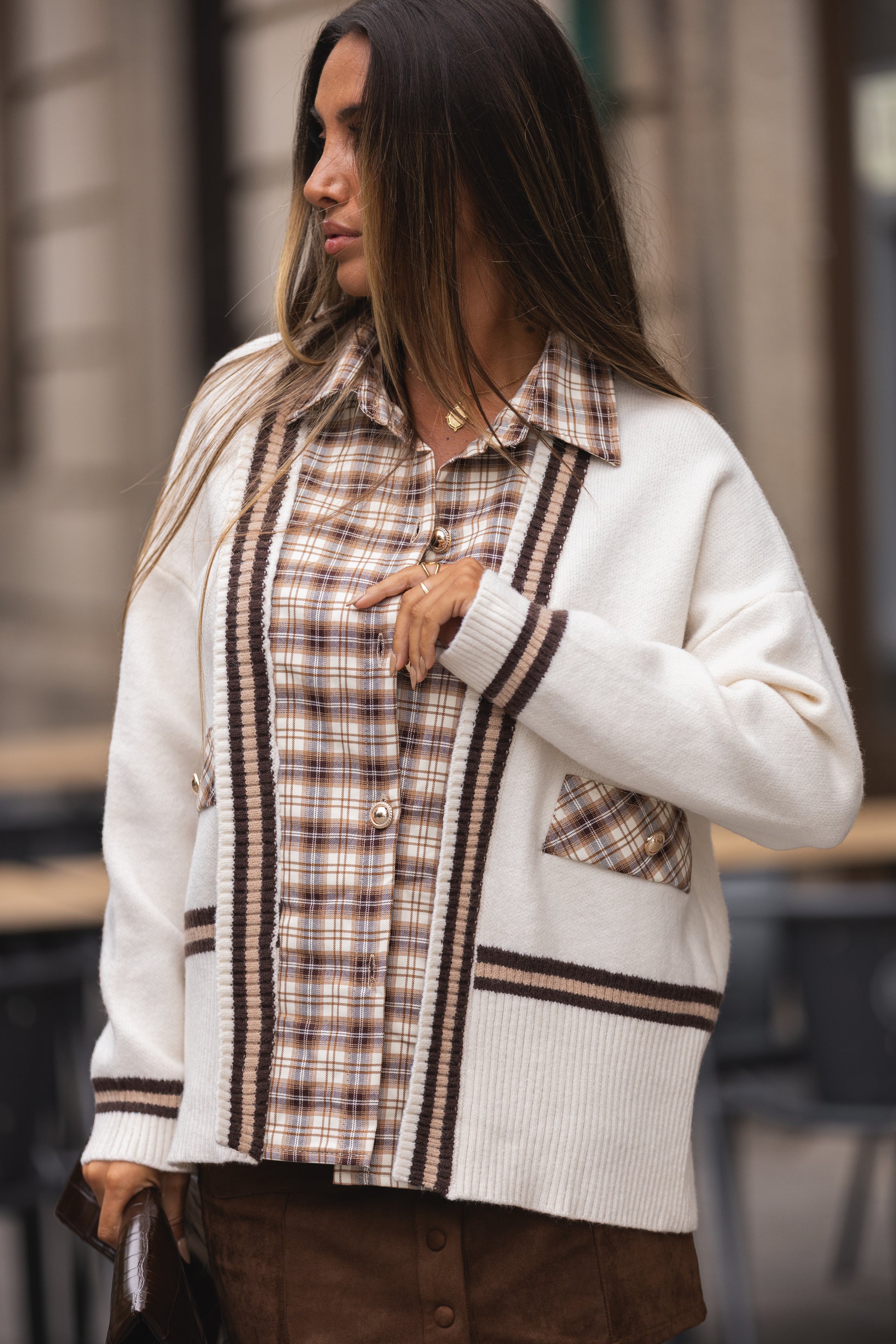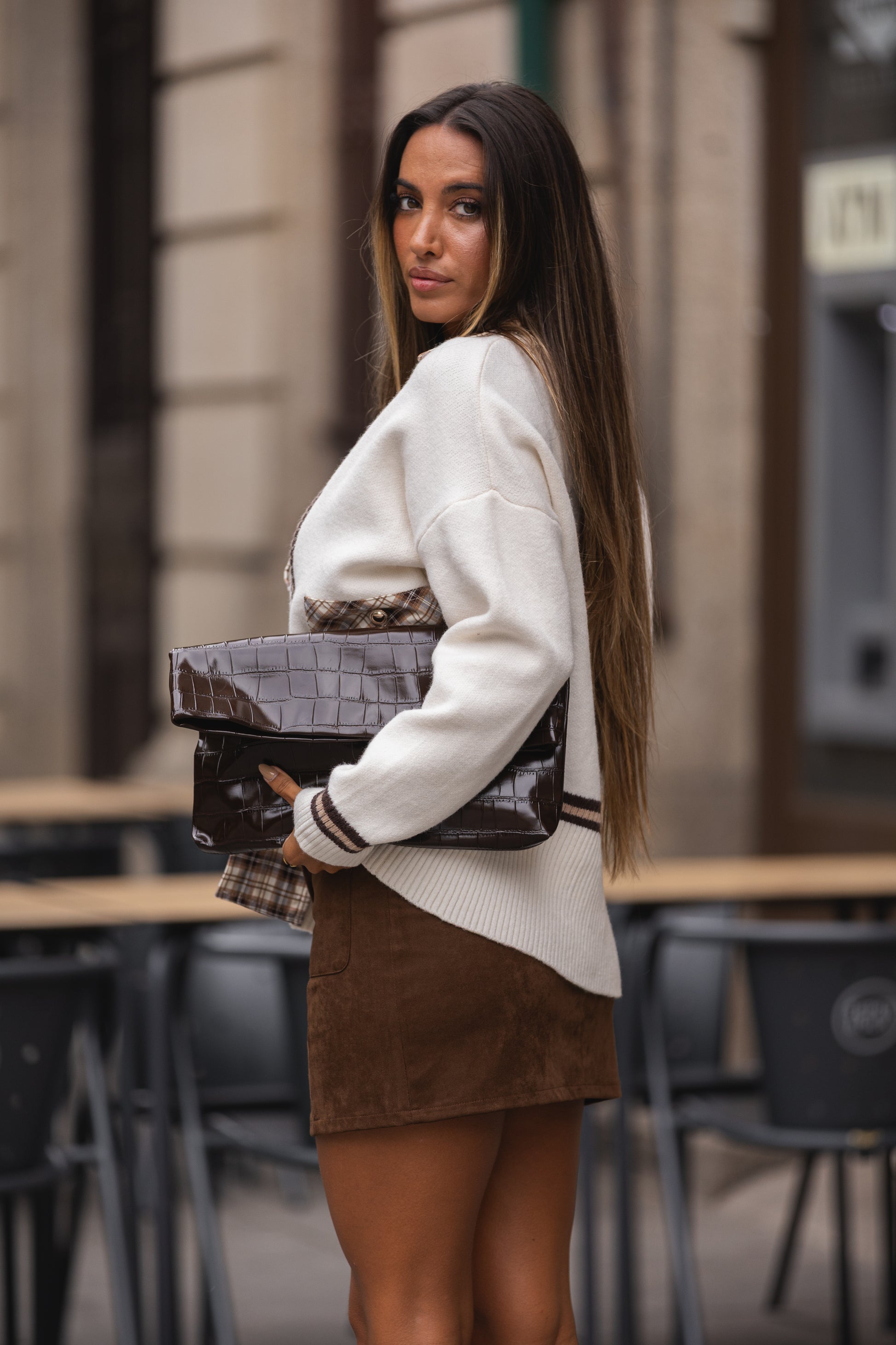 Esta camisola de malha justa é a definição de conforto e estilo descontraído. Com um padrão de riscas, ela traz um visual moderno e versátil, ideal para compor looks casuais.