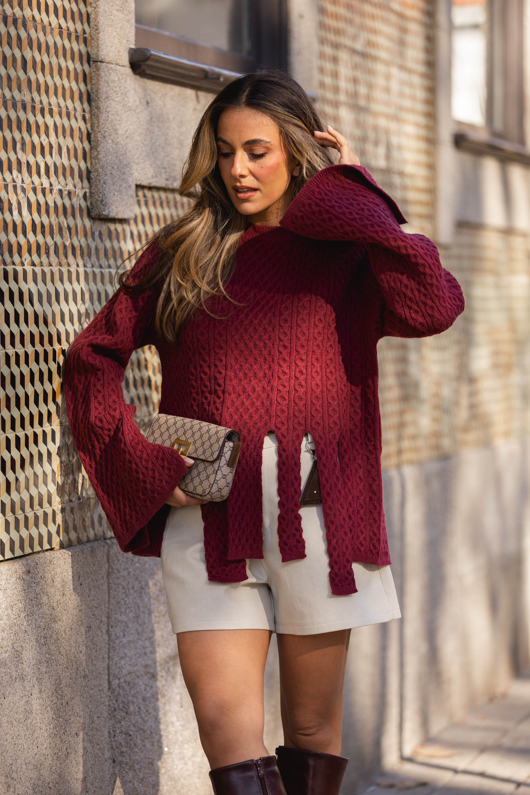 Camisola franjas - bordeux