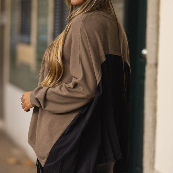 Malha compacta c/ pelissado nas costas, a modelo está com S/M.