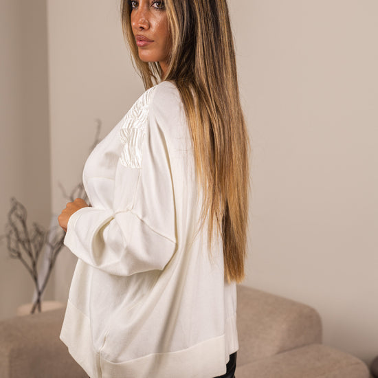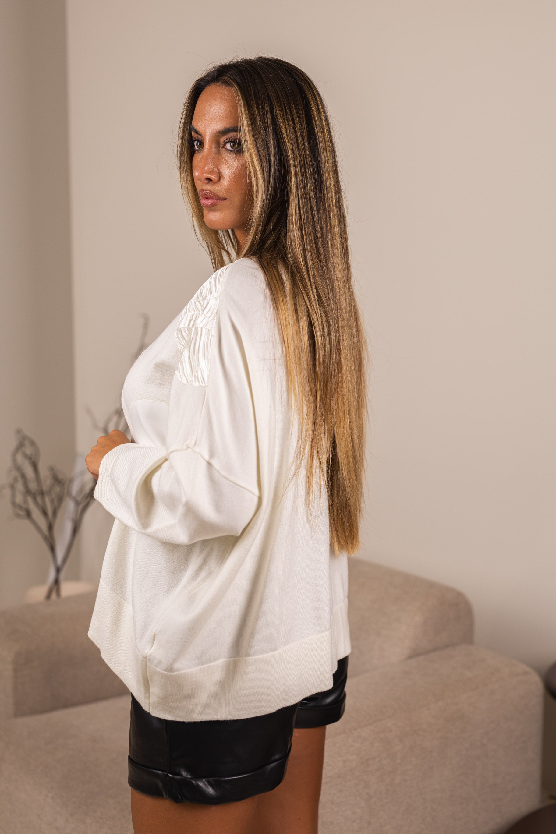 O corte solto proporciona liberdade de movimento, enquanto a malha macia garante um toque agradável na pele. Perfeita para ser usada com jeans, leggings ou até mesmo sobre um vestido, esta camisola é uma peça essencial para o guarda-roupa. Adicione um toque de personalidade ao seu visual com esta peça cheia de charme!
