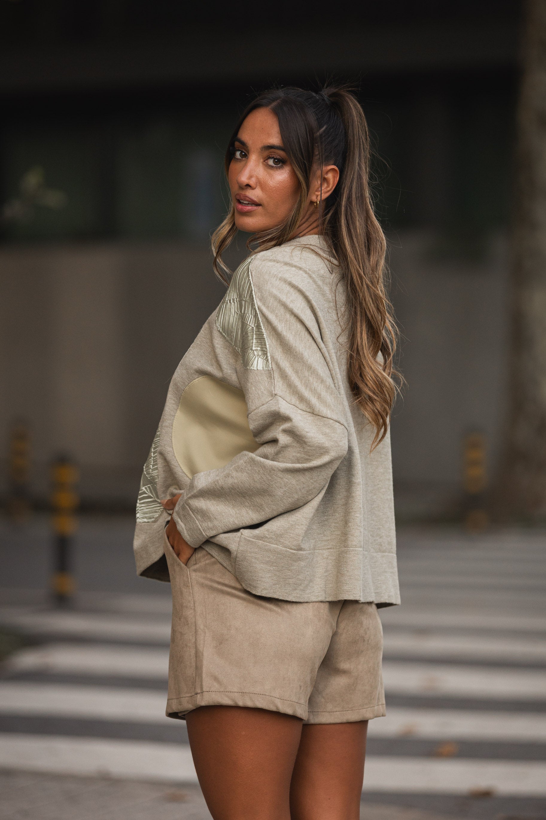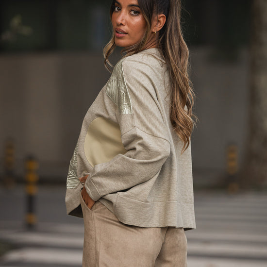 Esta camisola de malha solta é a definição de conforto e estilo descontraído.