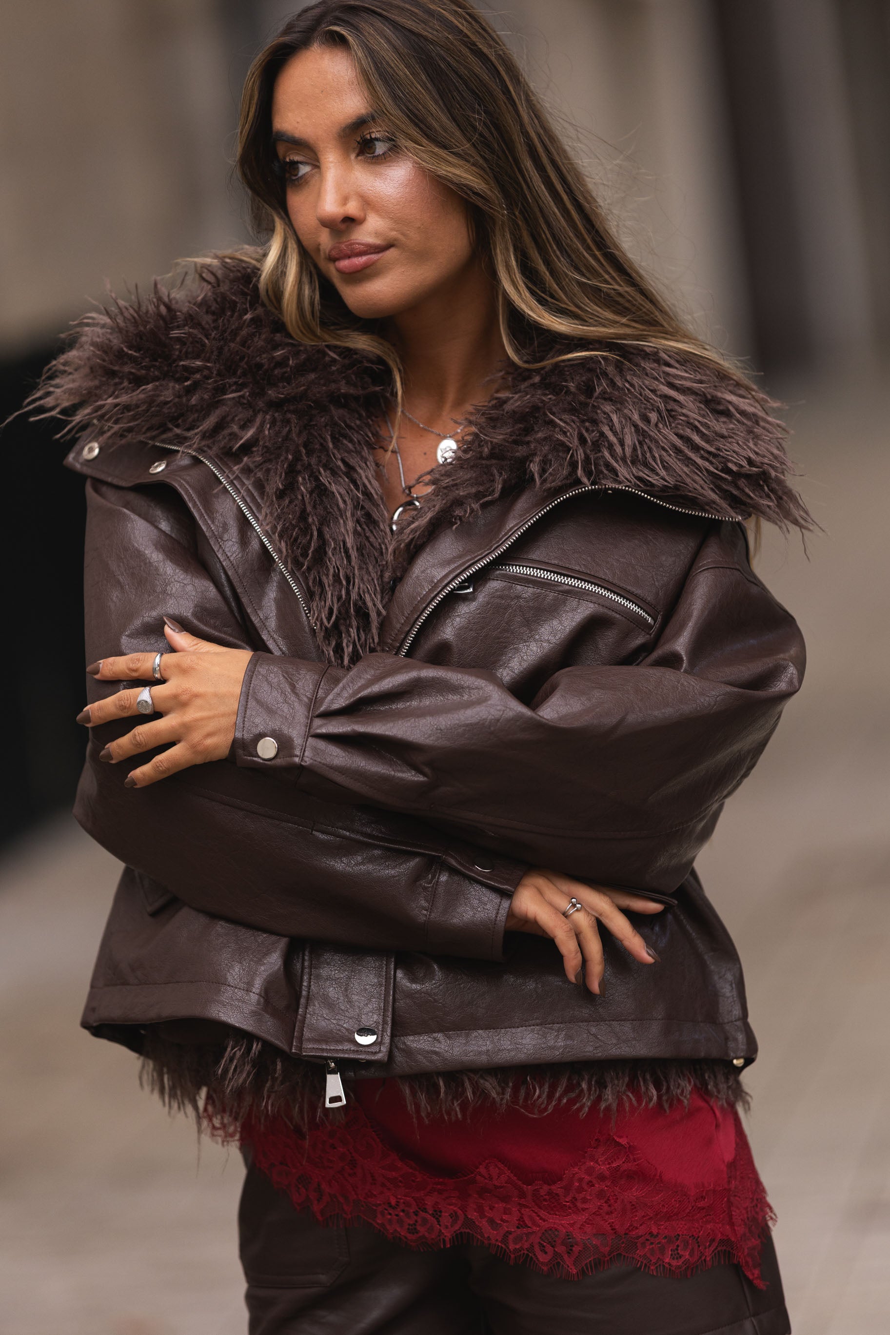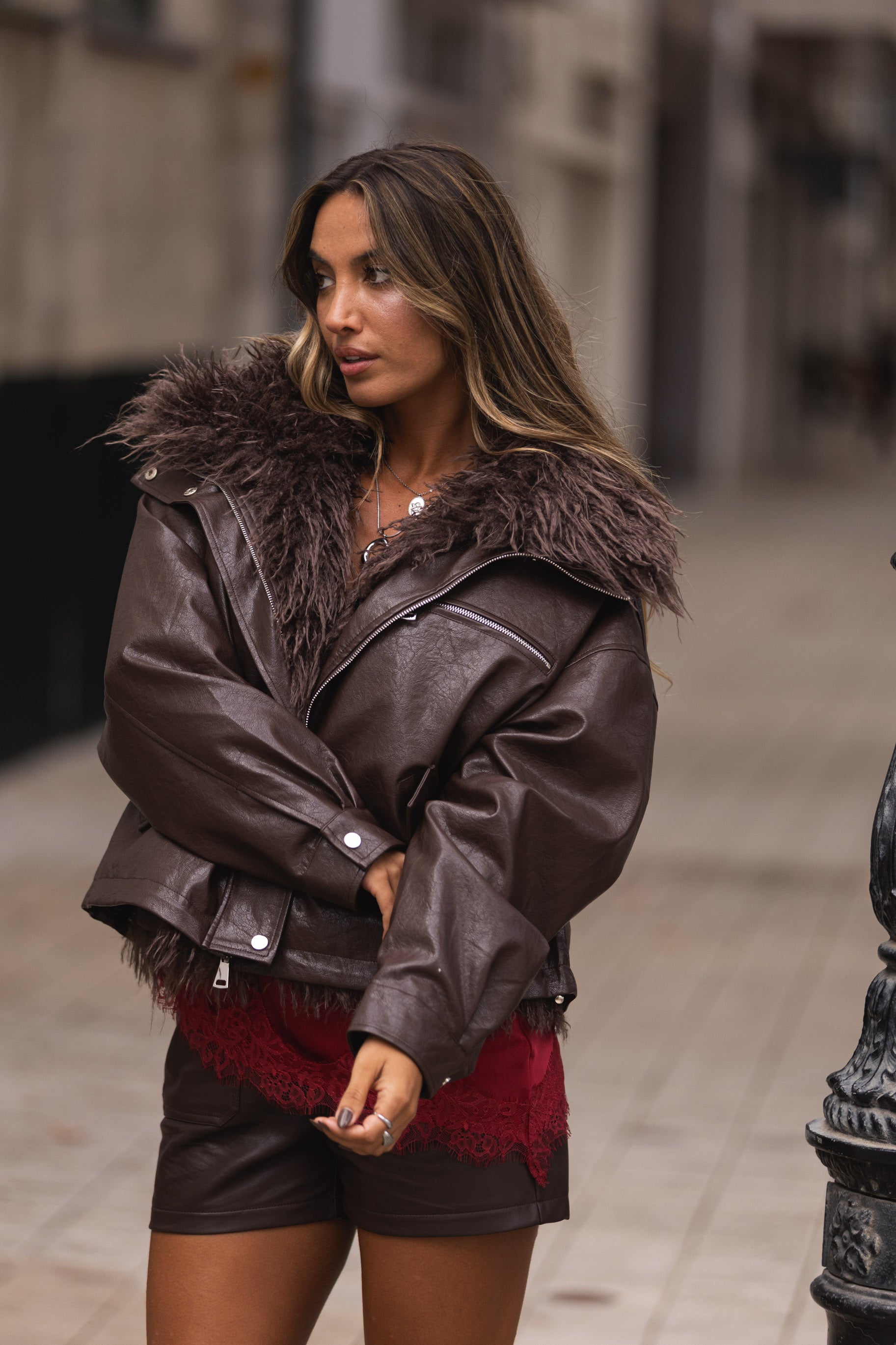 Este casaco é um dois em um, todo o pêlo de dentro sai e conseguem usar como colete.