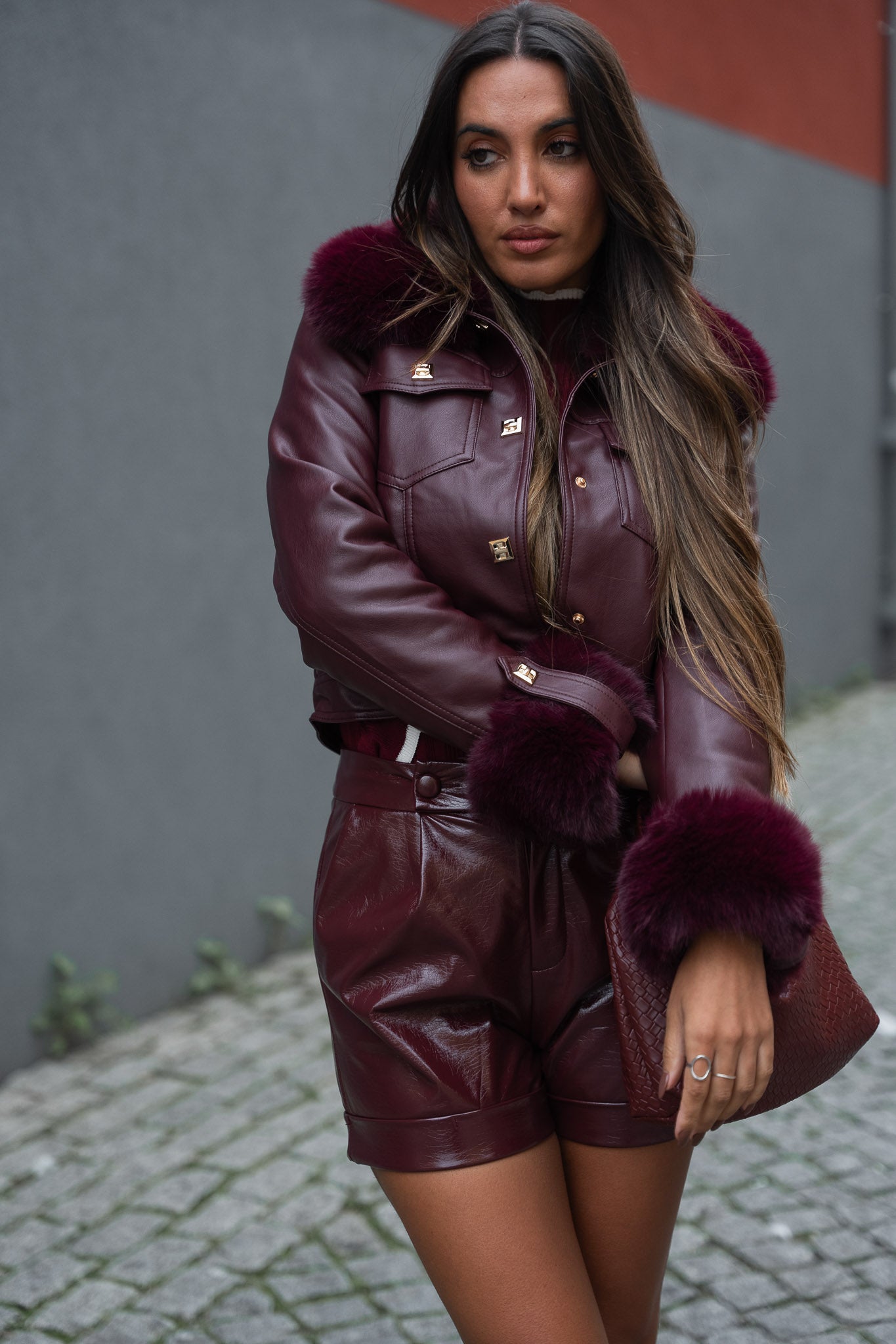 Casaco Ecopele c/ punhos em pelo - Bordeaux