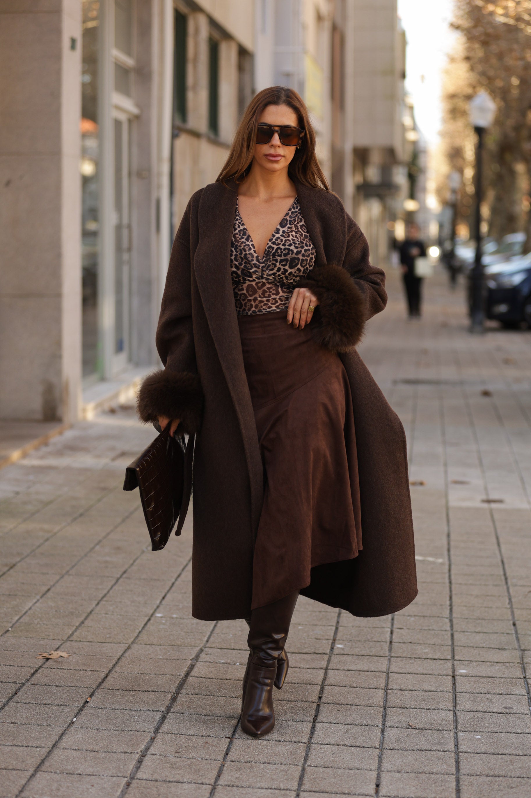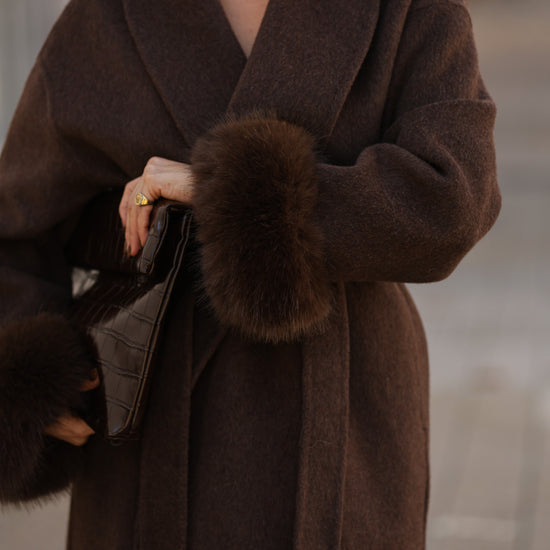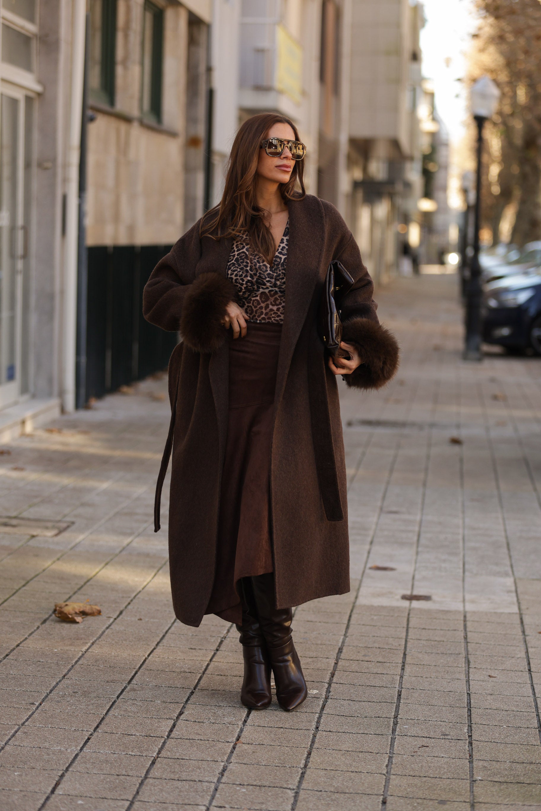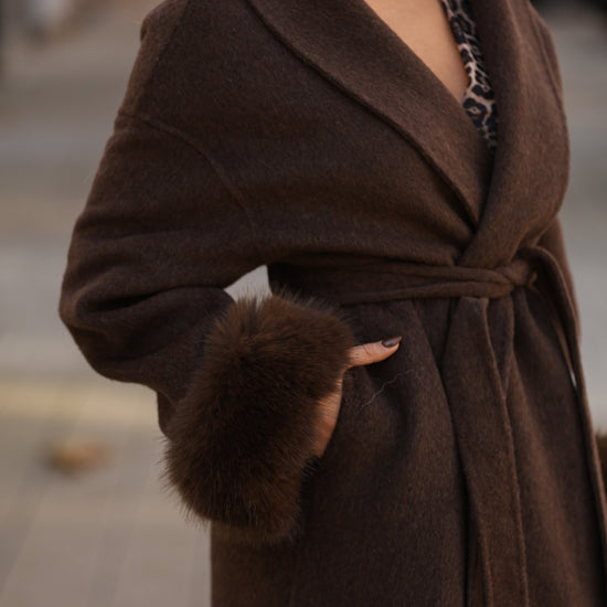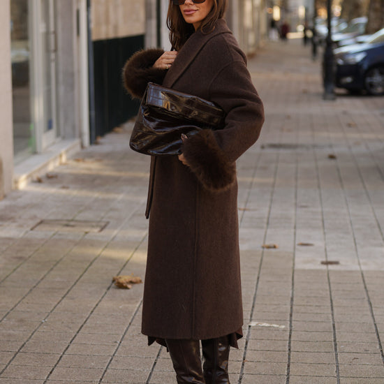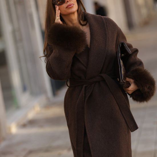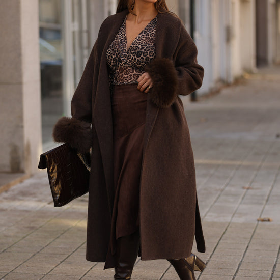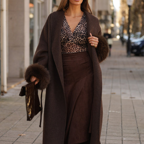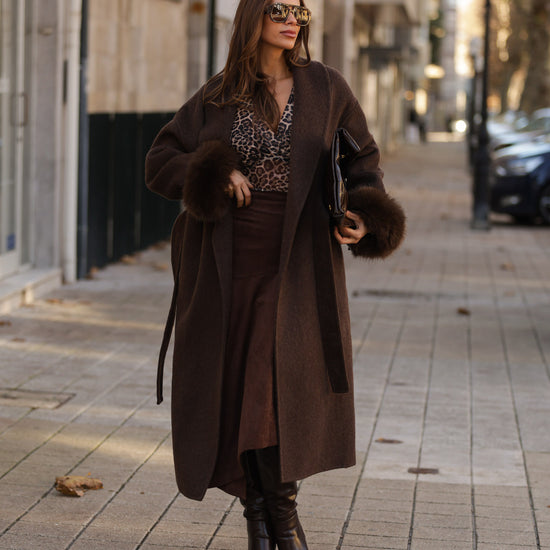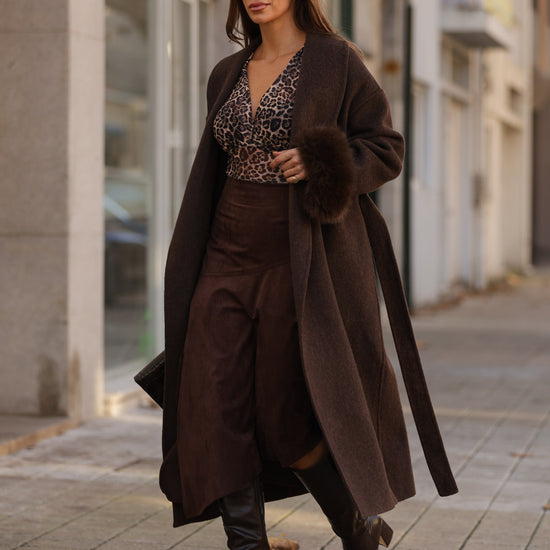 Casaco em fazenda comprido - castanho
