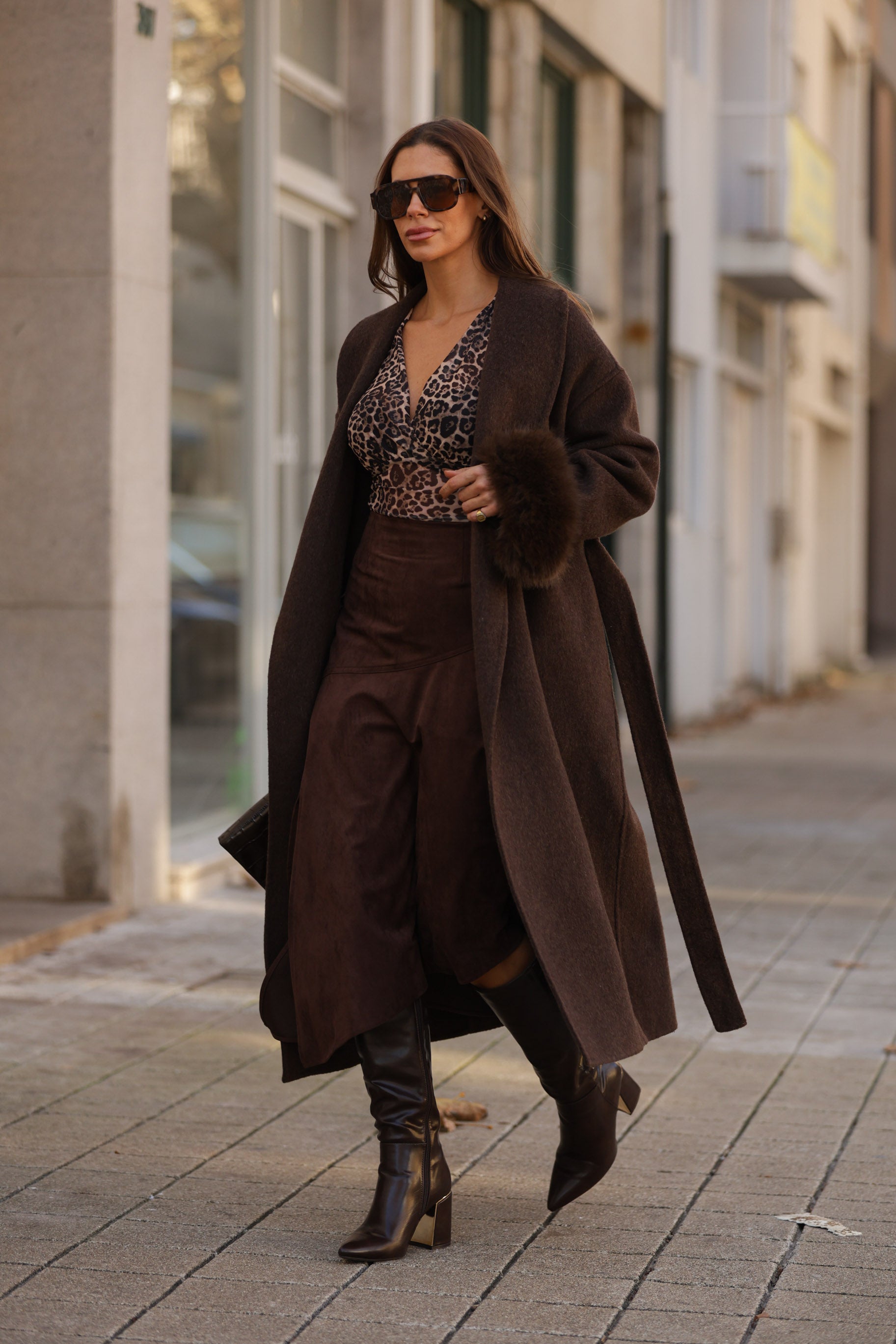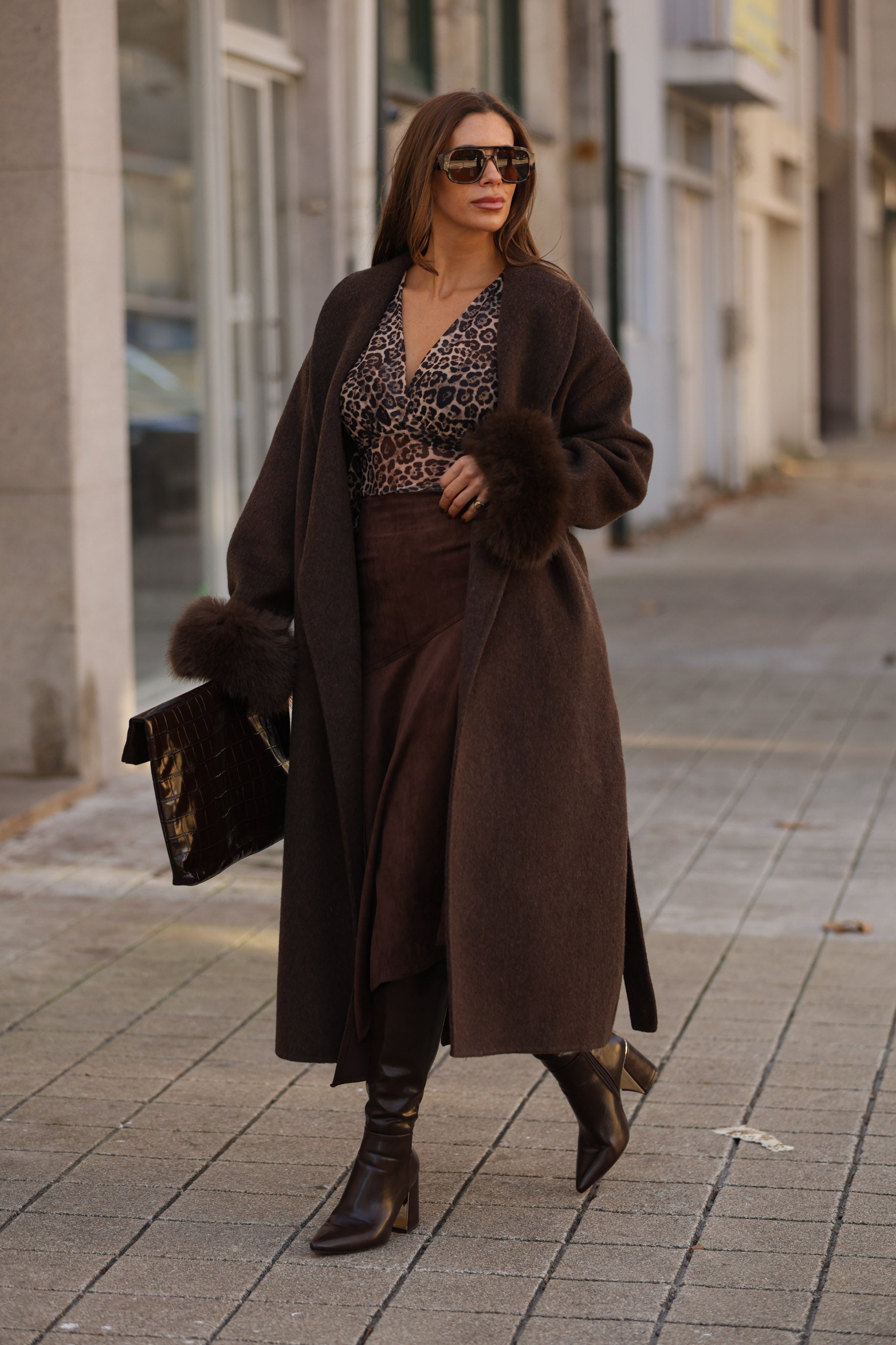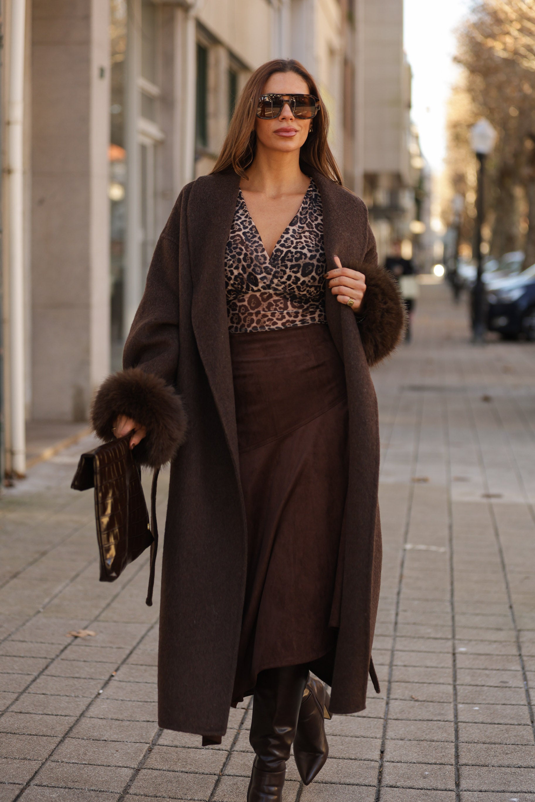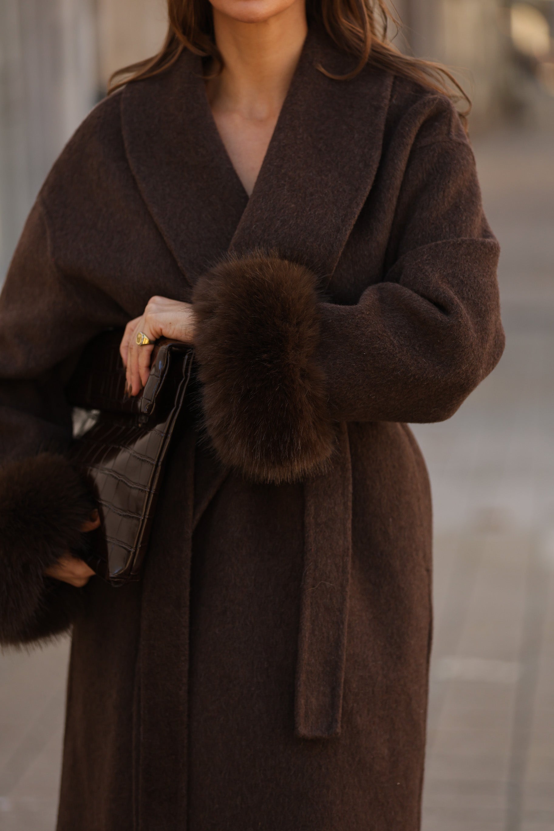 Casaco em fazenda comprido - castanho