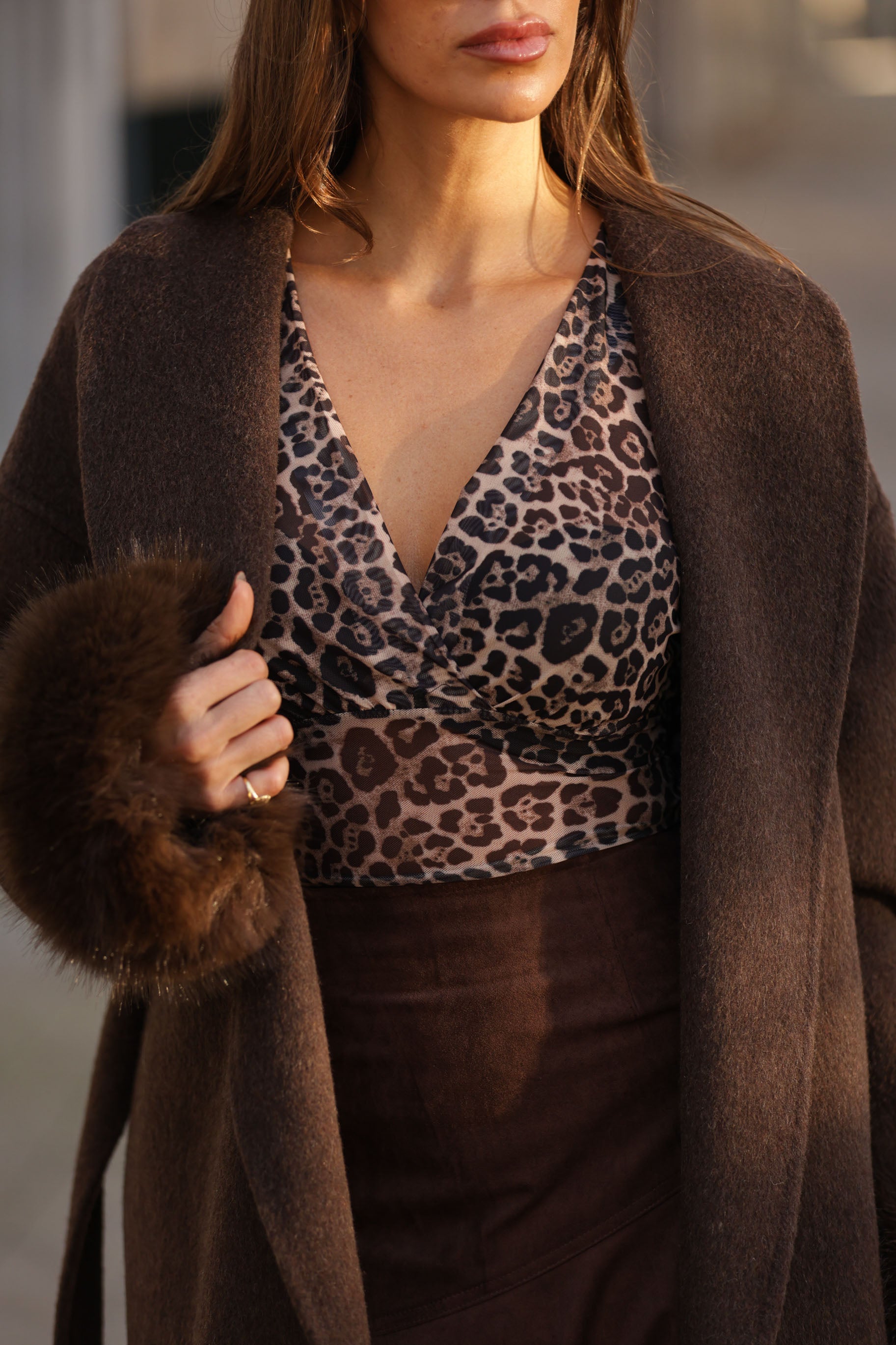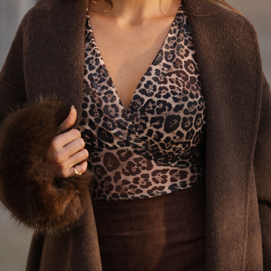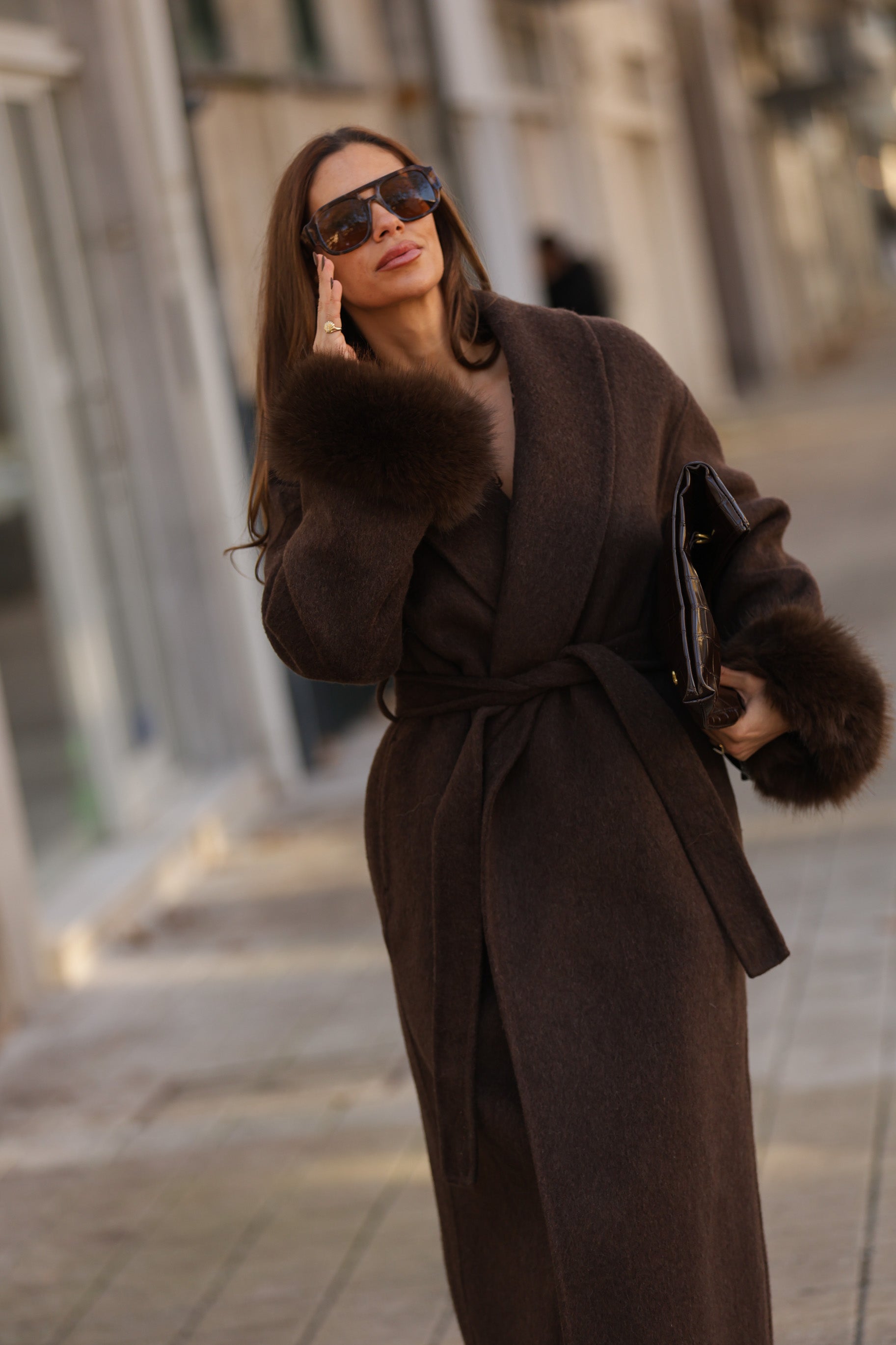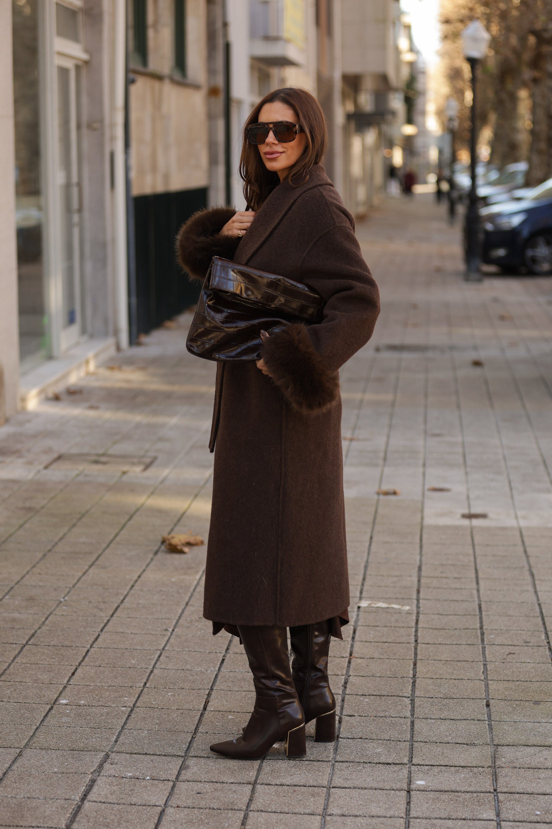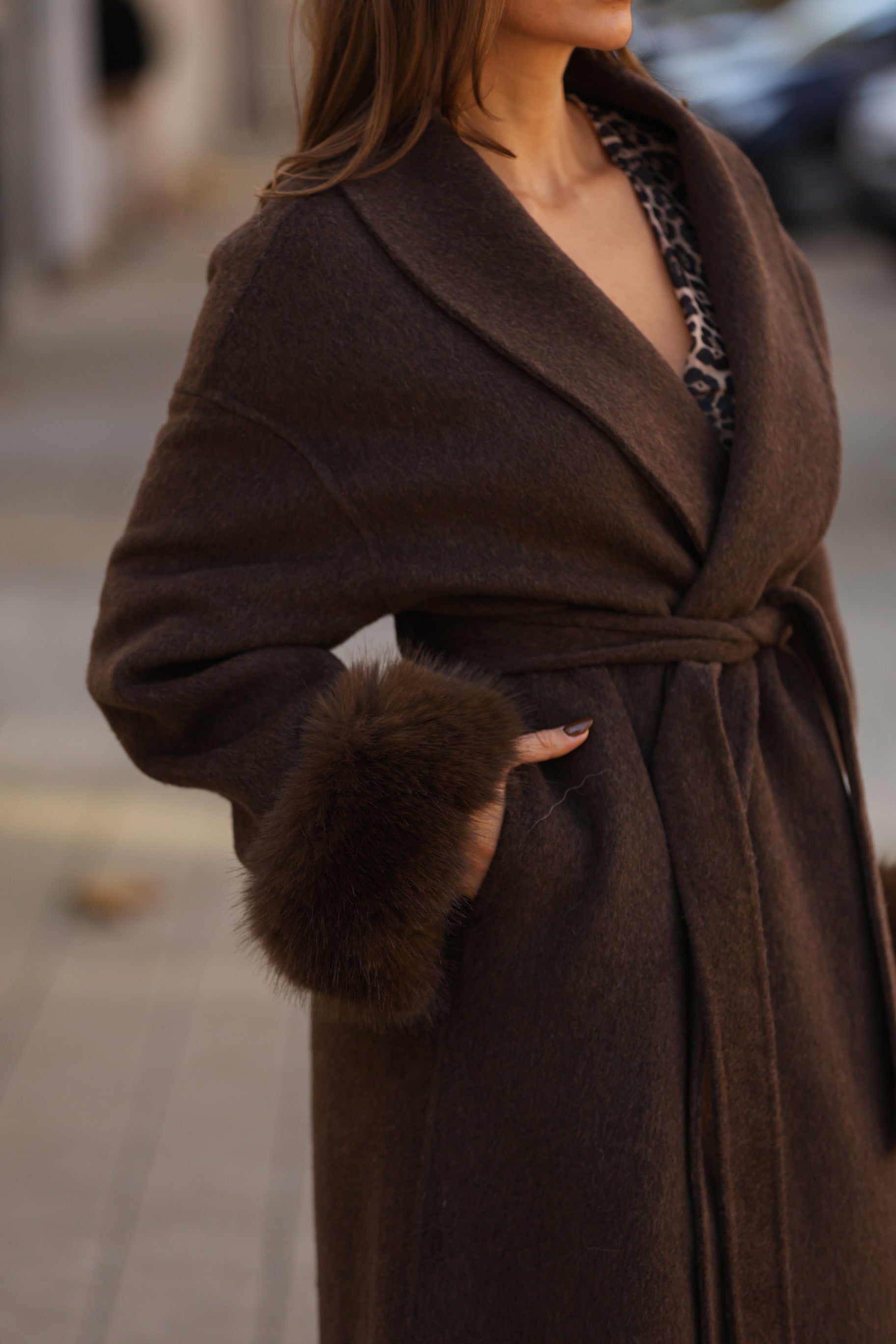 Casaco em fazenda comprido - castanho