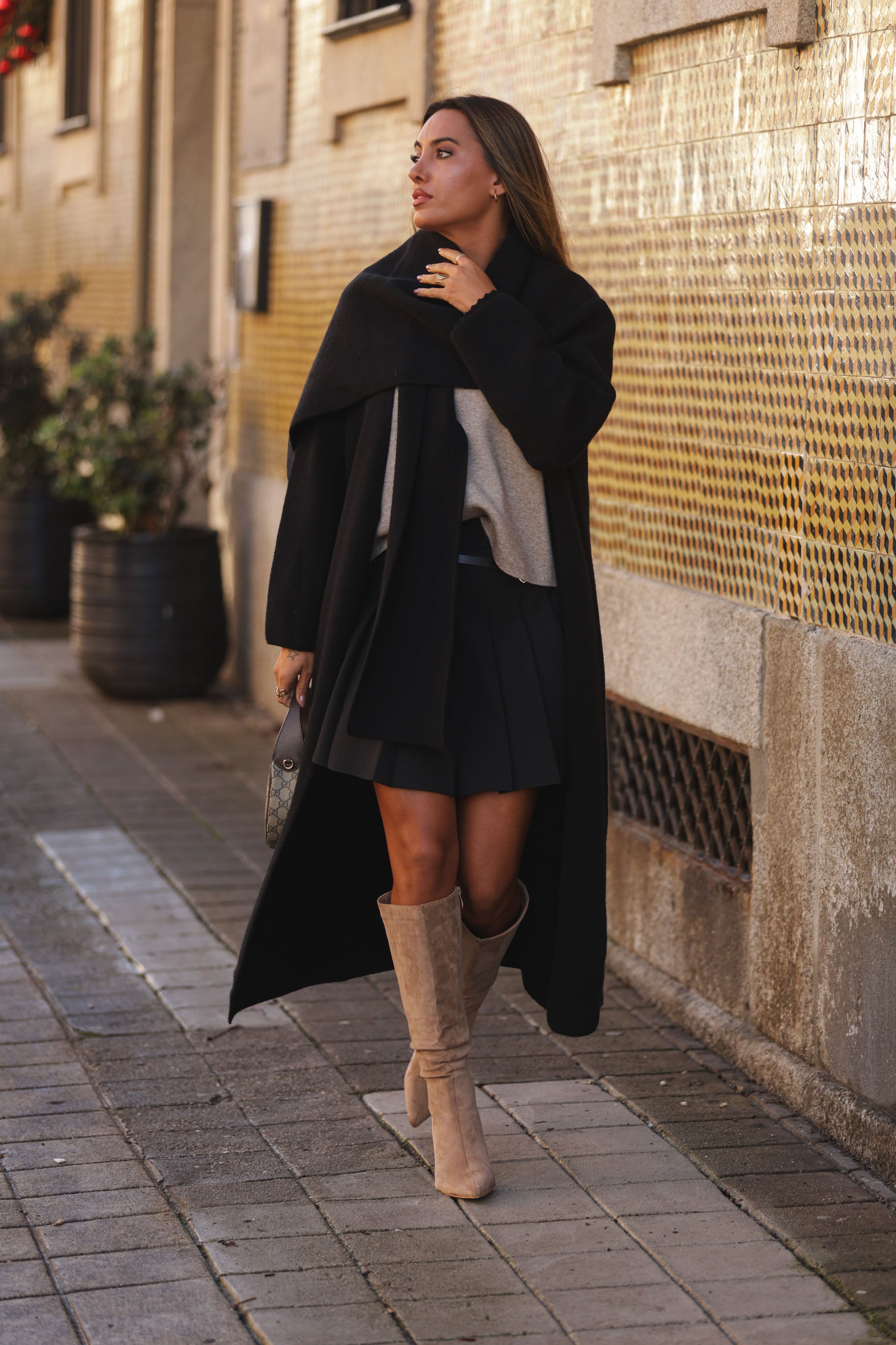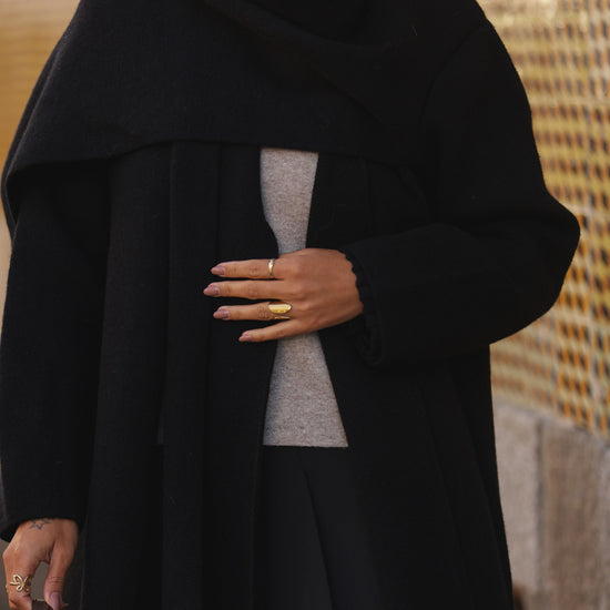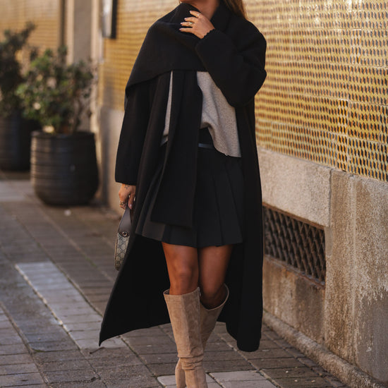 Casaco malha compacta c/ efeito cachecol - preto