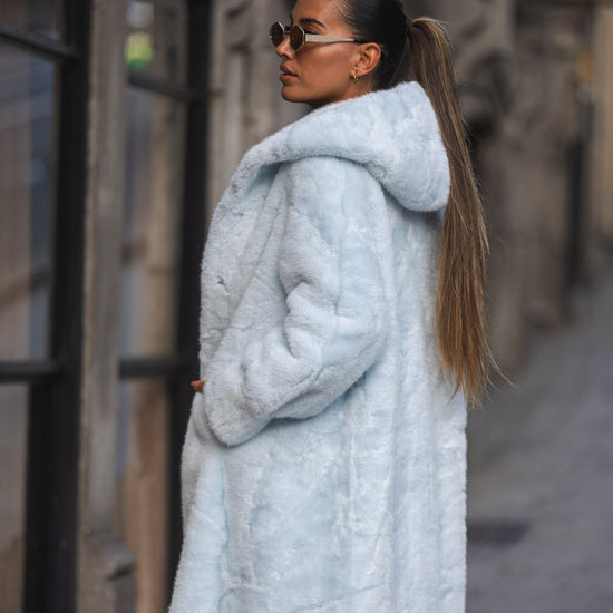 Casaco Ted comprido c/carapuço - azul bebé