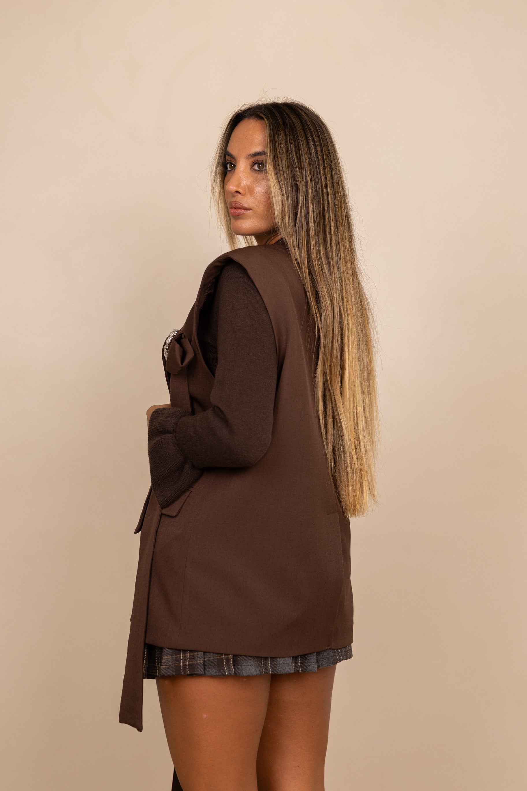 Colete c/ laços - castanho