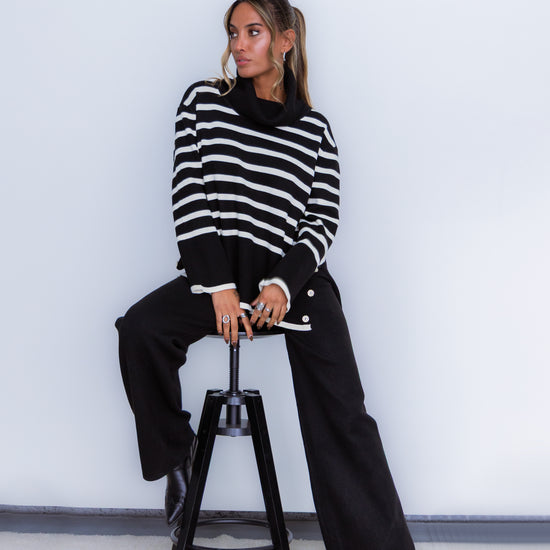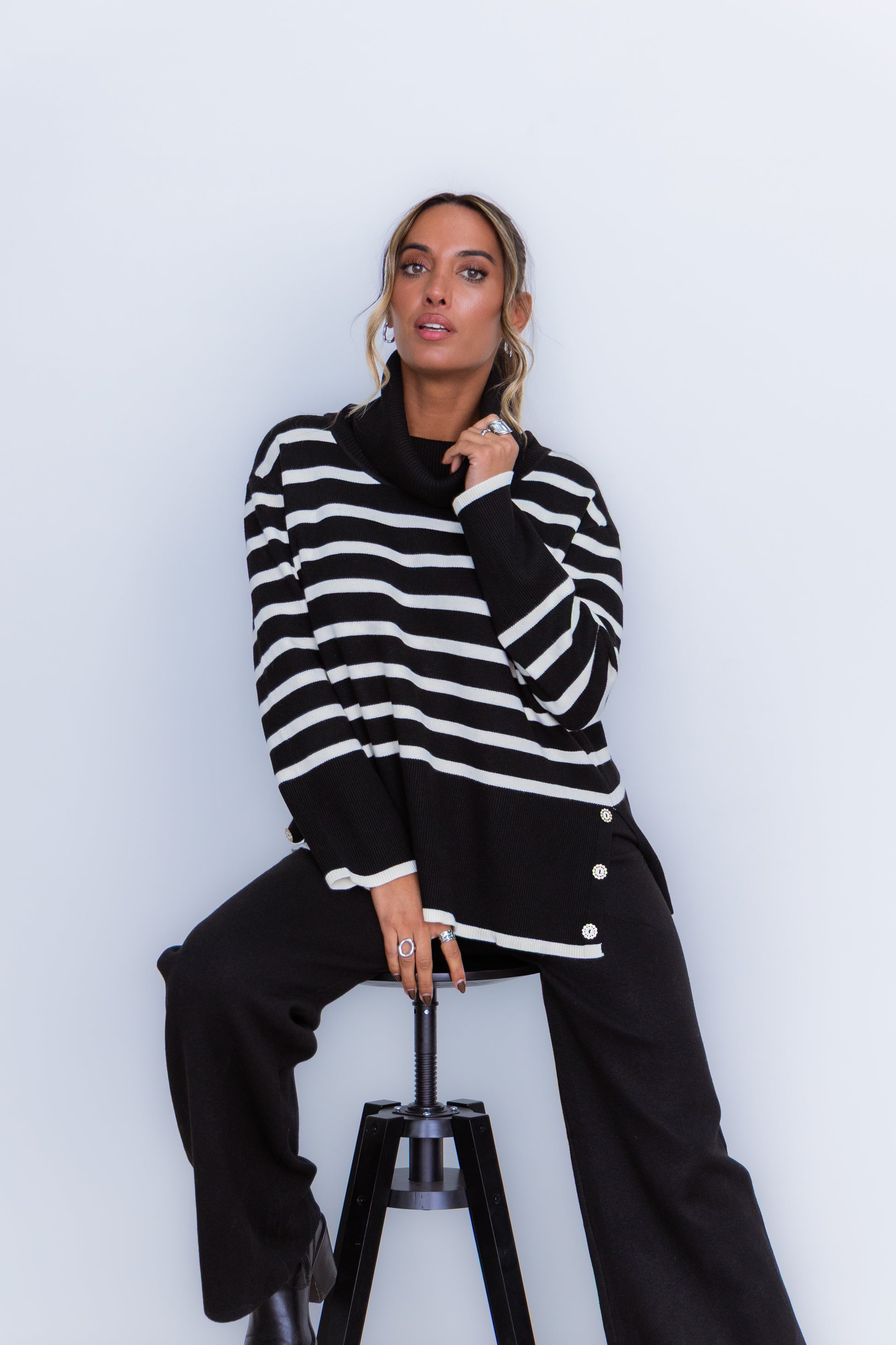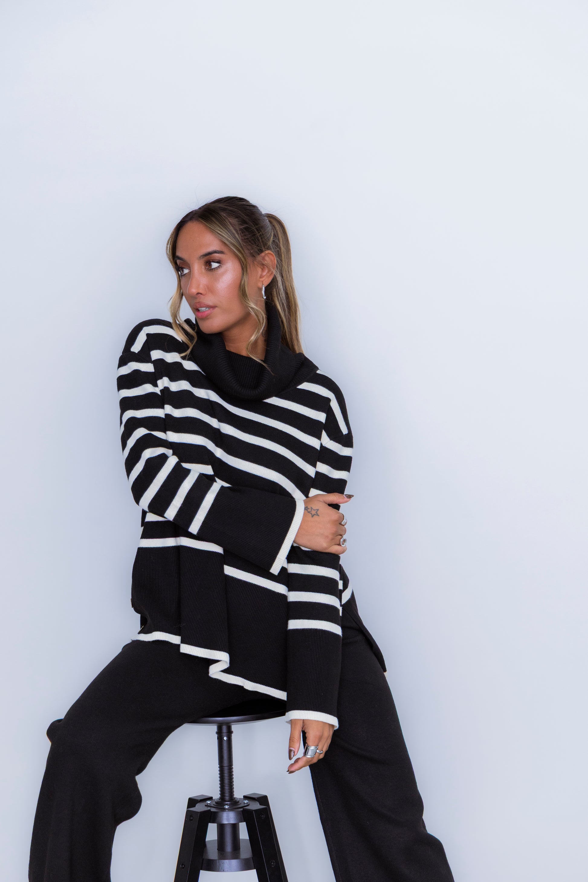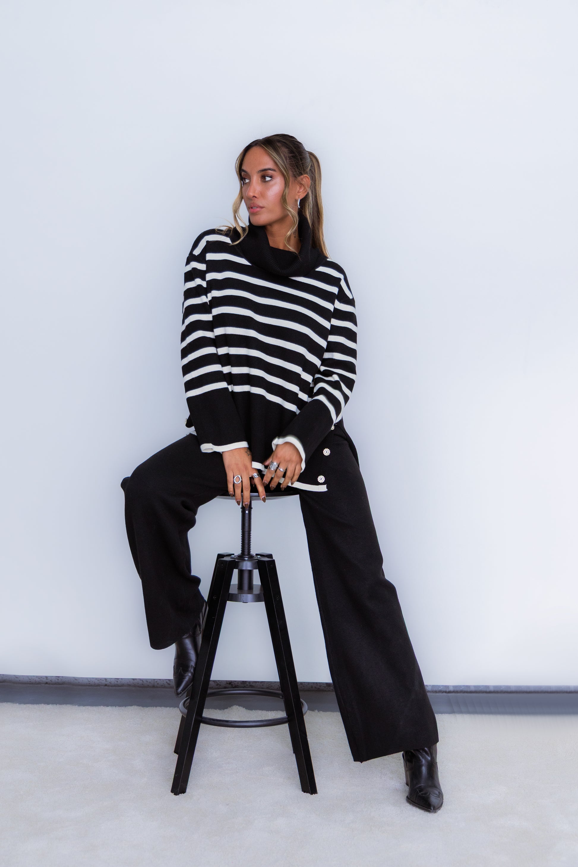 Conjunto de calça e camisola em malha compacta. A camisola com gola larga e é soltinha por todo, o conjunto é tamanho único e serve bem até L.