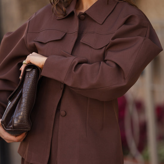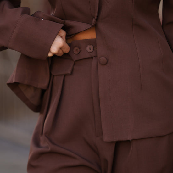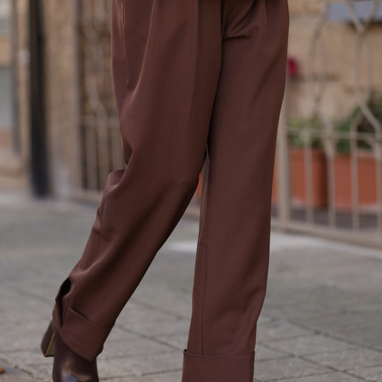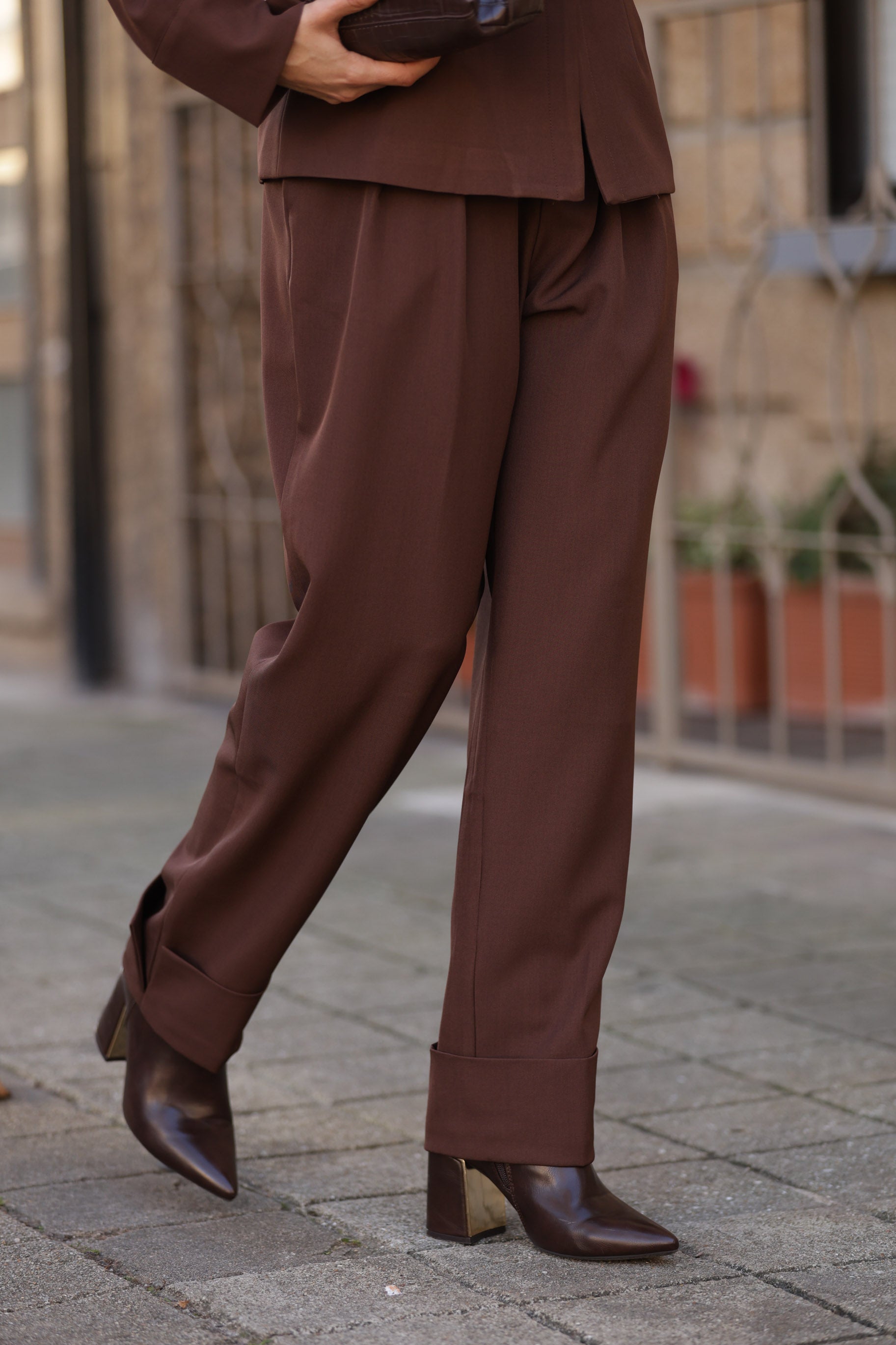 Conjunto de calça e camisola em malha compacta. Cinto incluido.