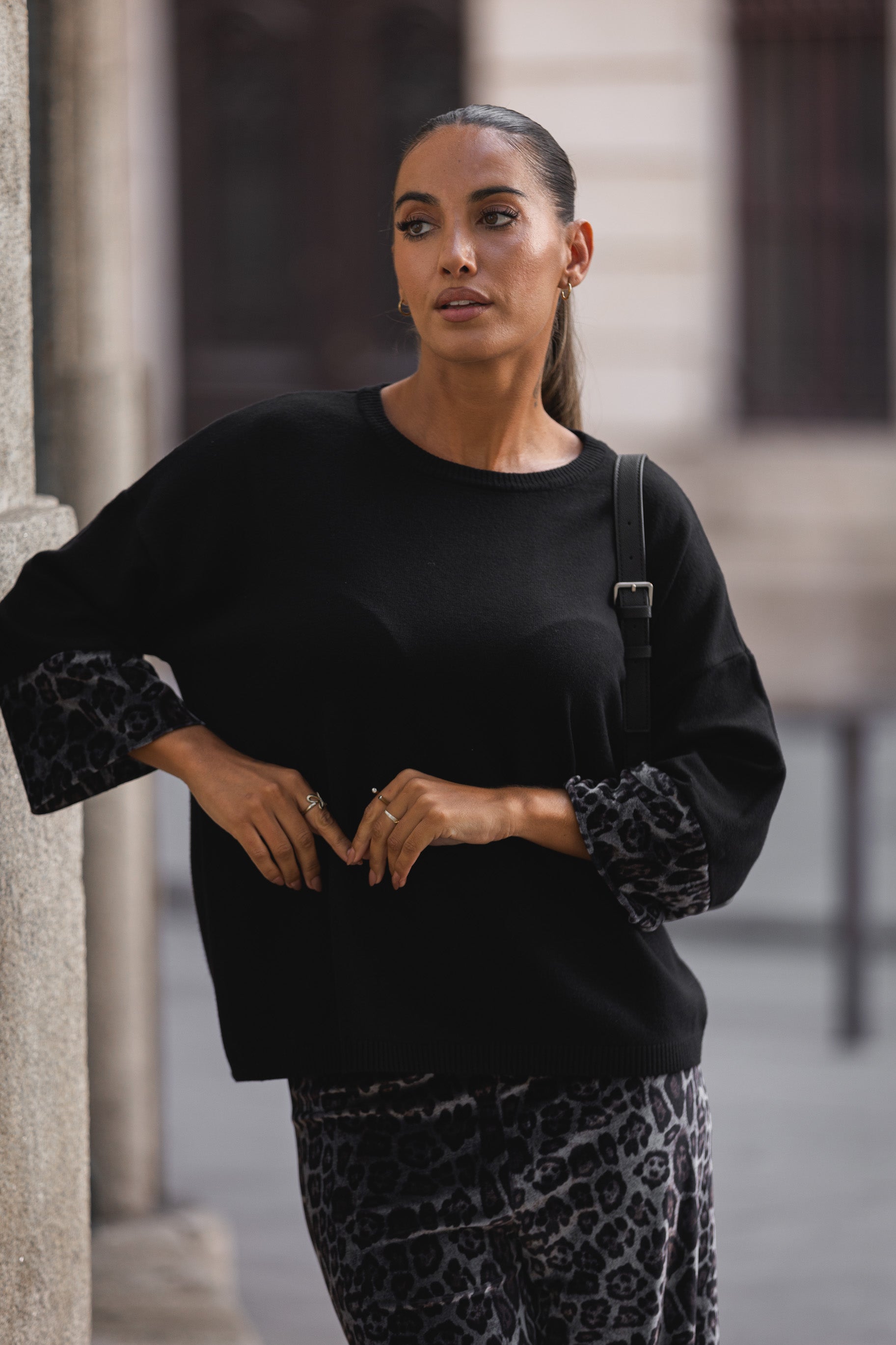 A modelo está com o S/M.