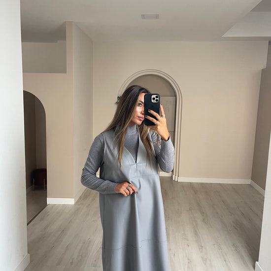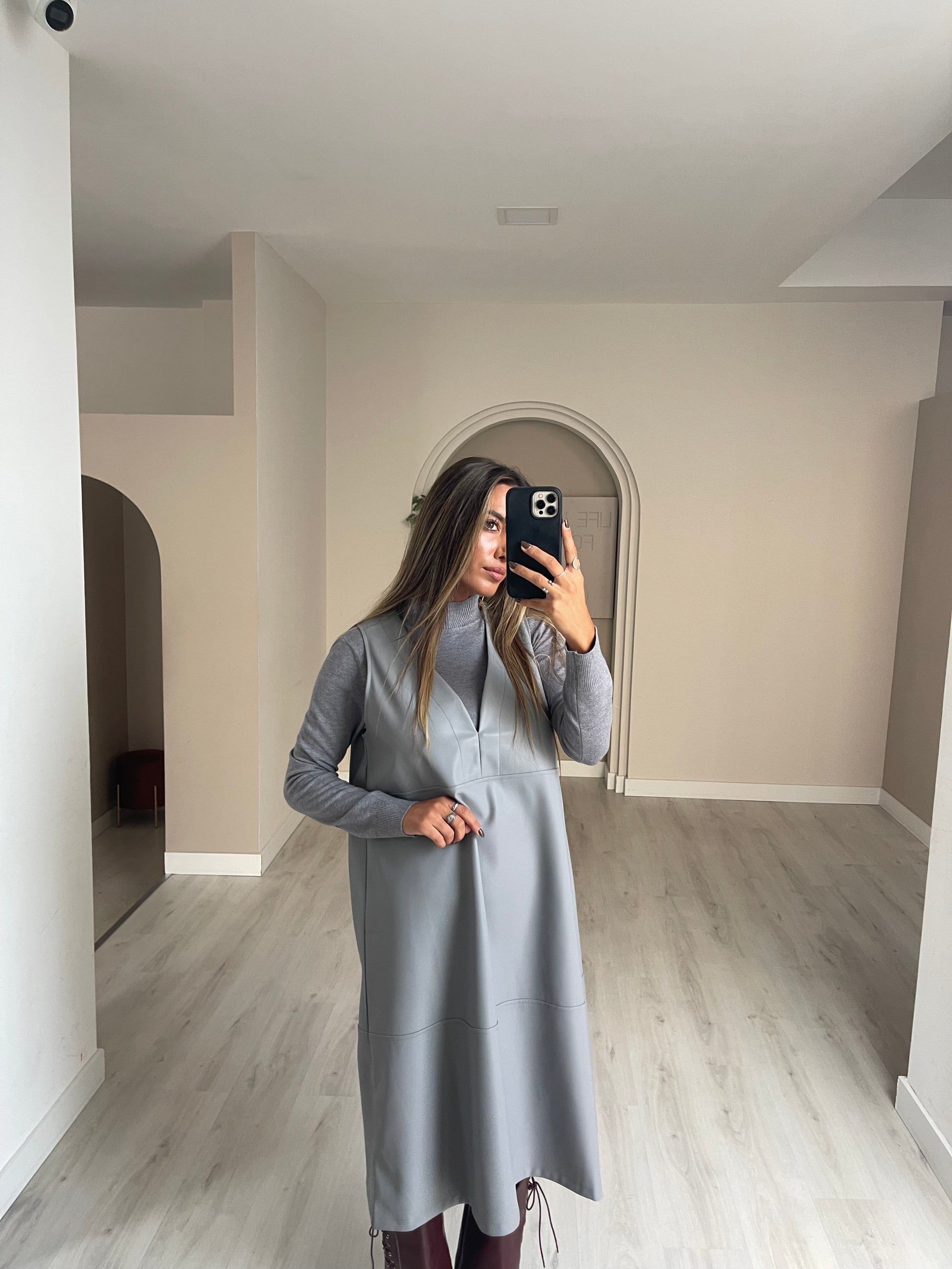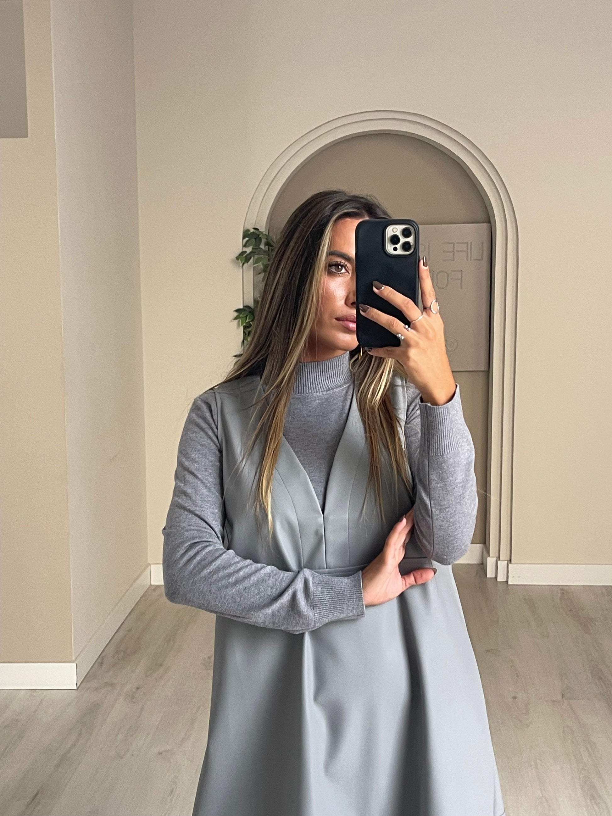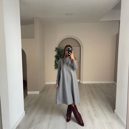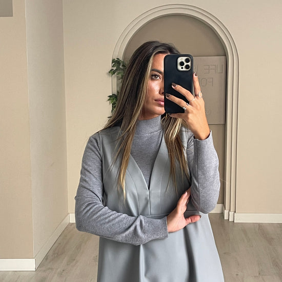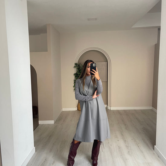 Conjunto vestido de malha + vestido ecopele.