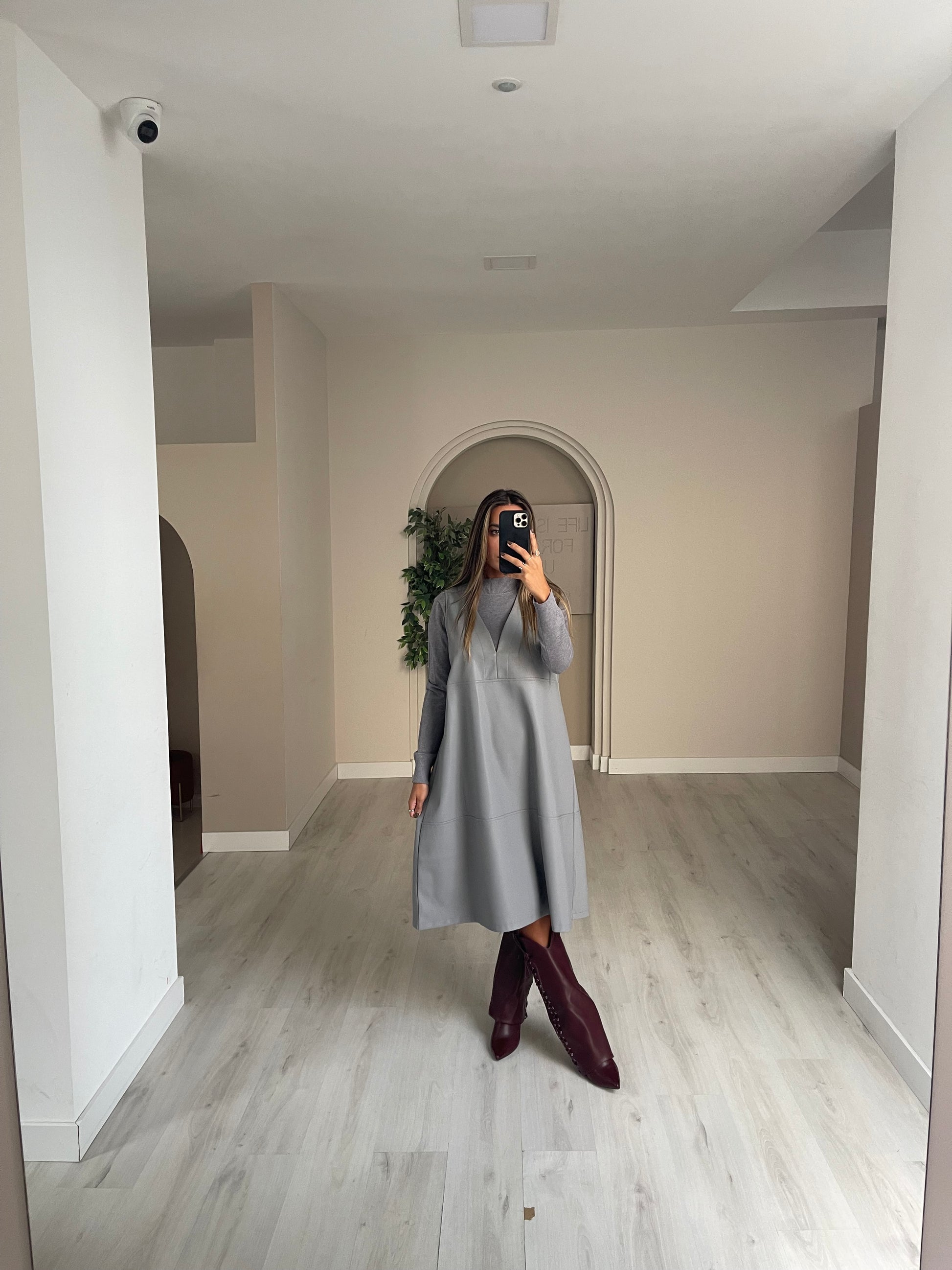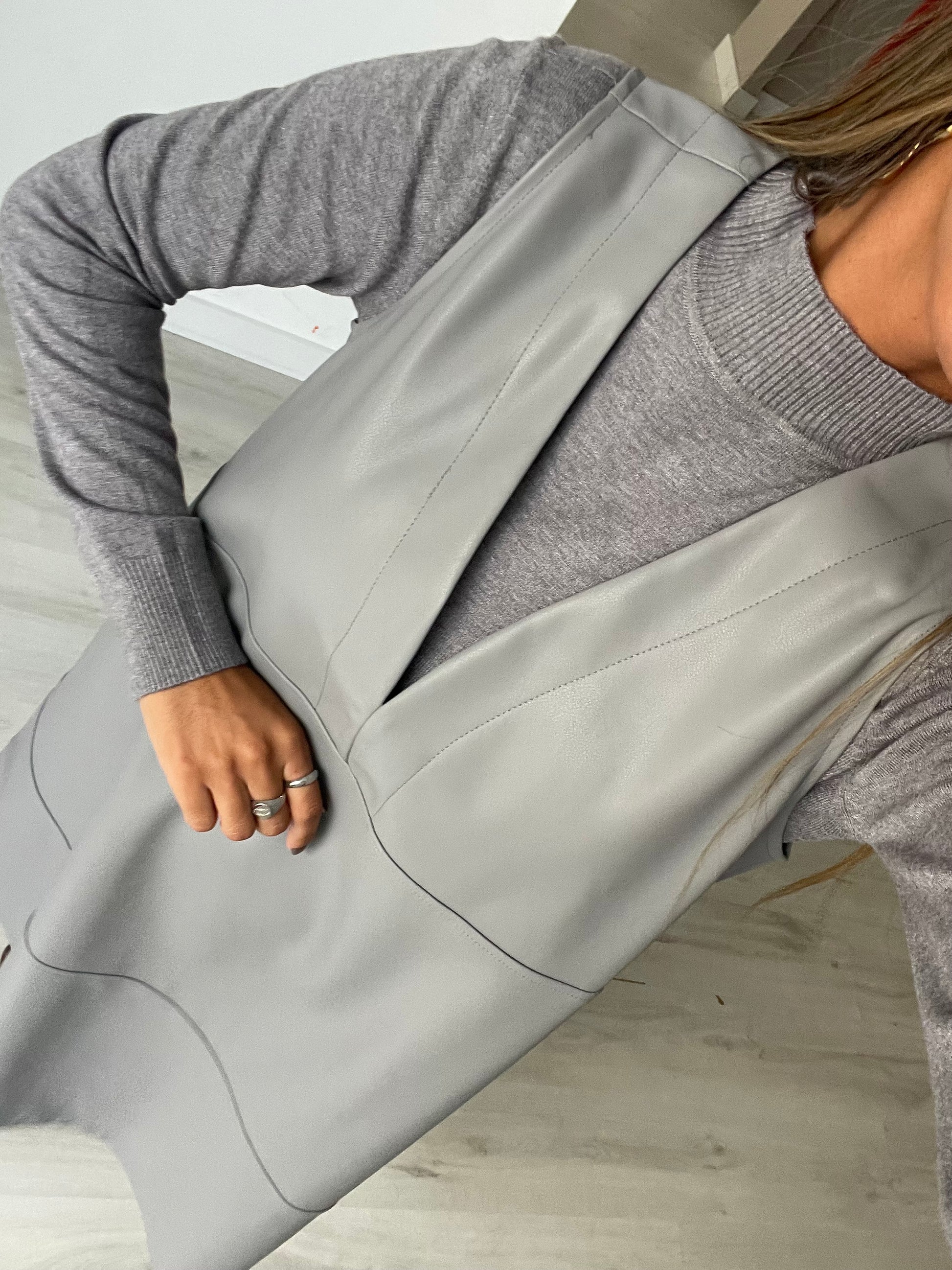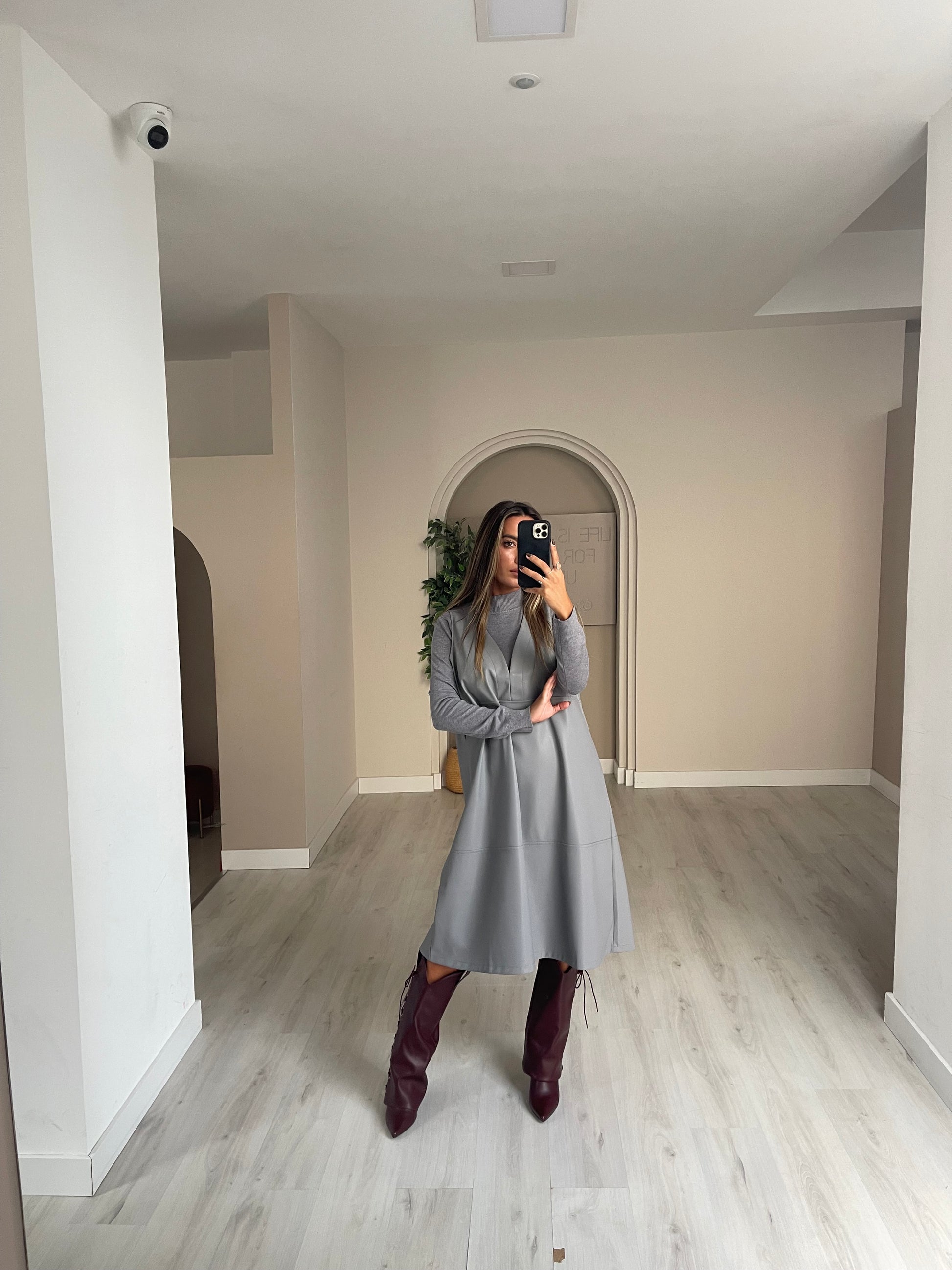 Conjunto vestido de malha + vestido ecopele.