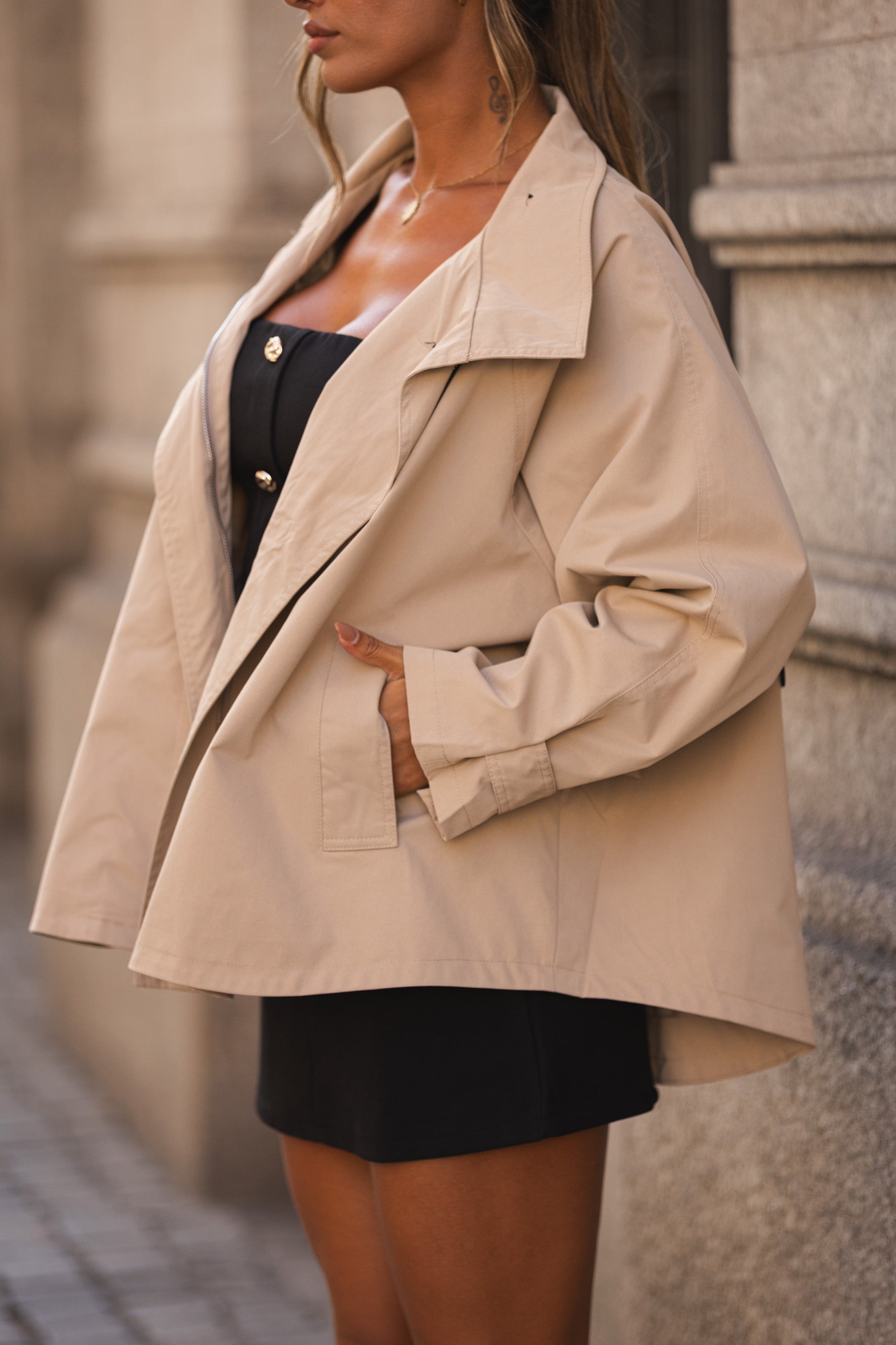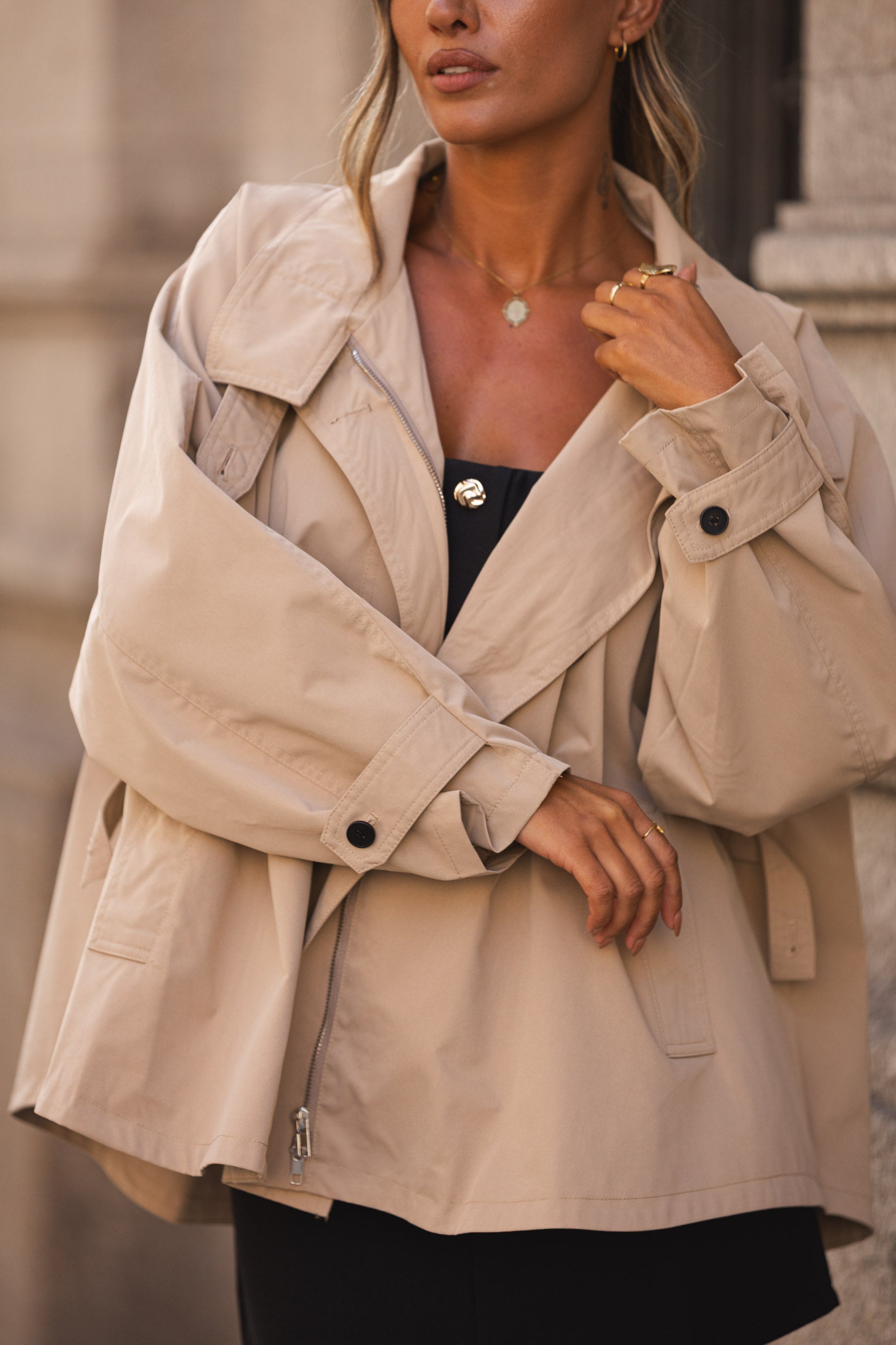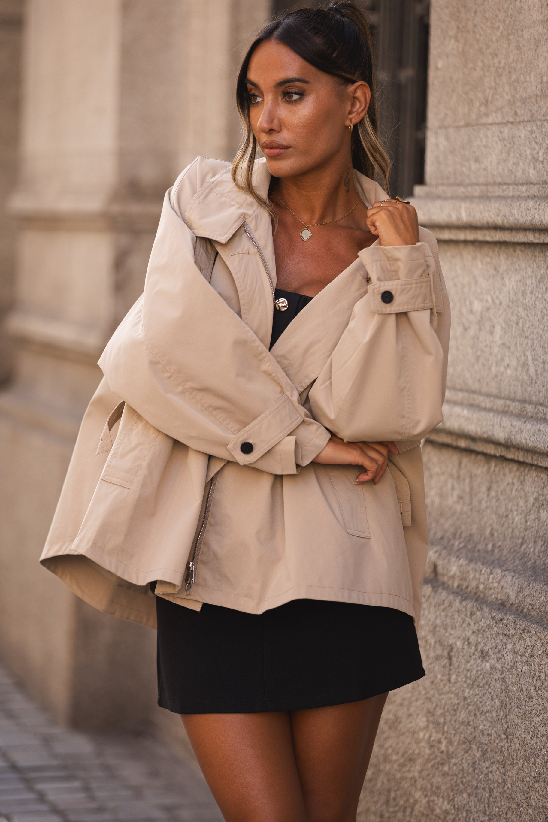 Gabardine oversize.
