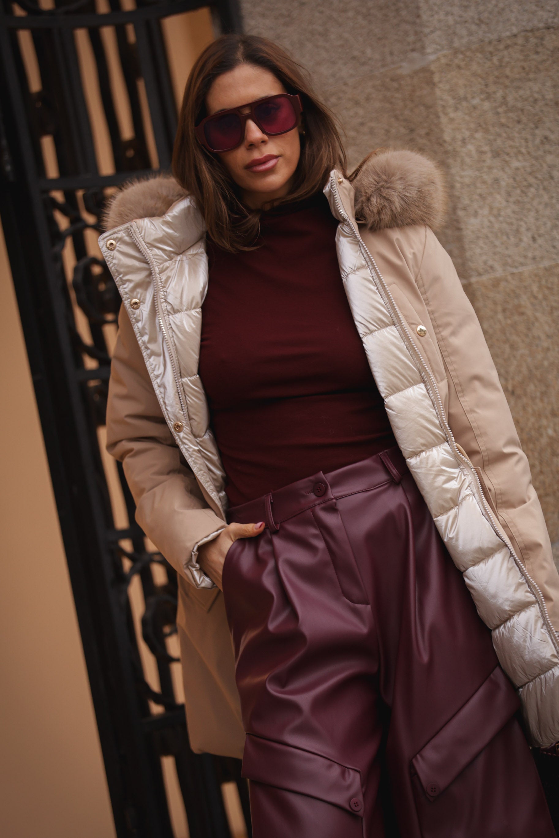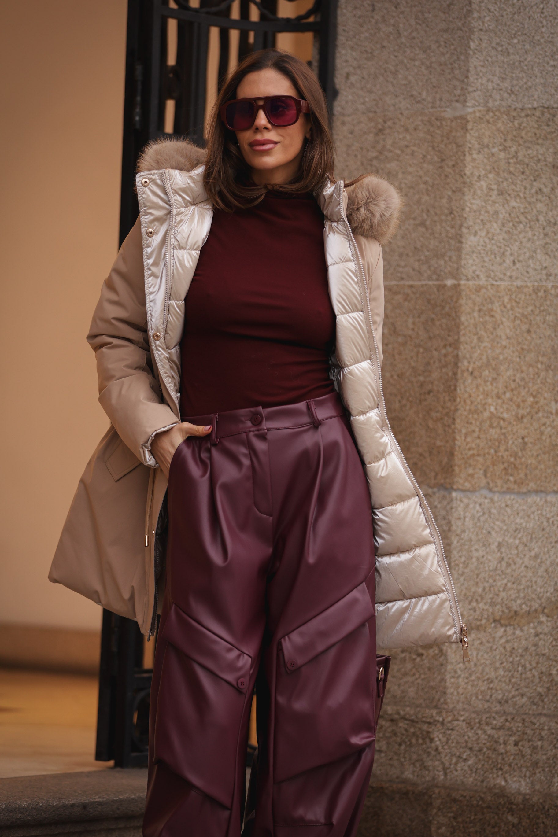 Kispo reversivel - bege c/ dourado
