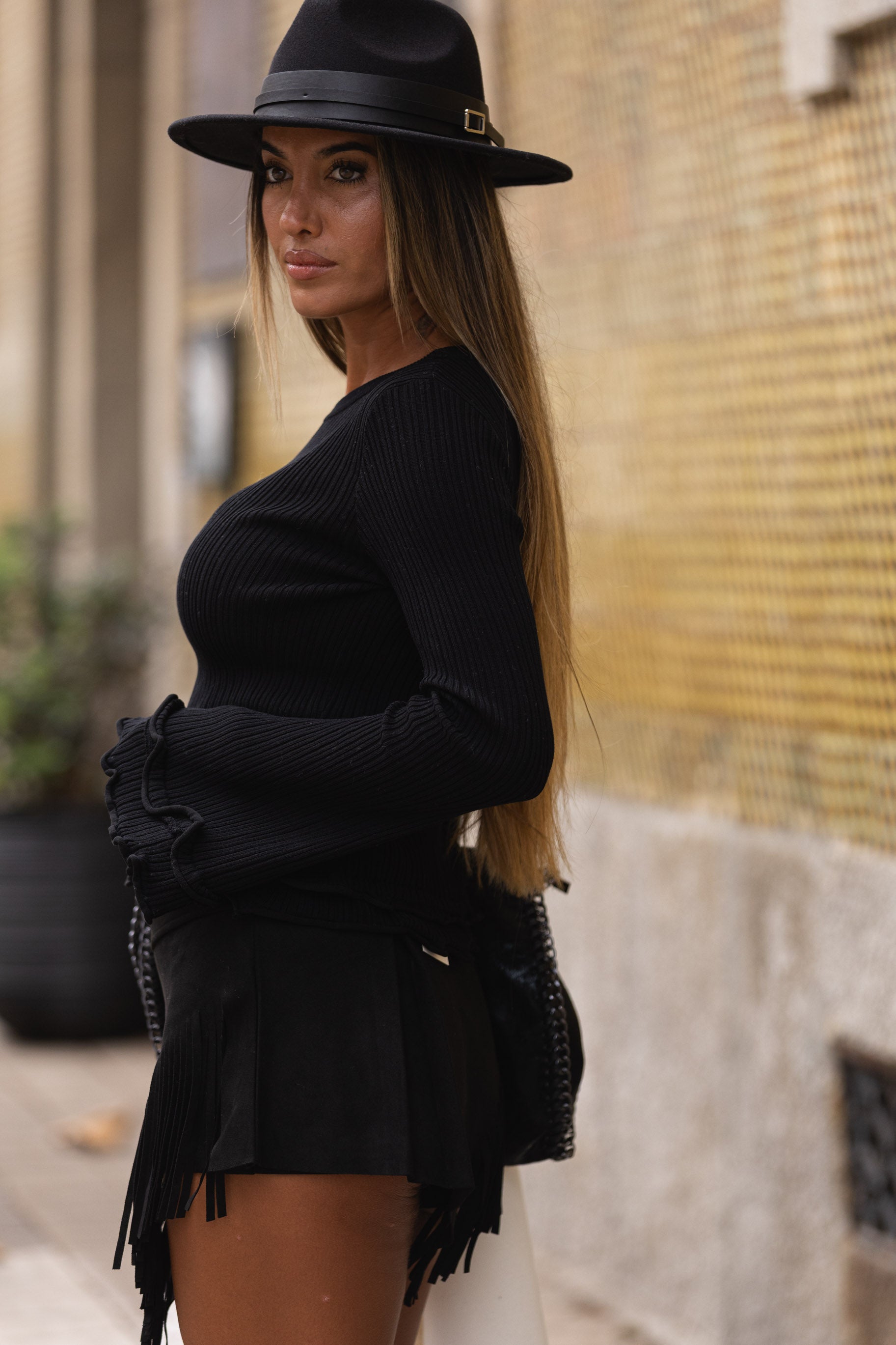 Saia-calção c/ franjas laterais - preta
