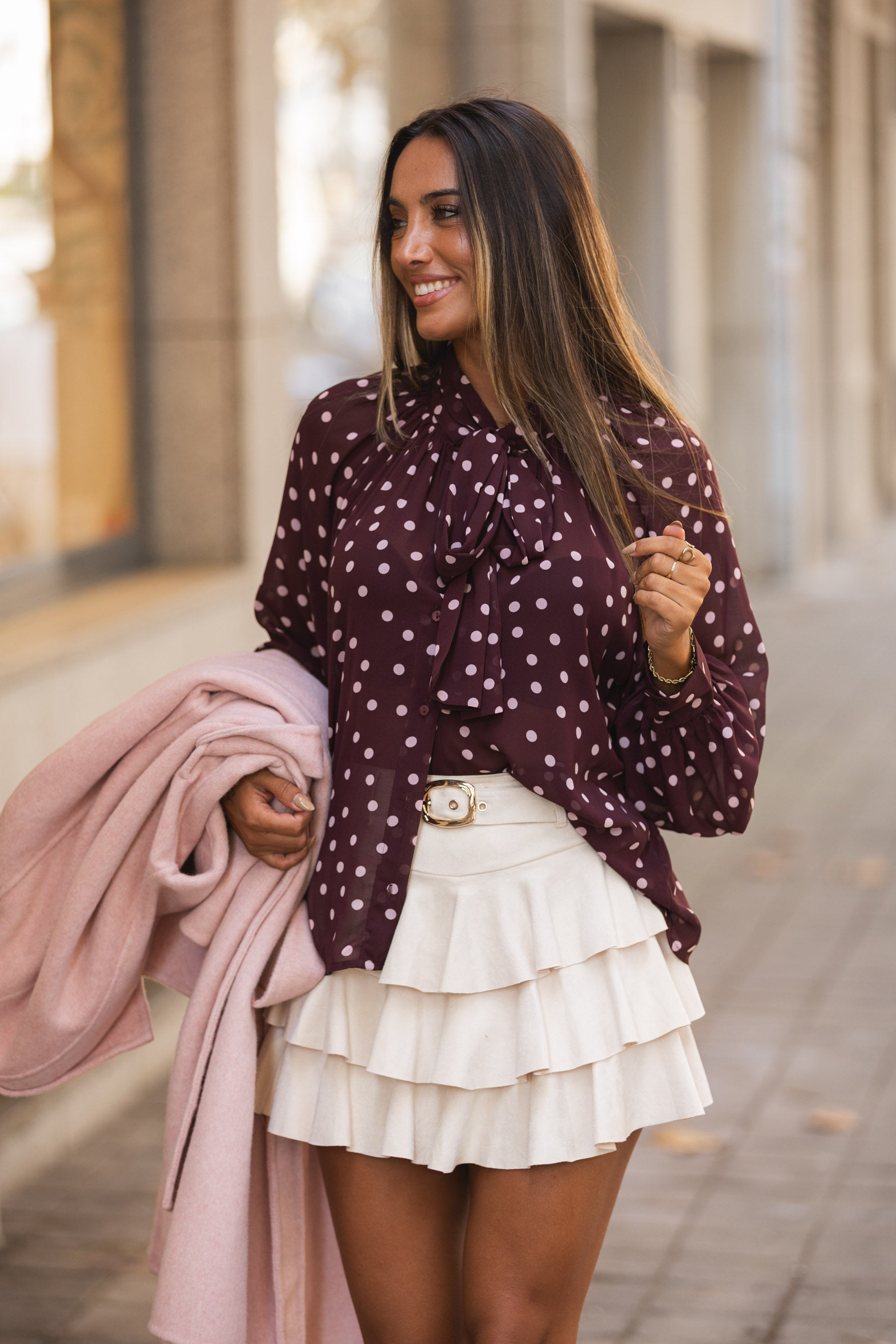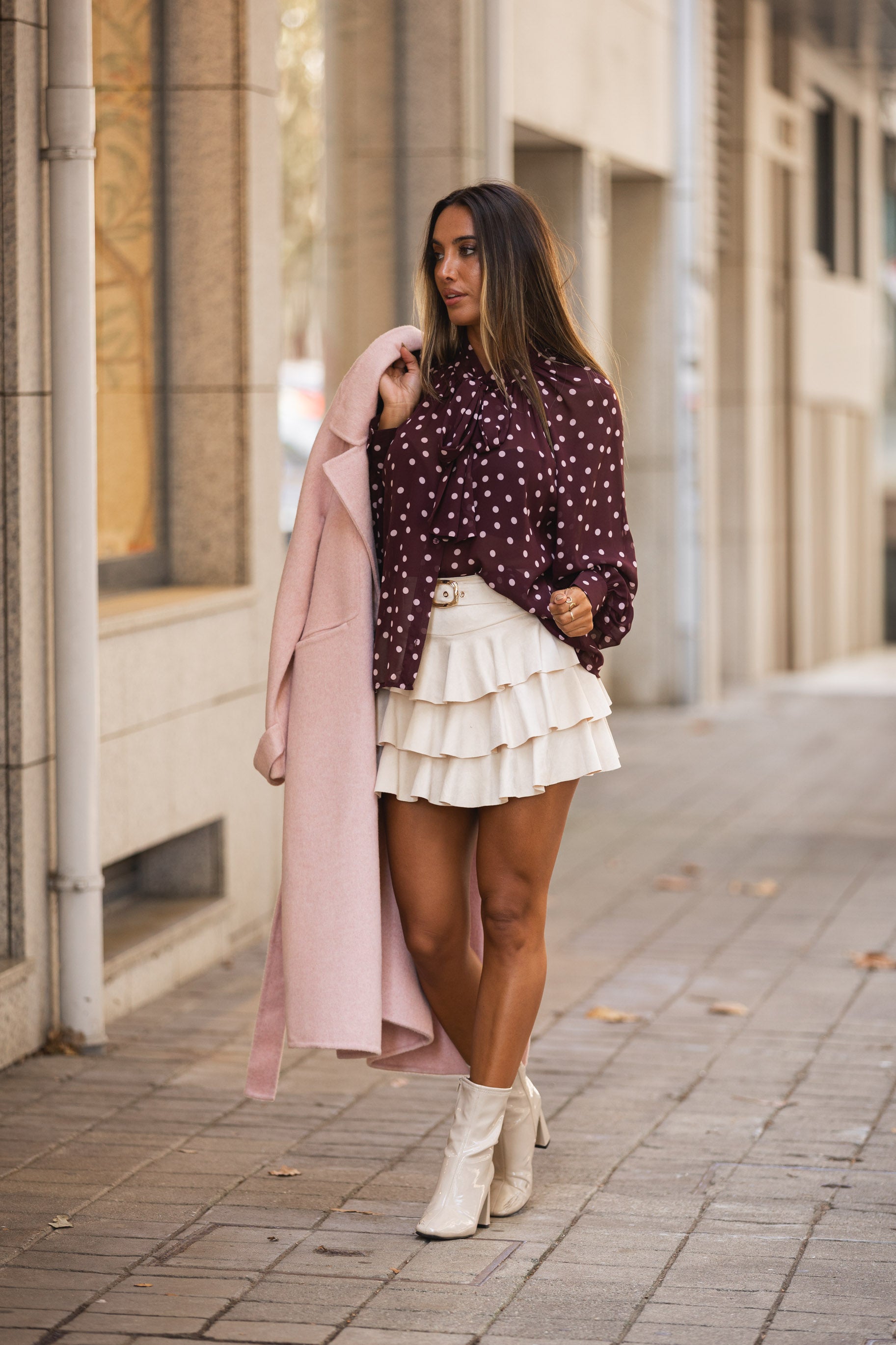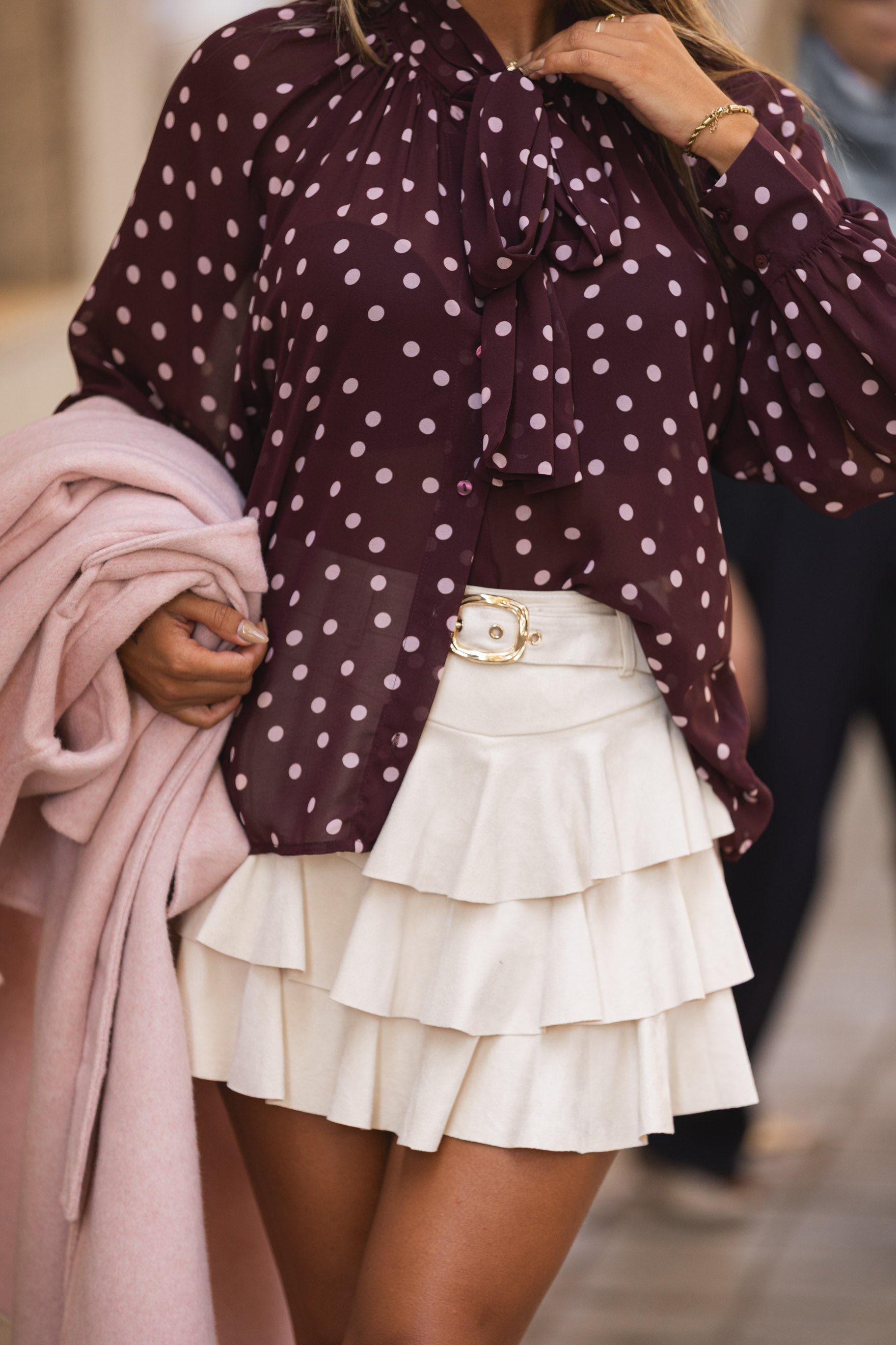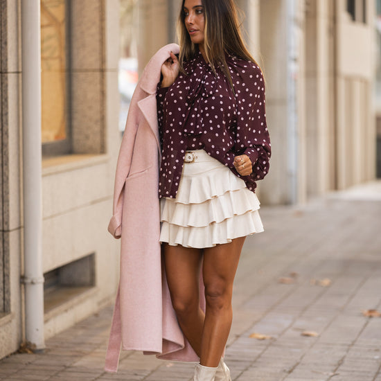 Saia-calção folhos pérola