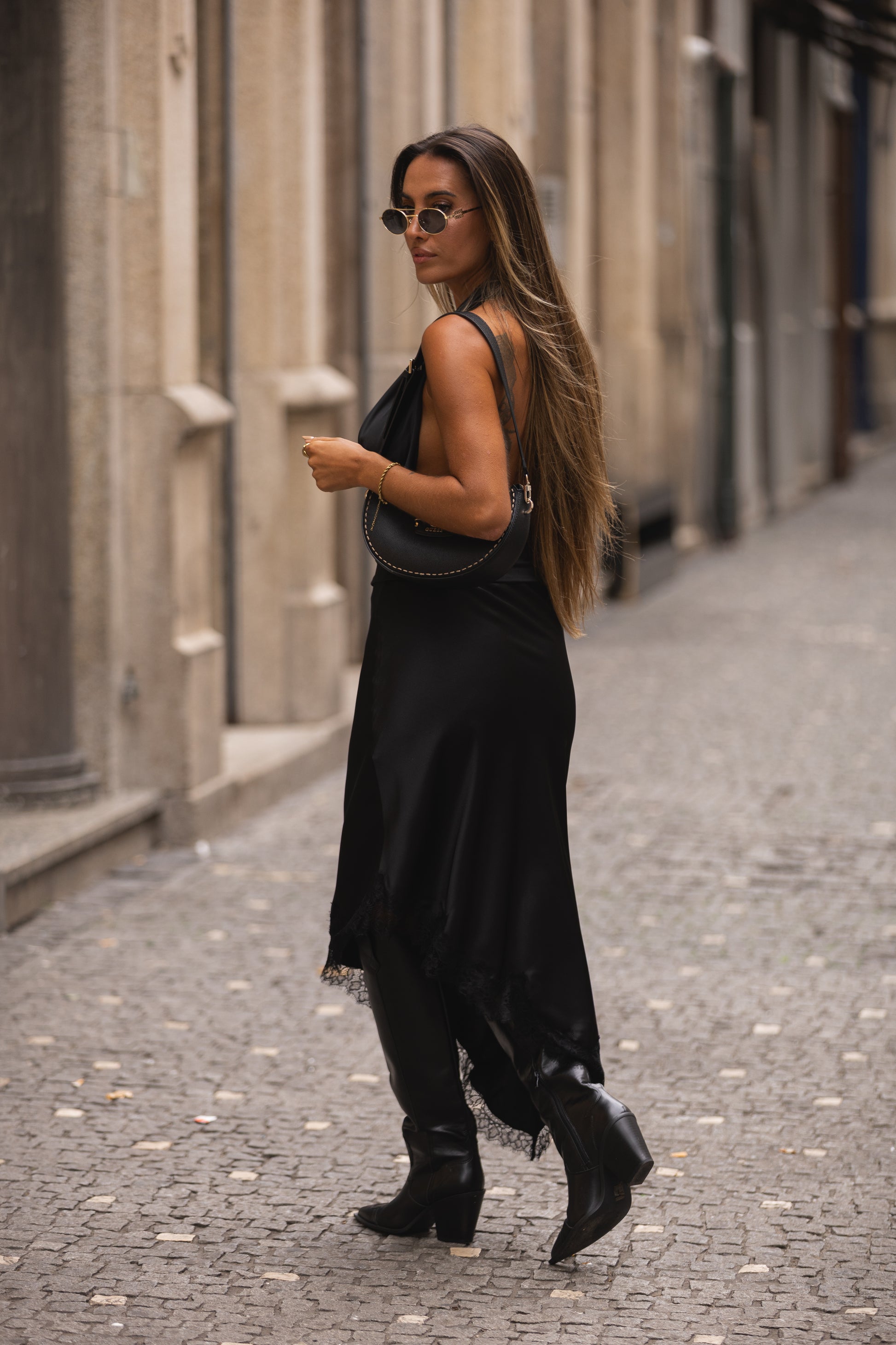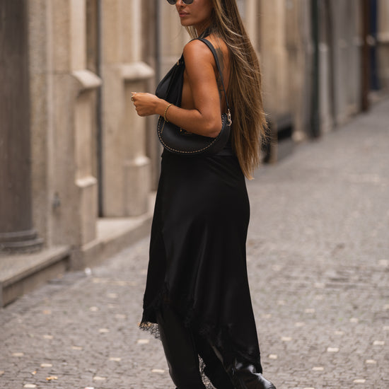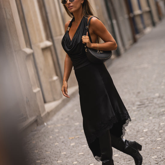 Saia cetim c/ remate em renda - preta