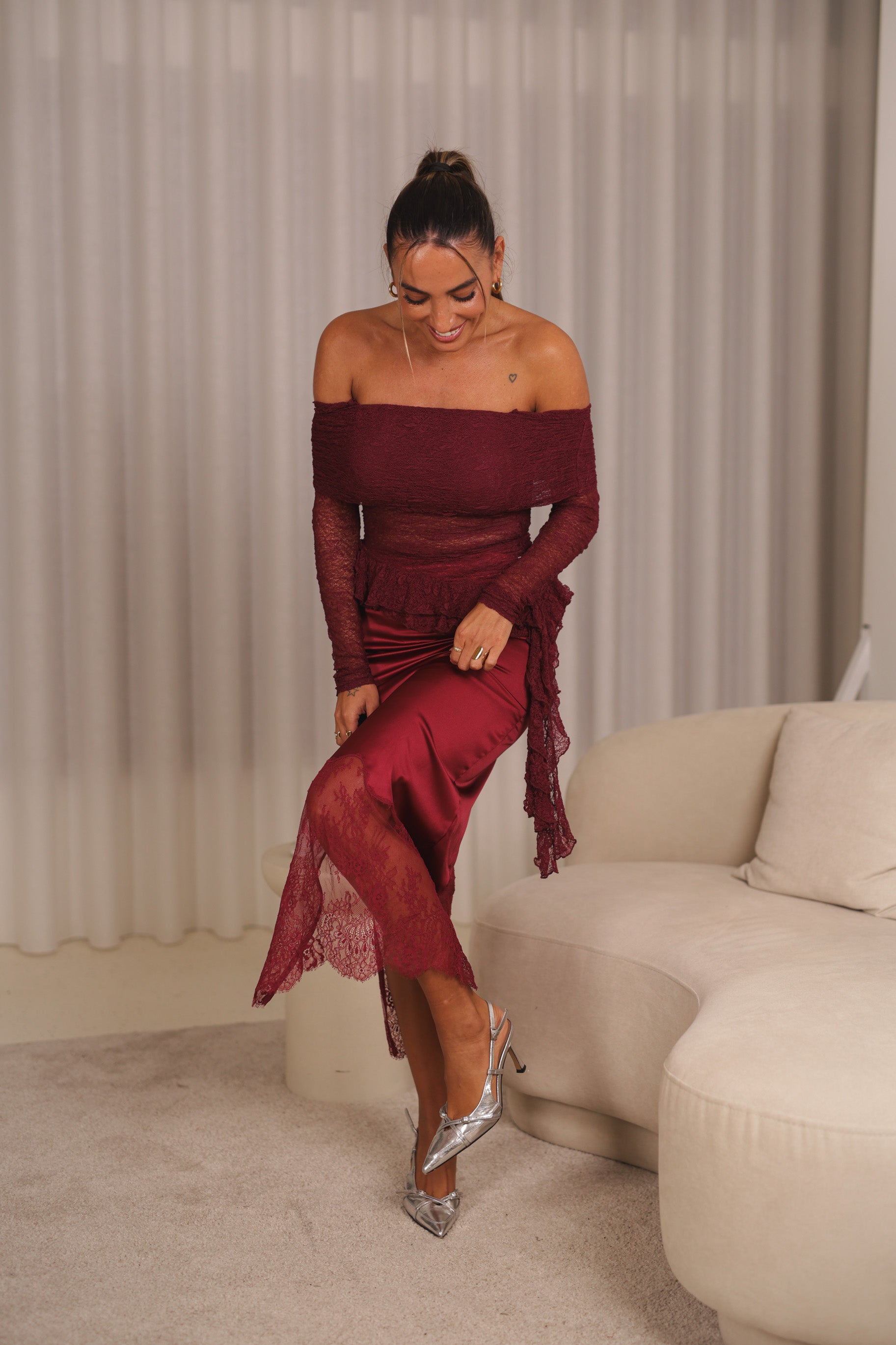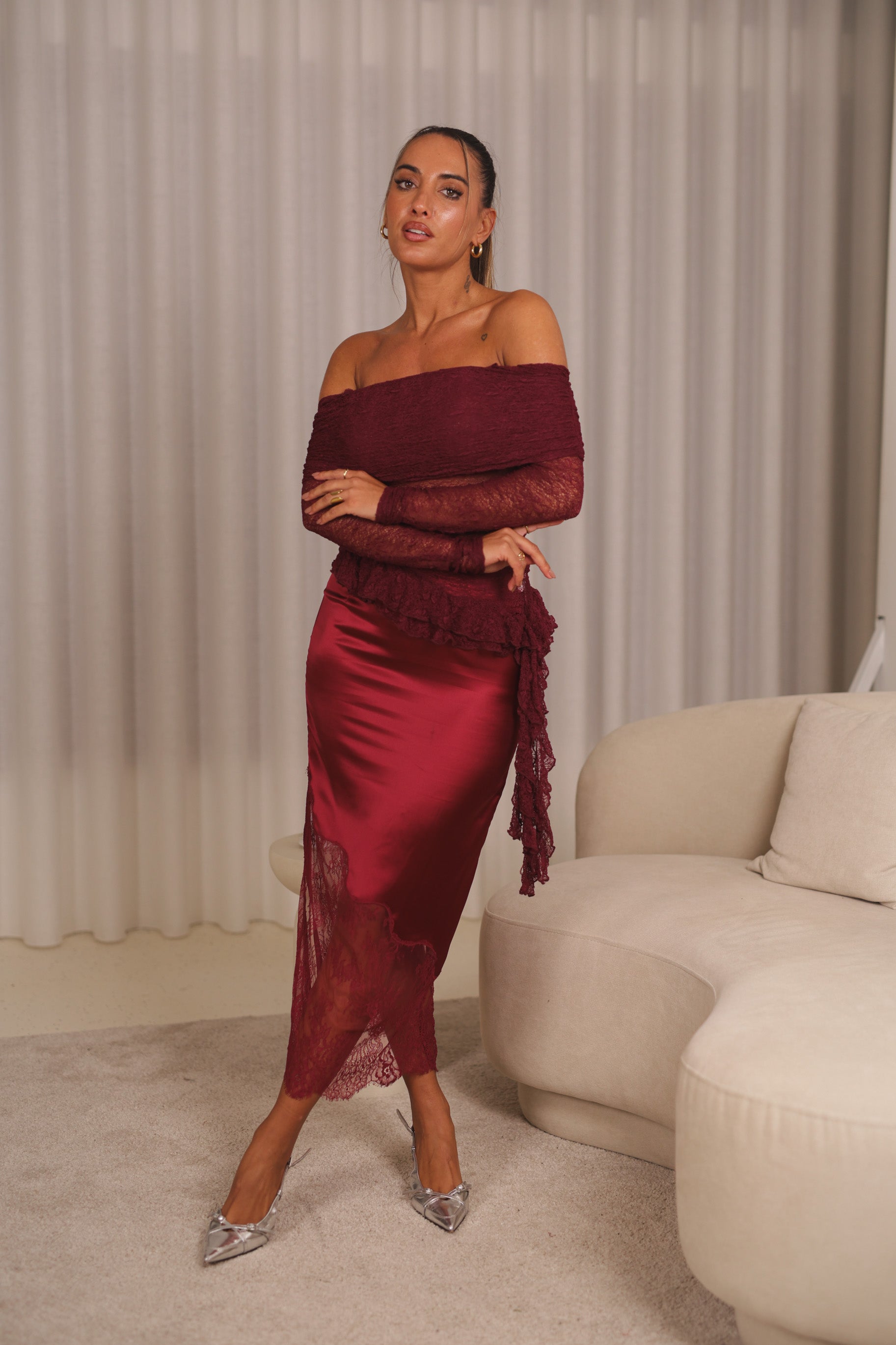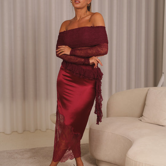 Saia cetim c/ renda - bordeux