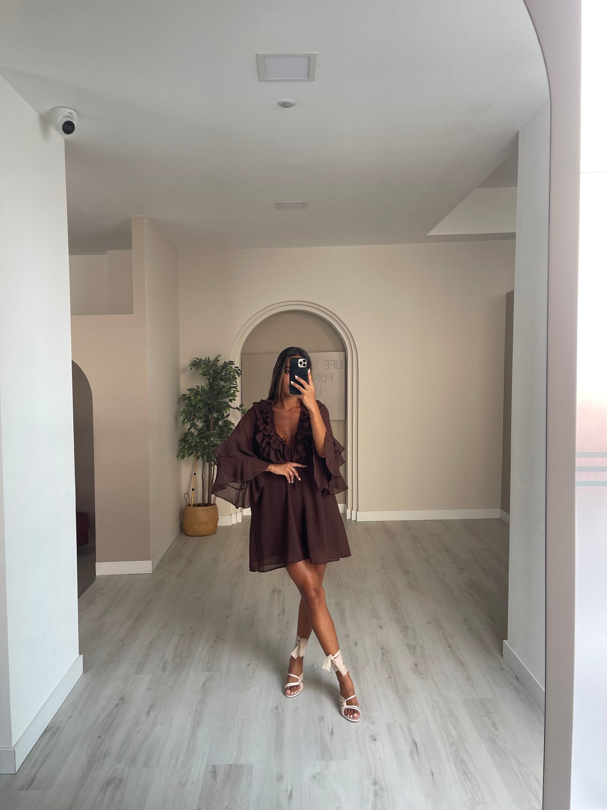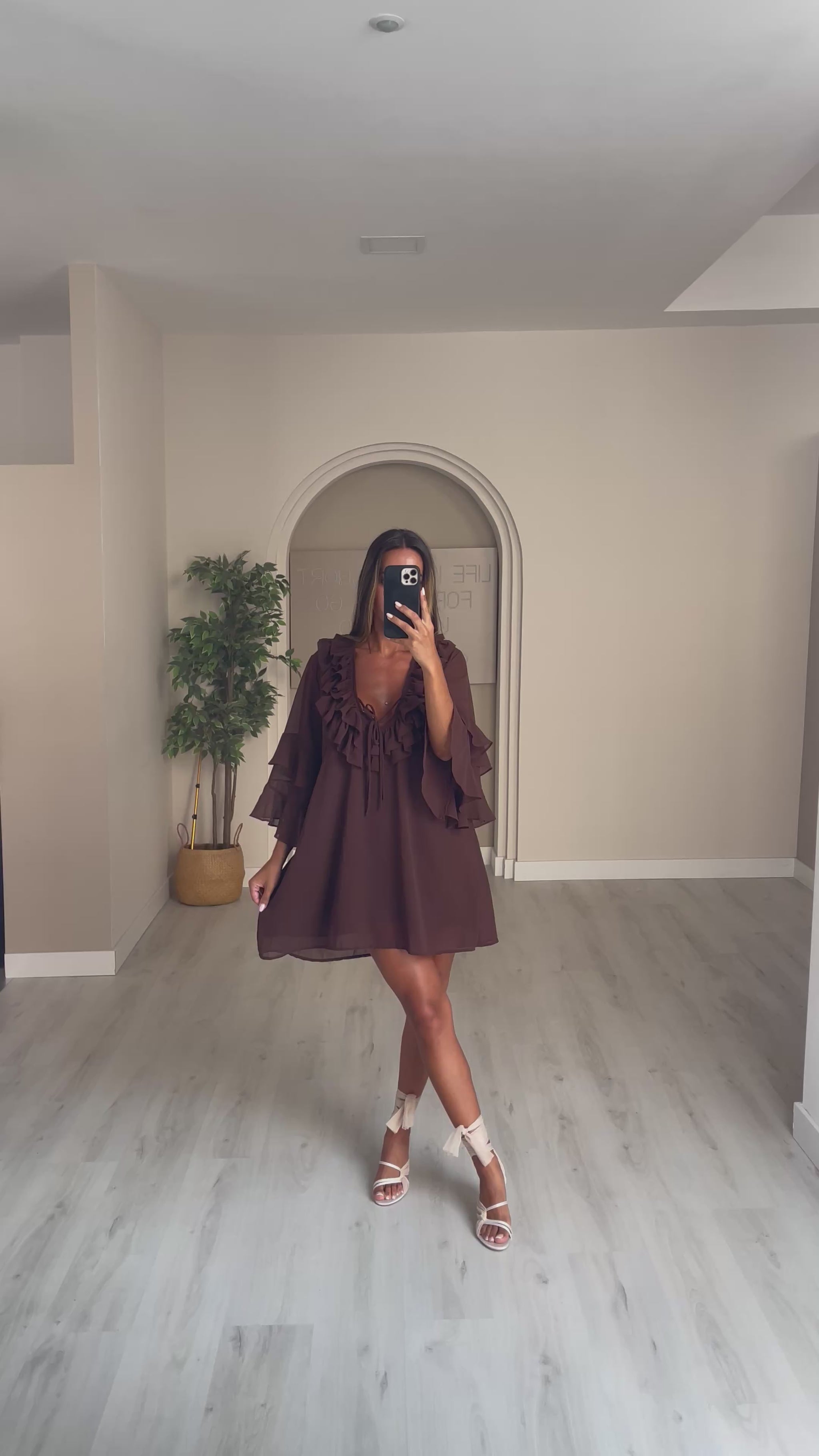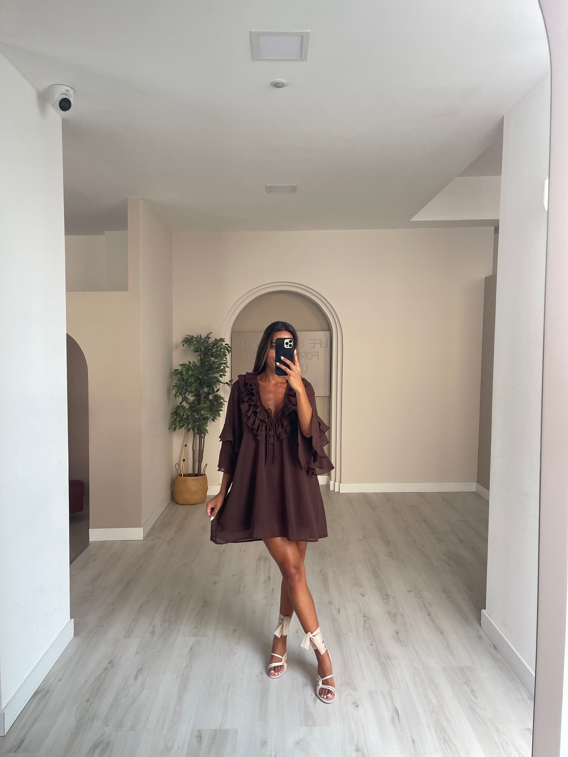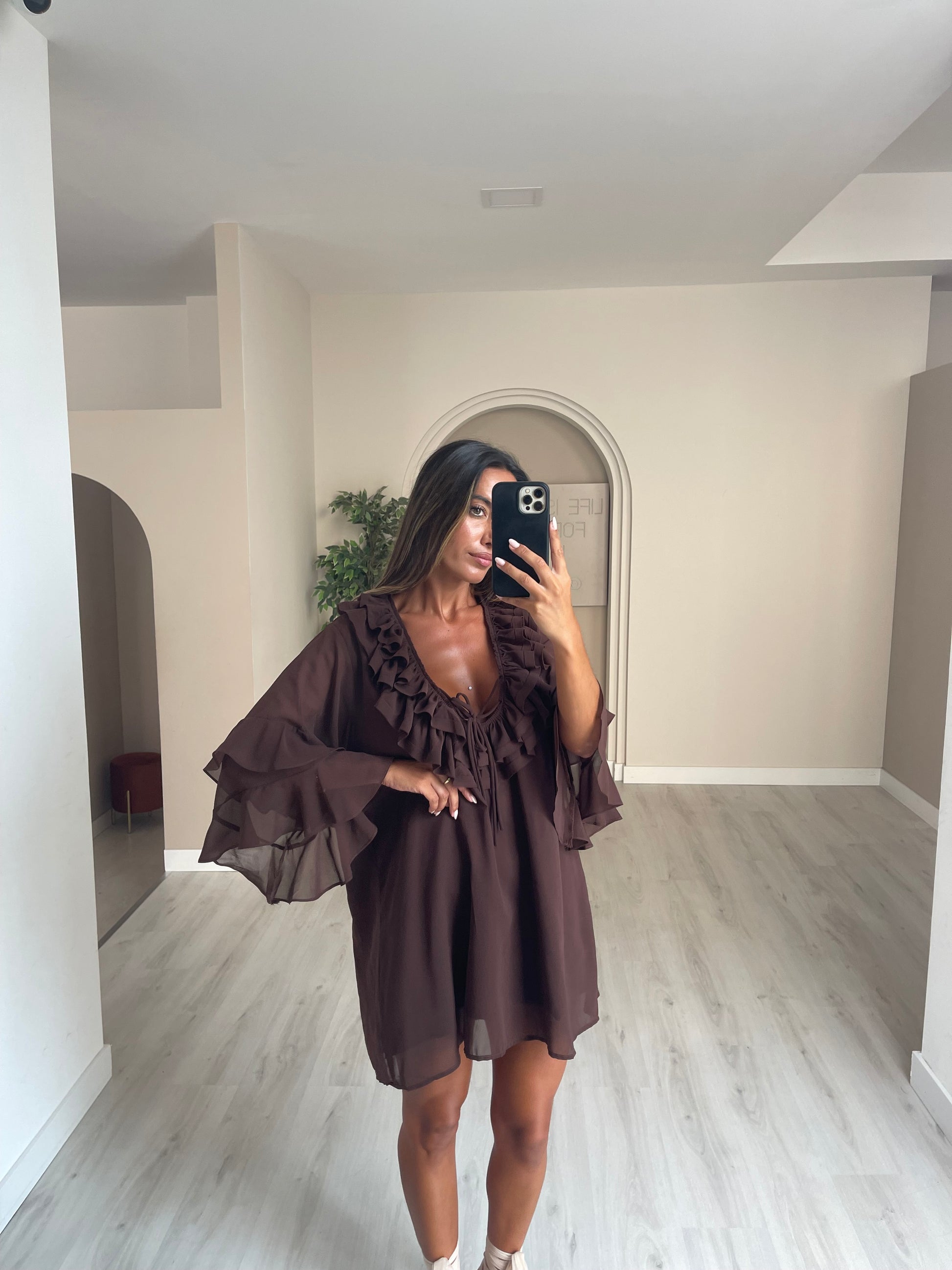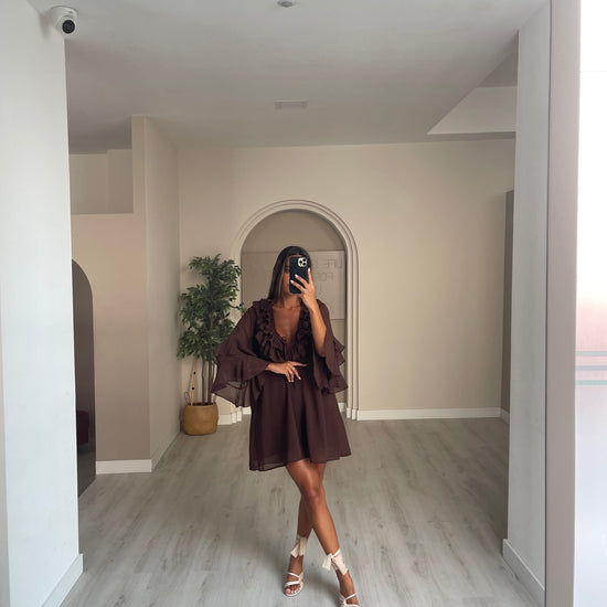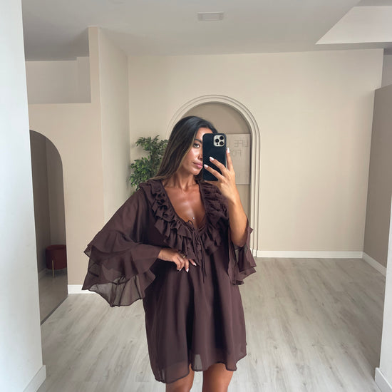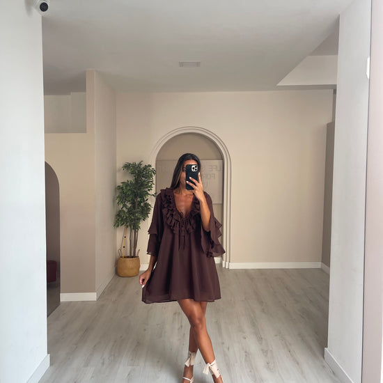Túnica folhos no peito - castanho