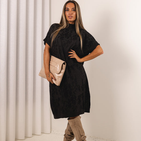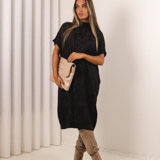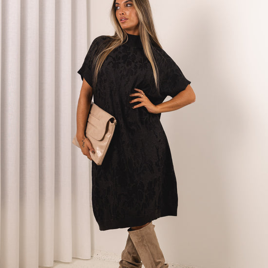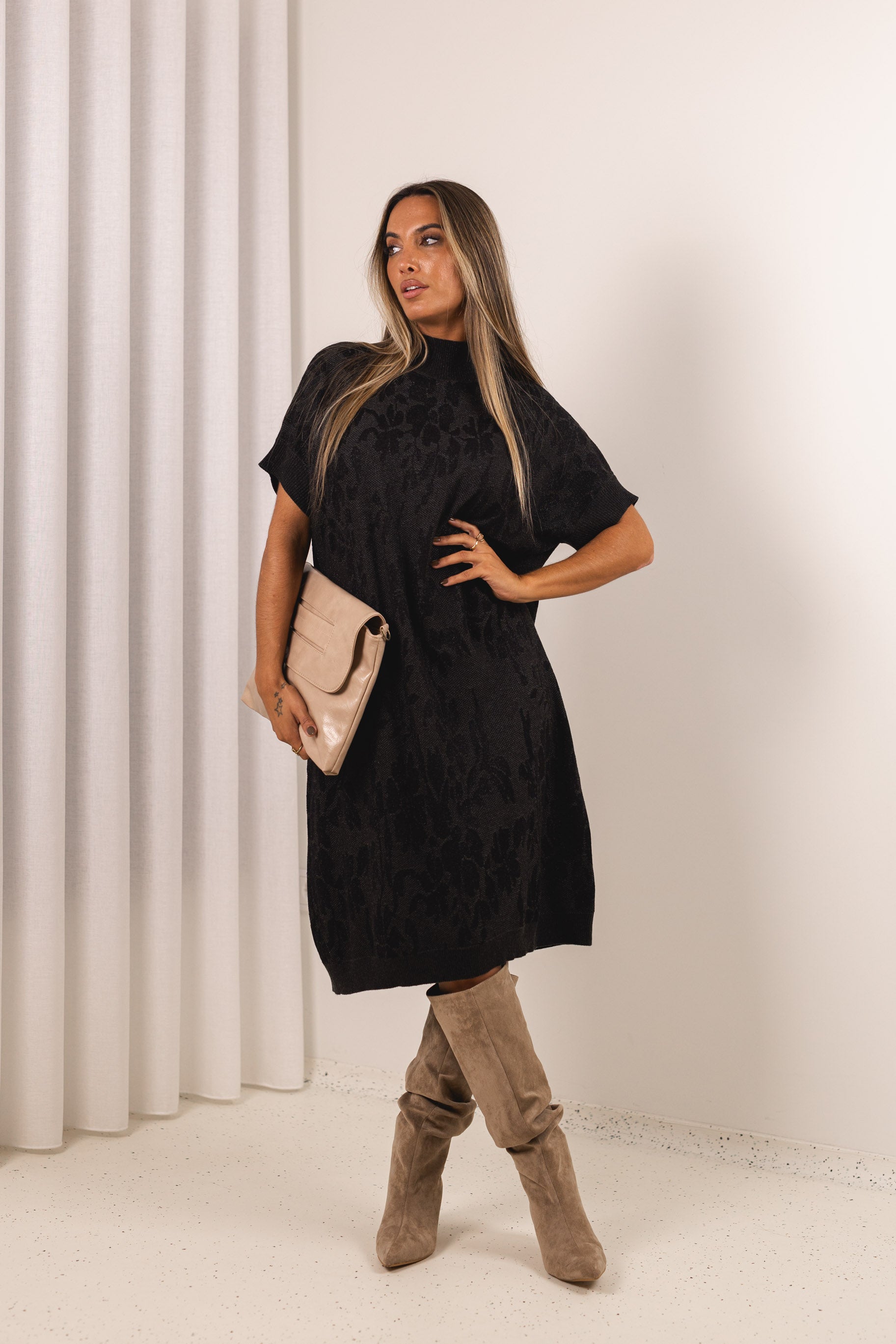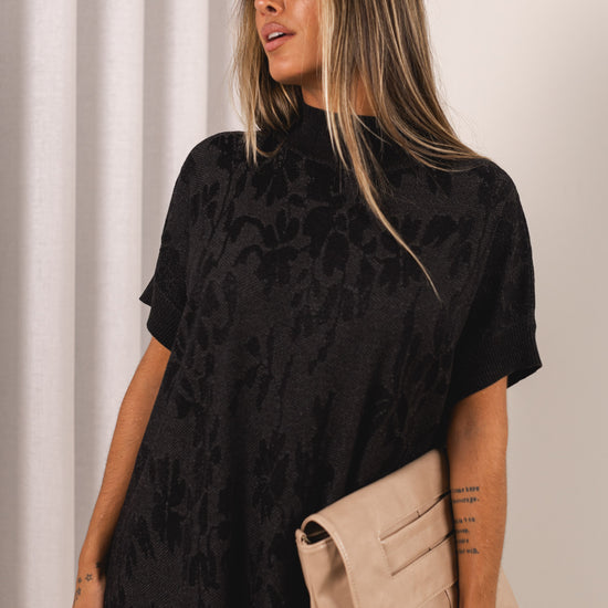 Vestudo em malha com meia gola e manga curta. Super confortável, a malha nao pica e veste soltinho. A modelo está com o S/M.