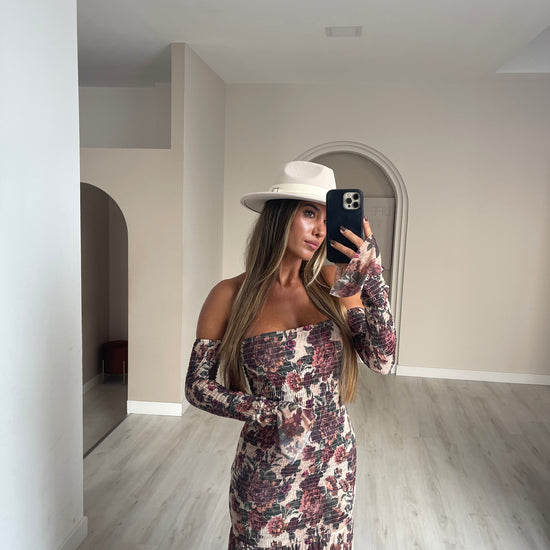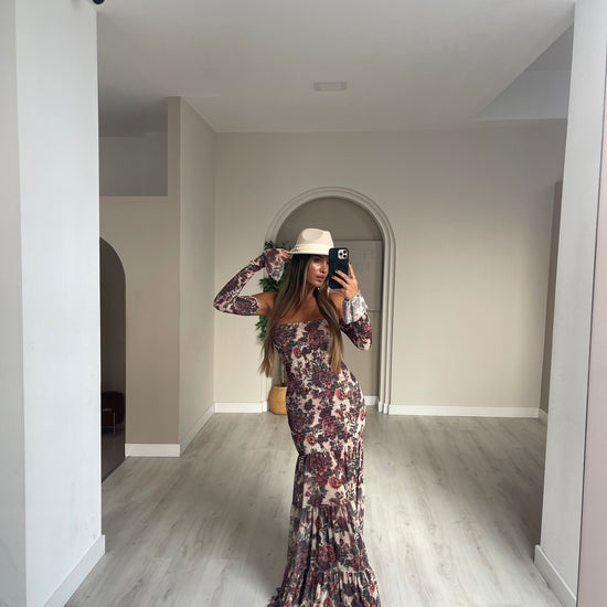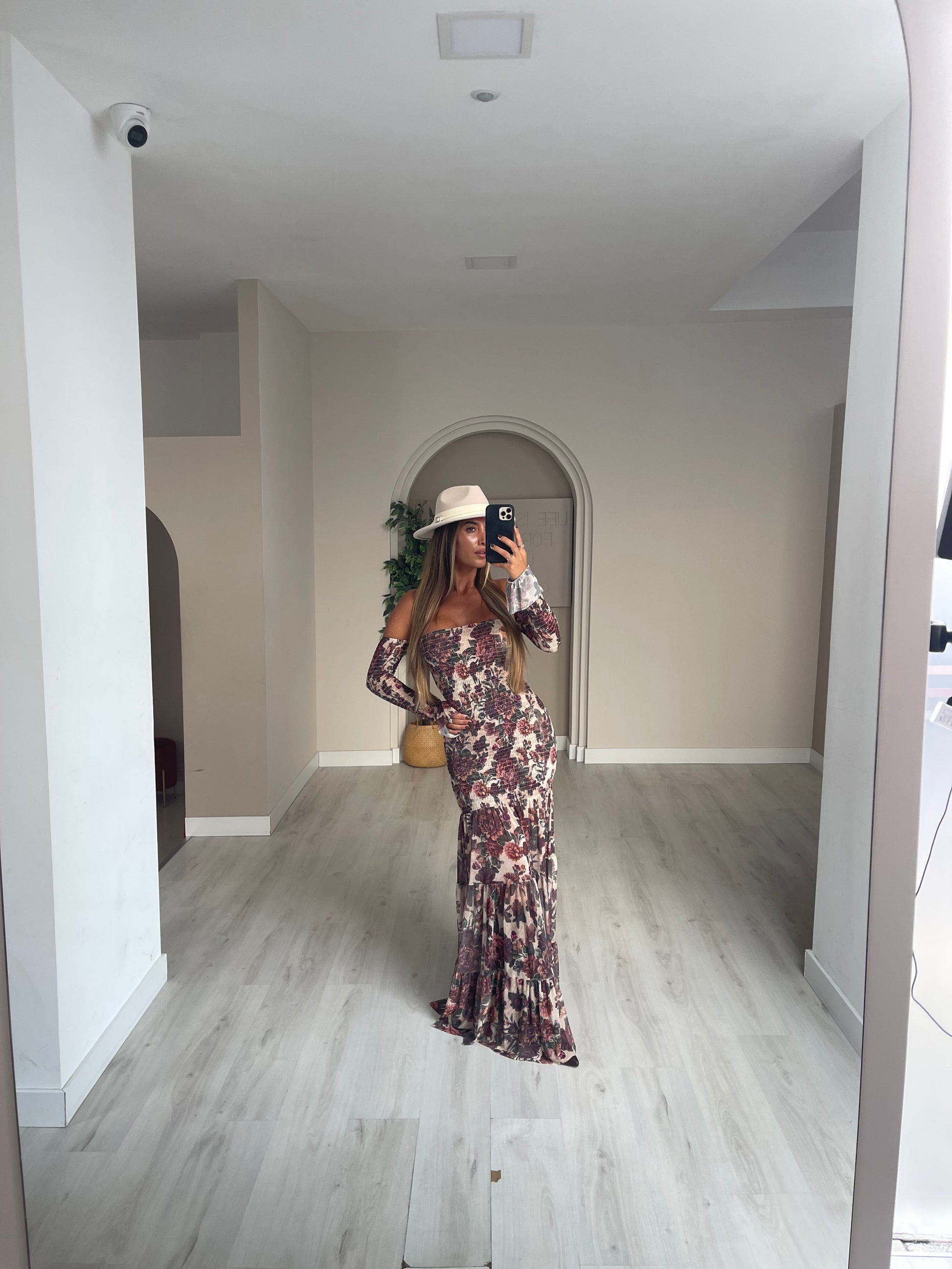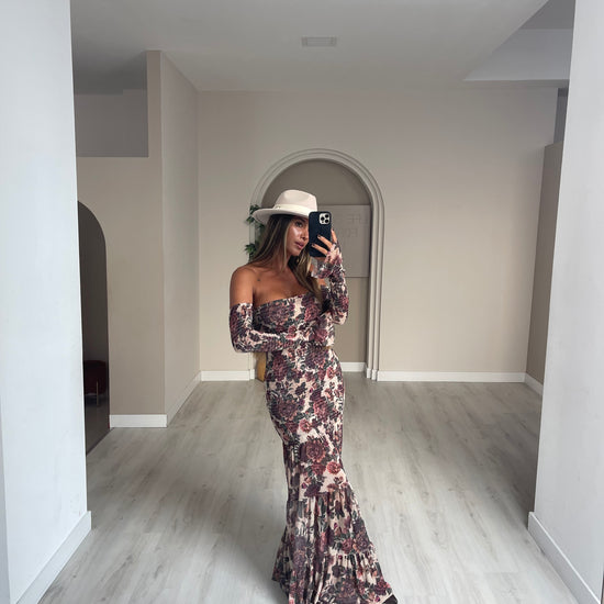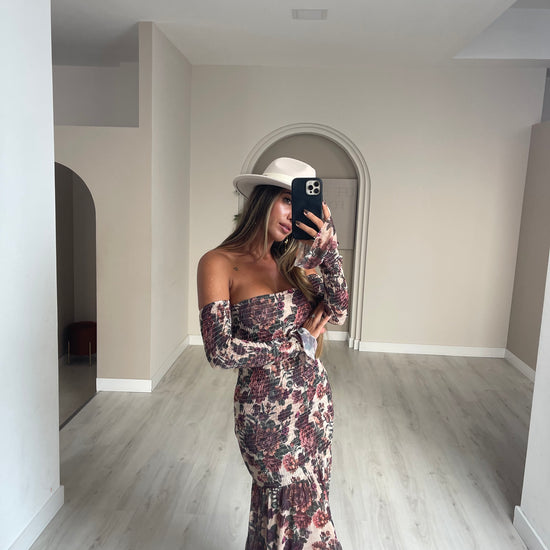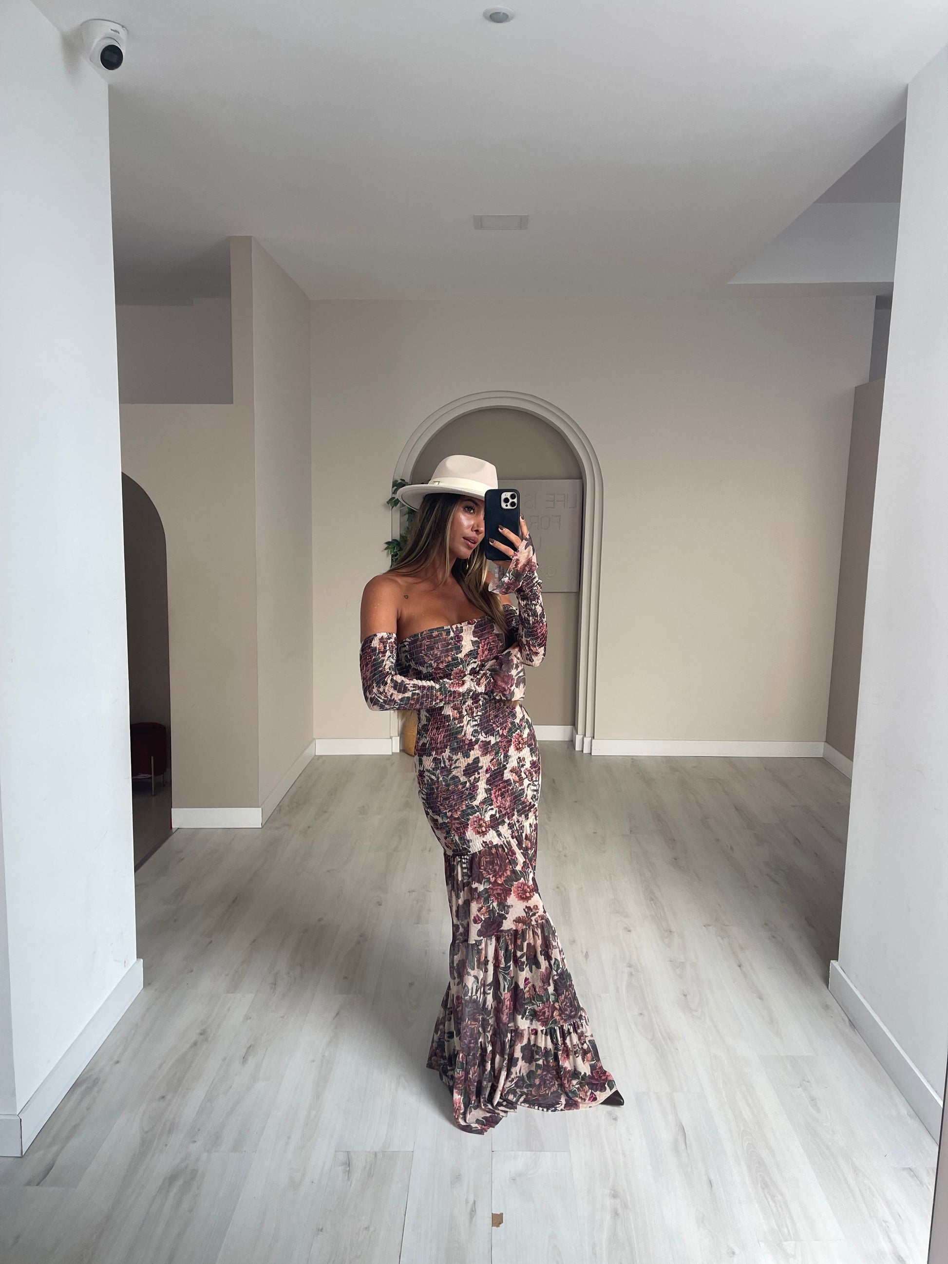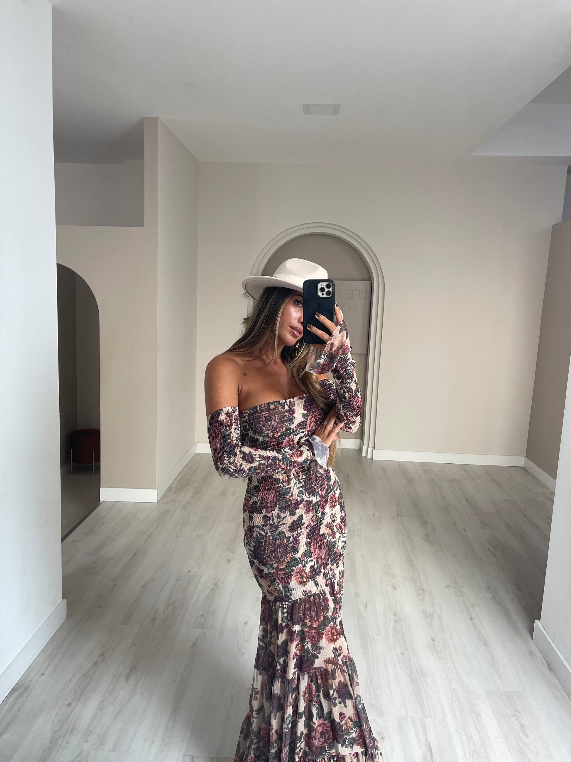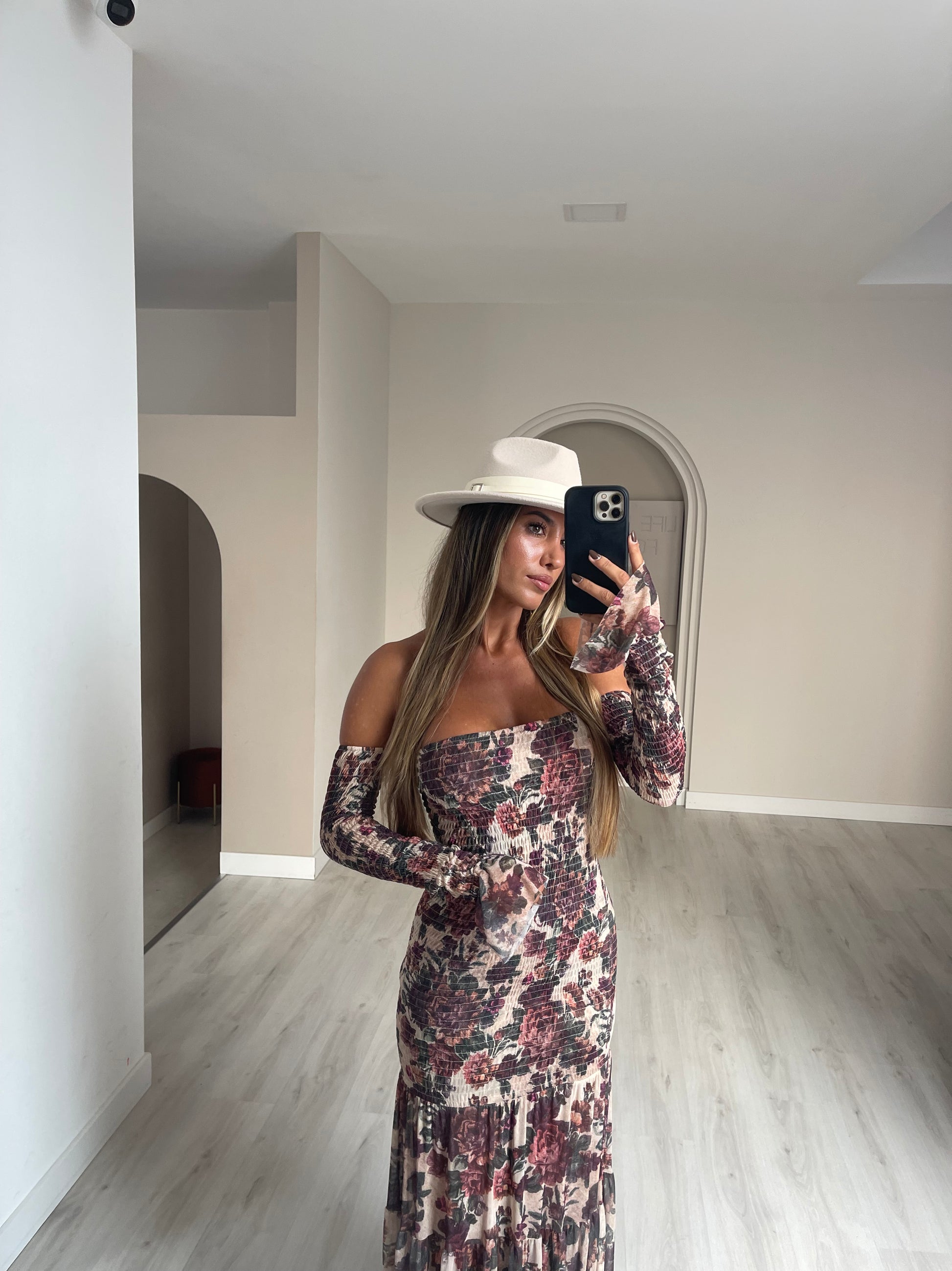 Vestido elástico, off shoulder. a modelo está com o S/M.