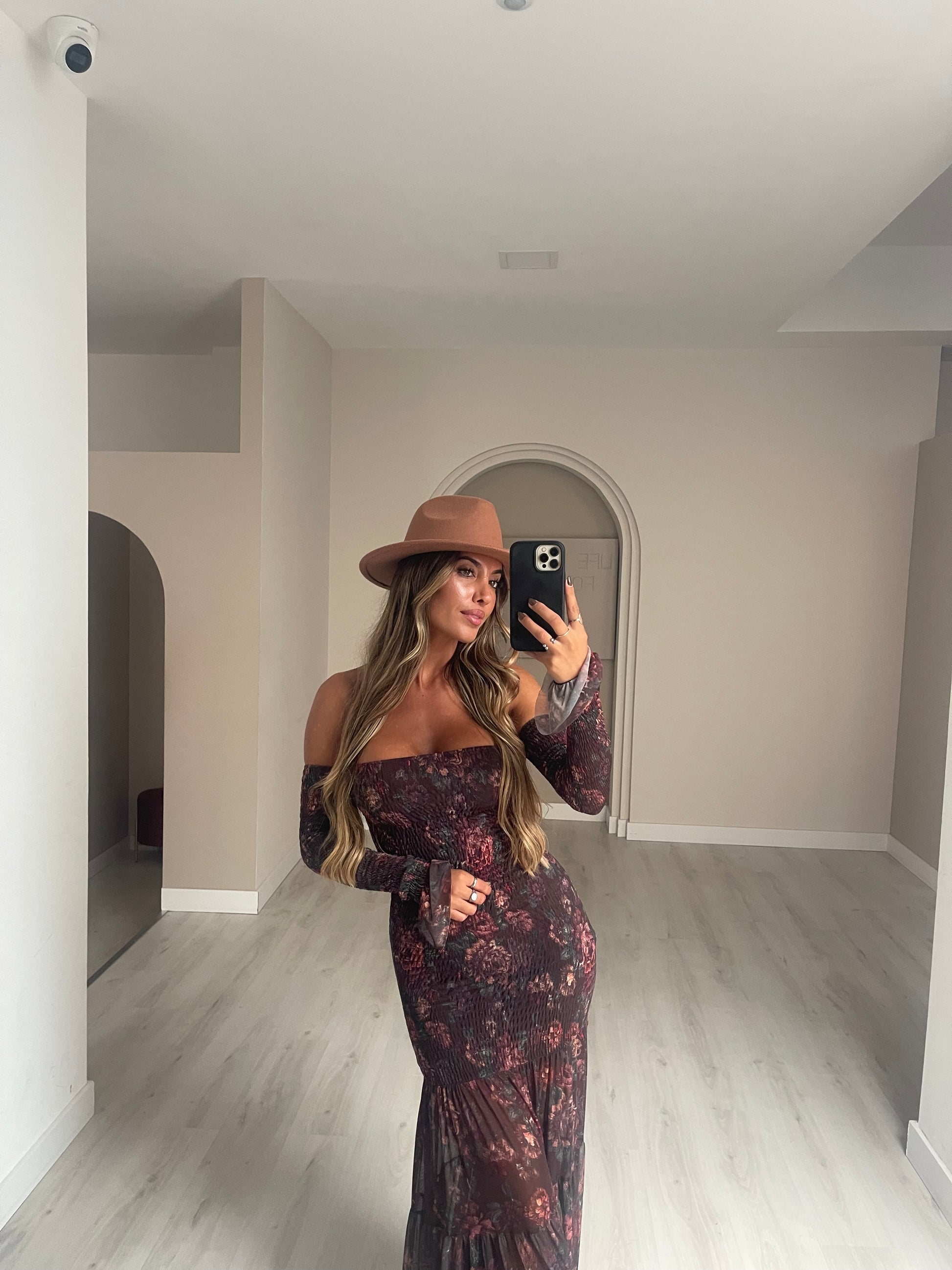 Vestido elástico, off shoulder. a modelo está com o S/M.