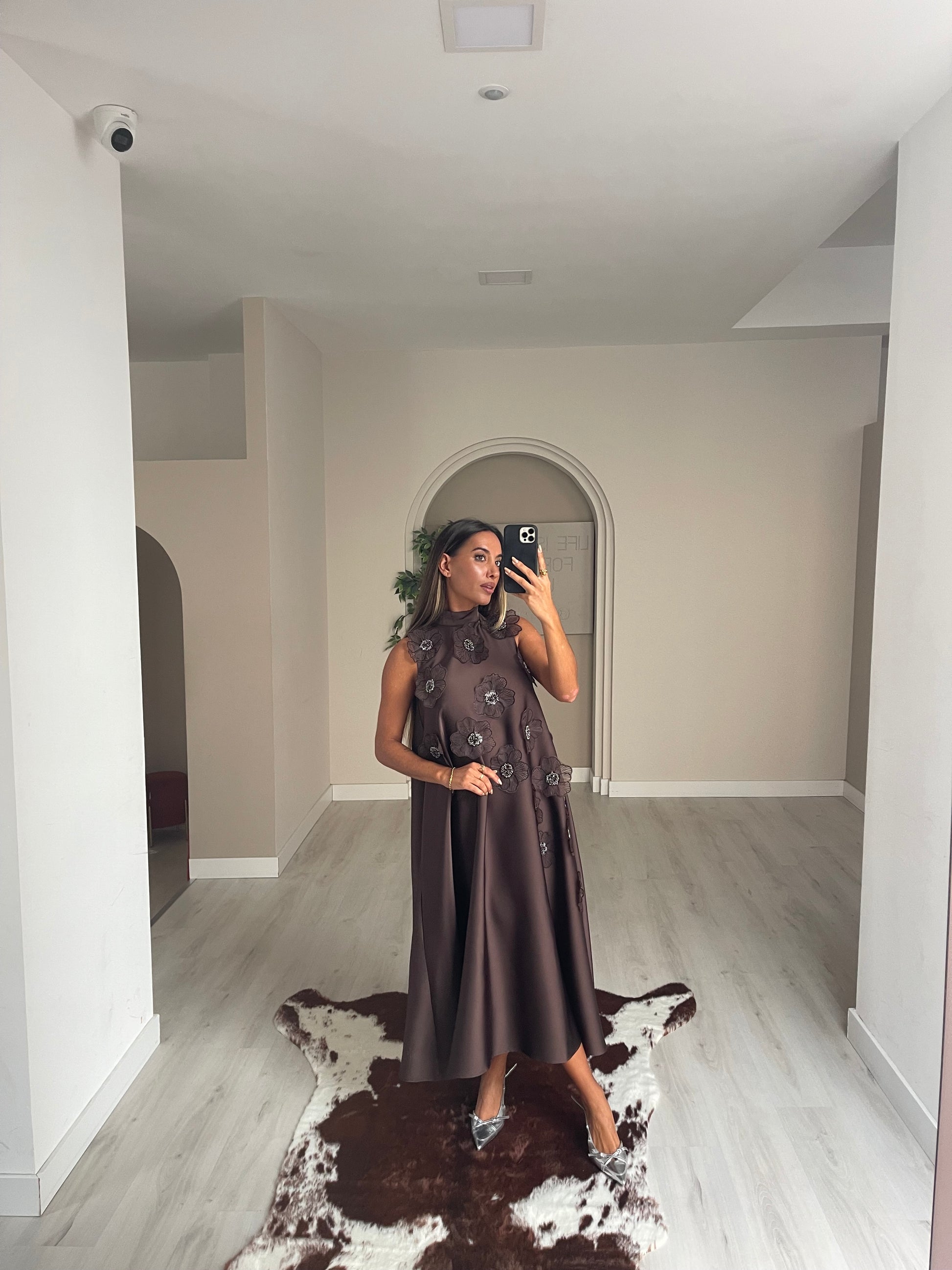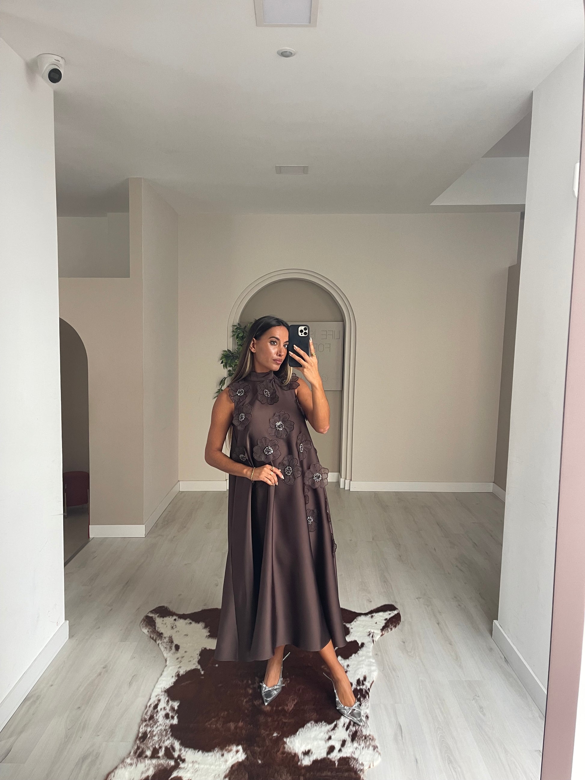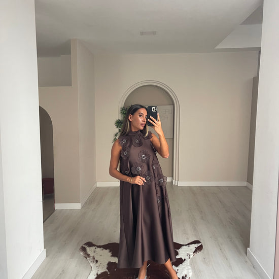 Vestido Flores - castanho