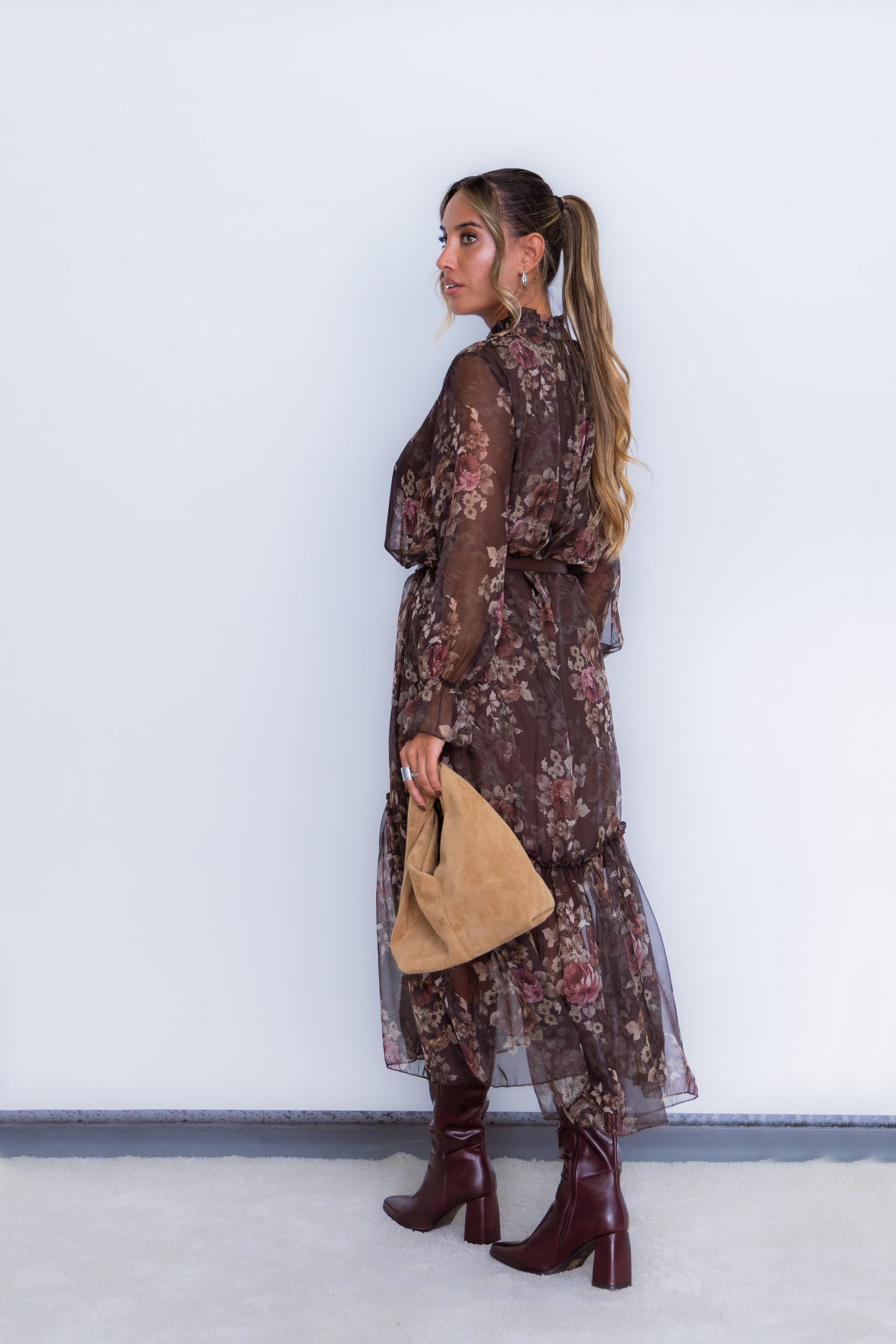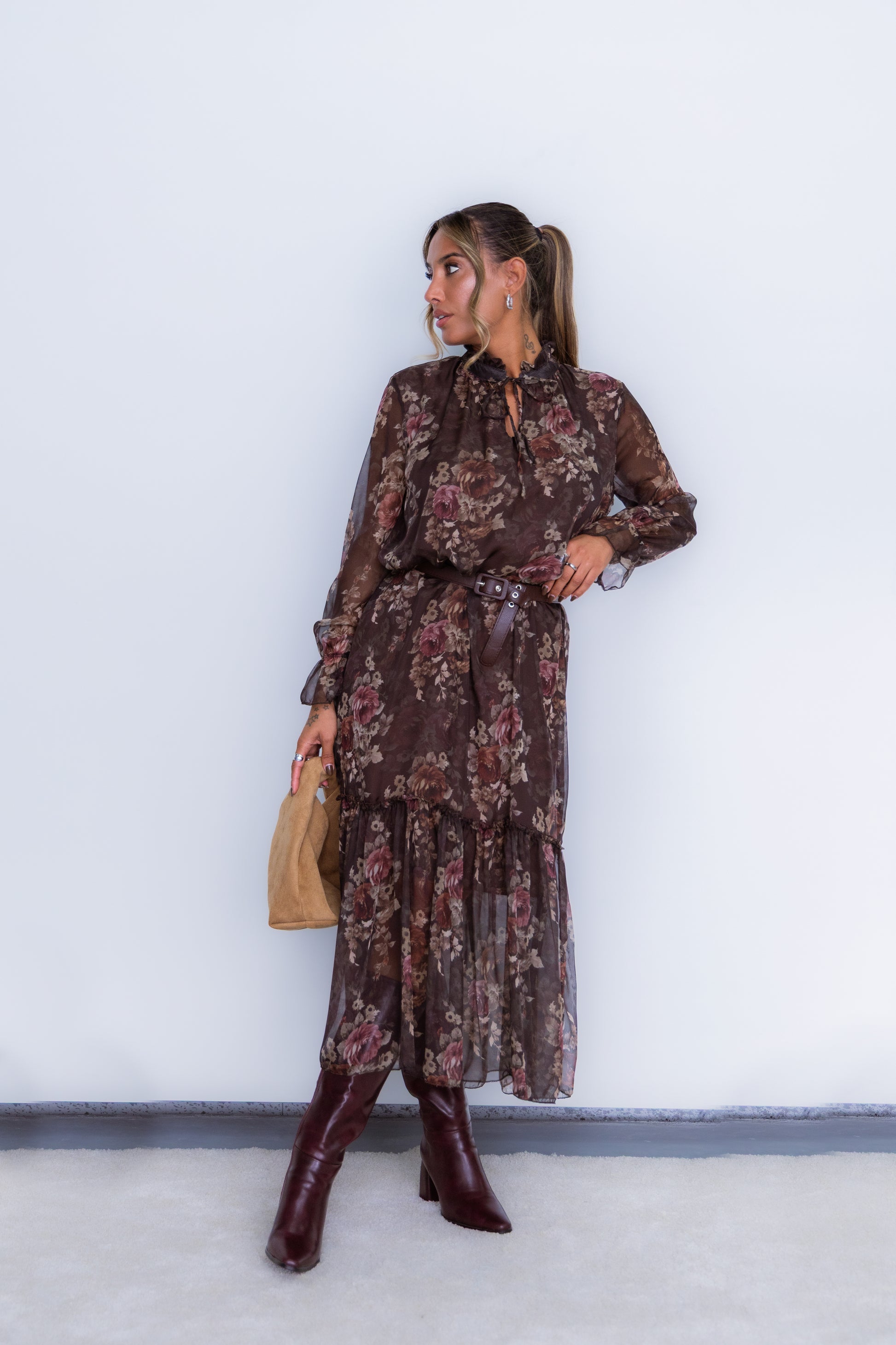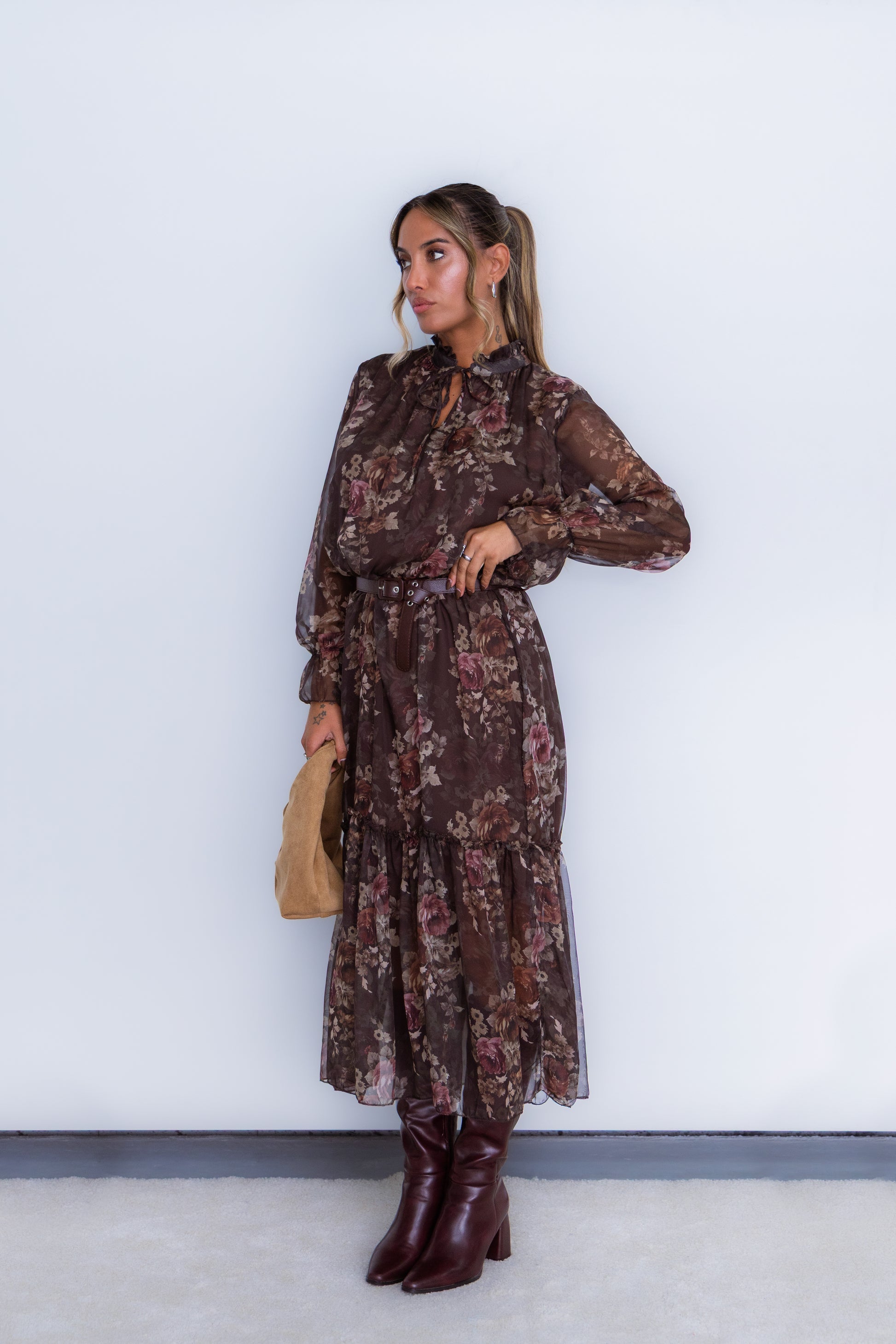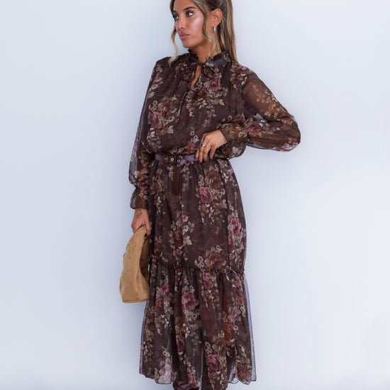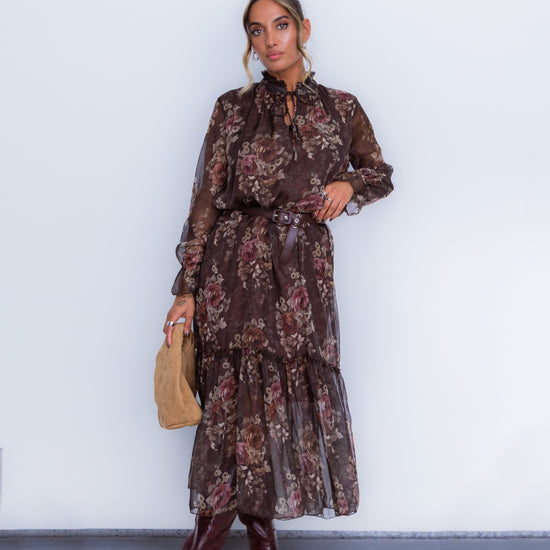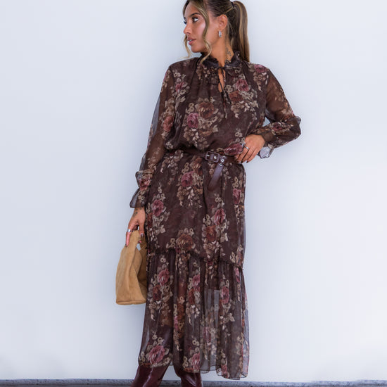 Vestido florido - castanho