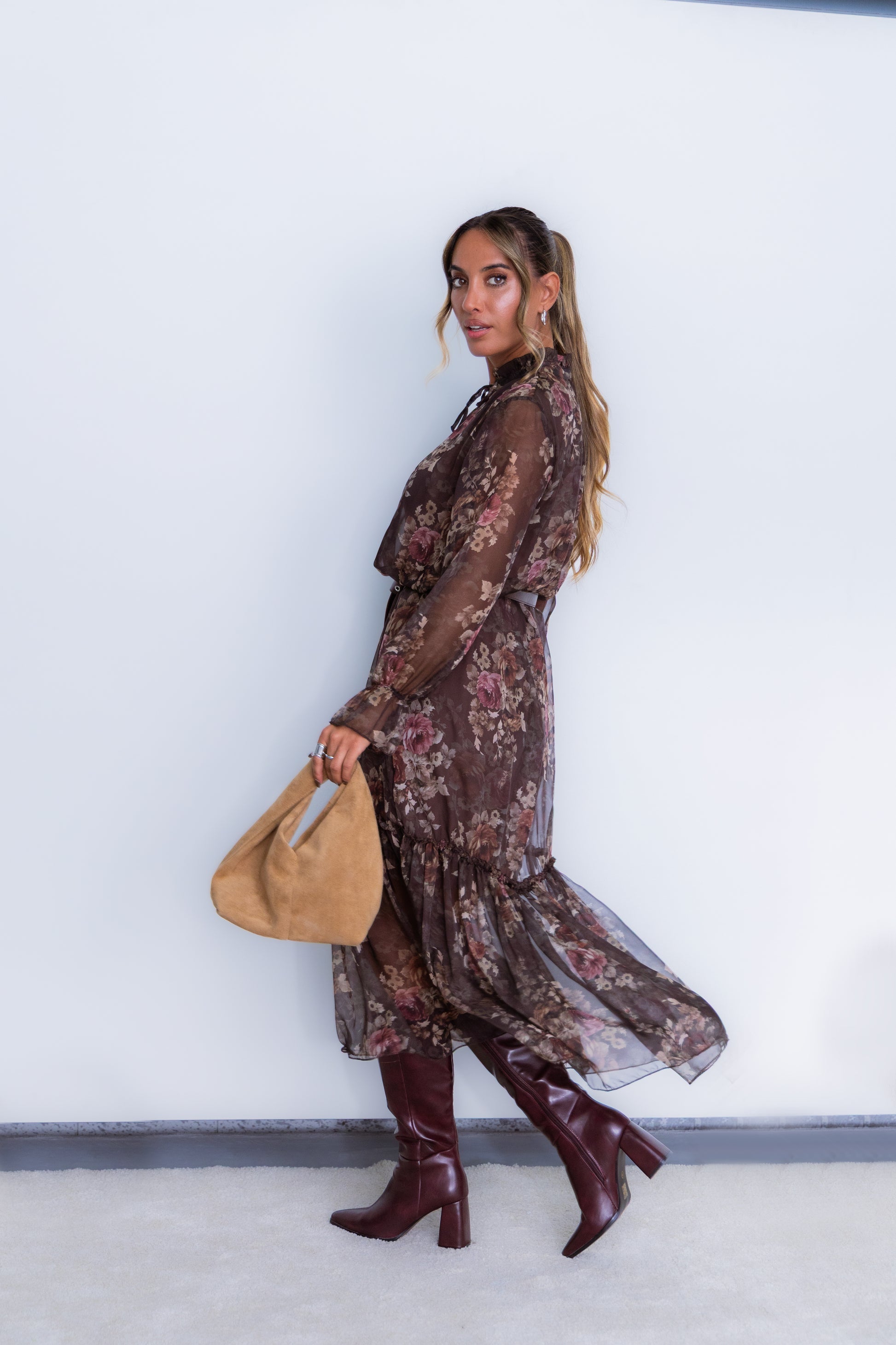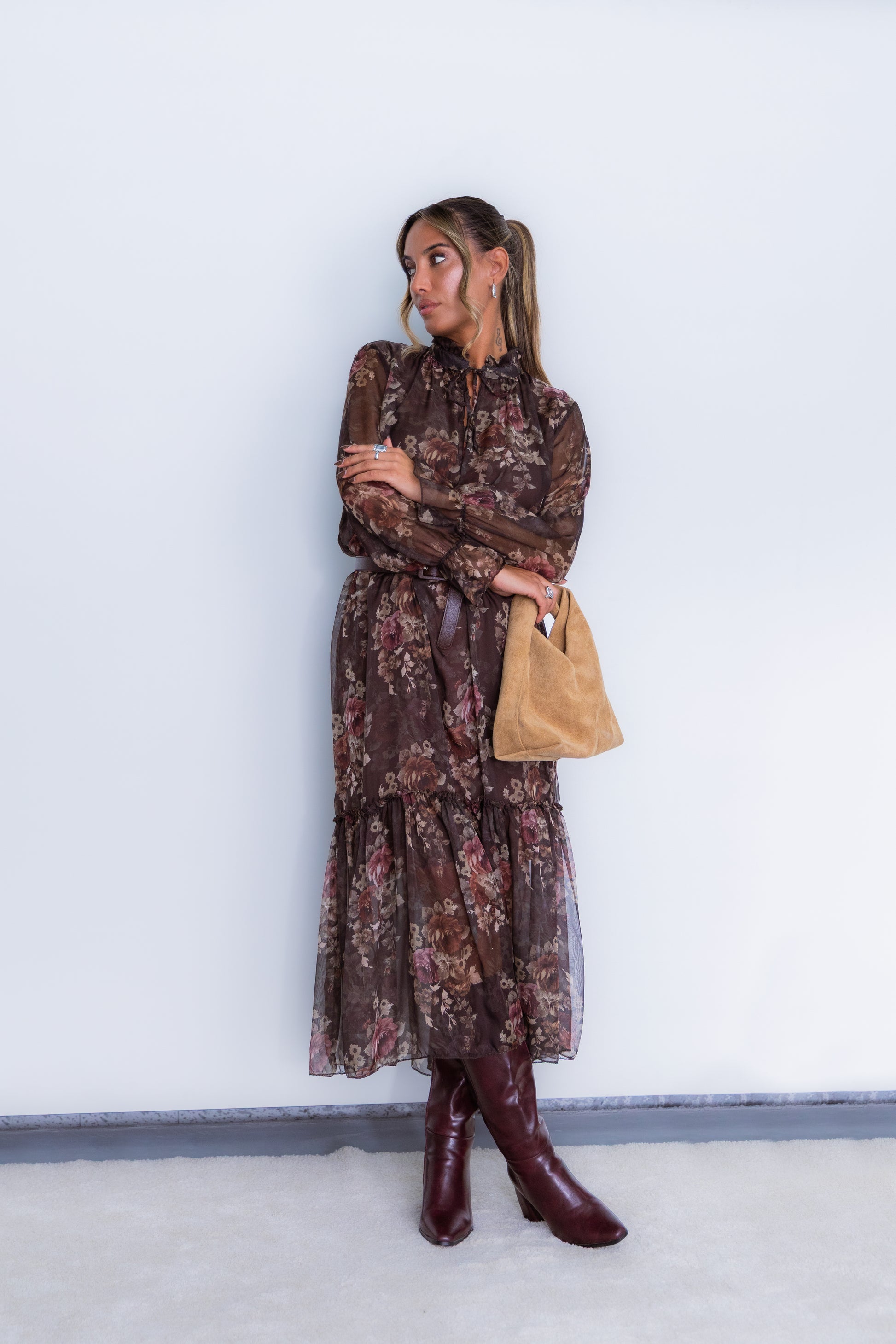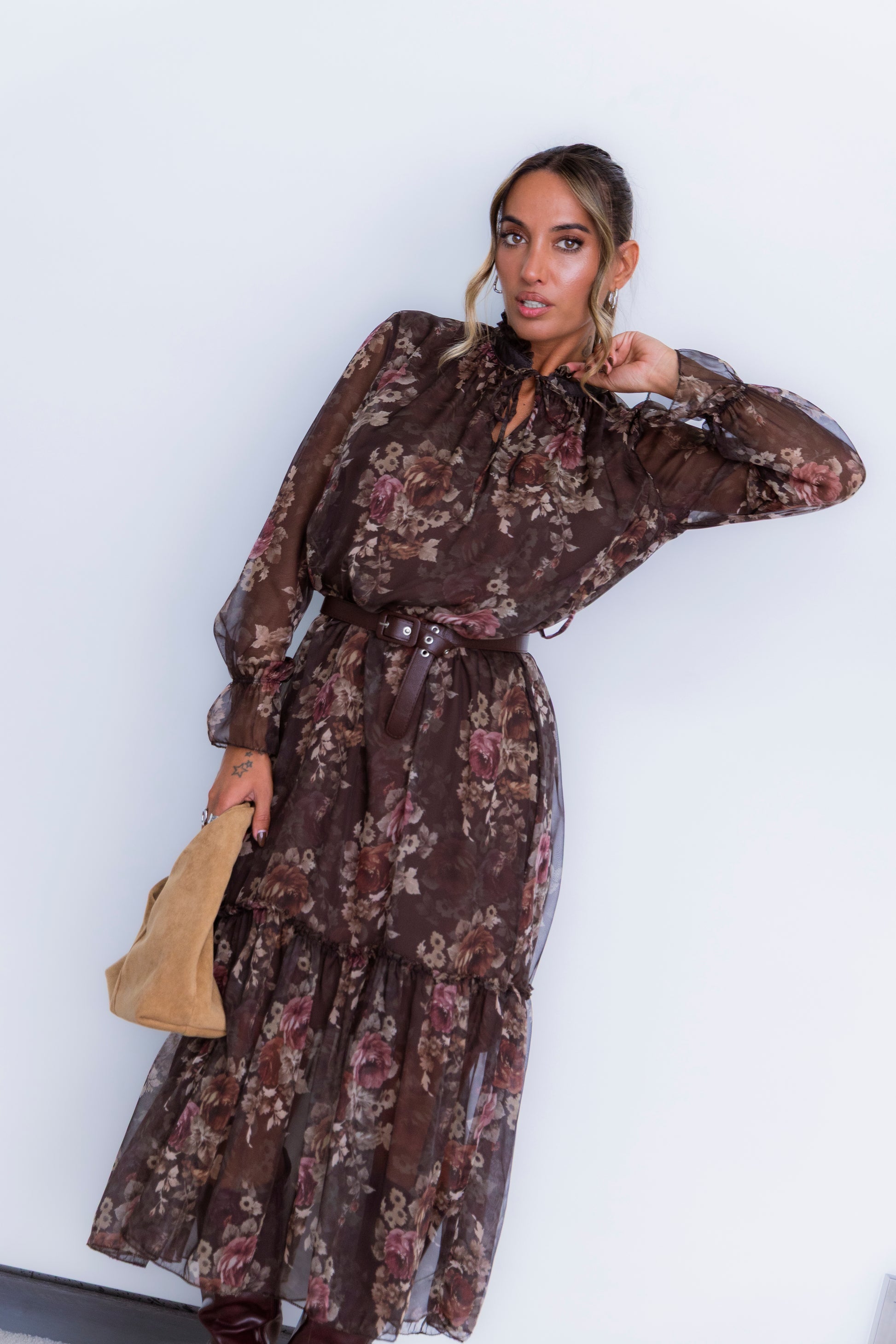 Vestido florido - castanho