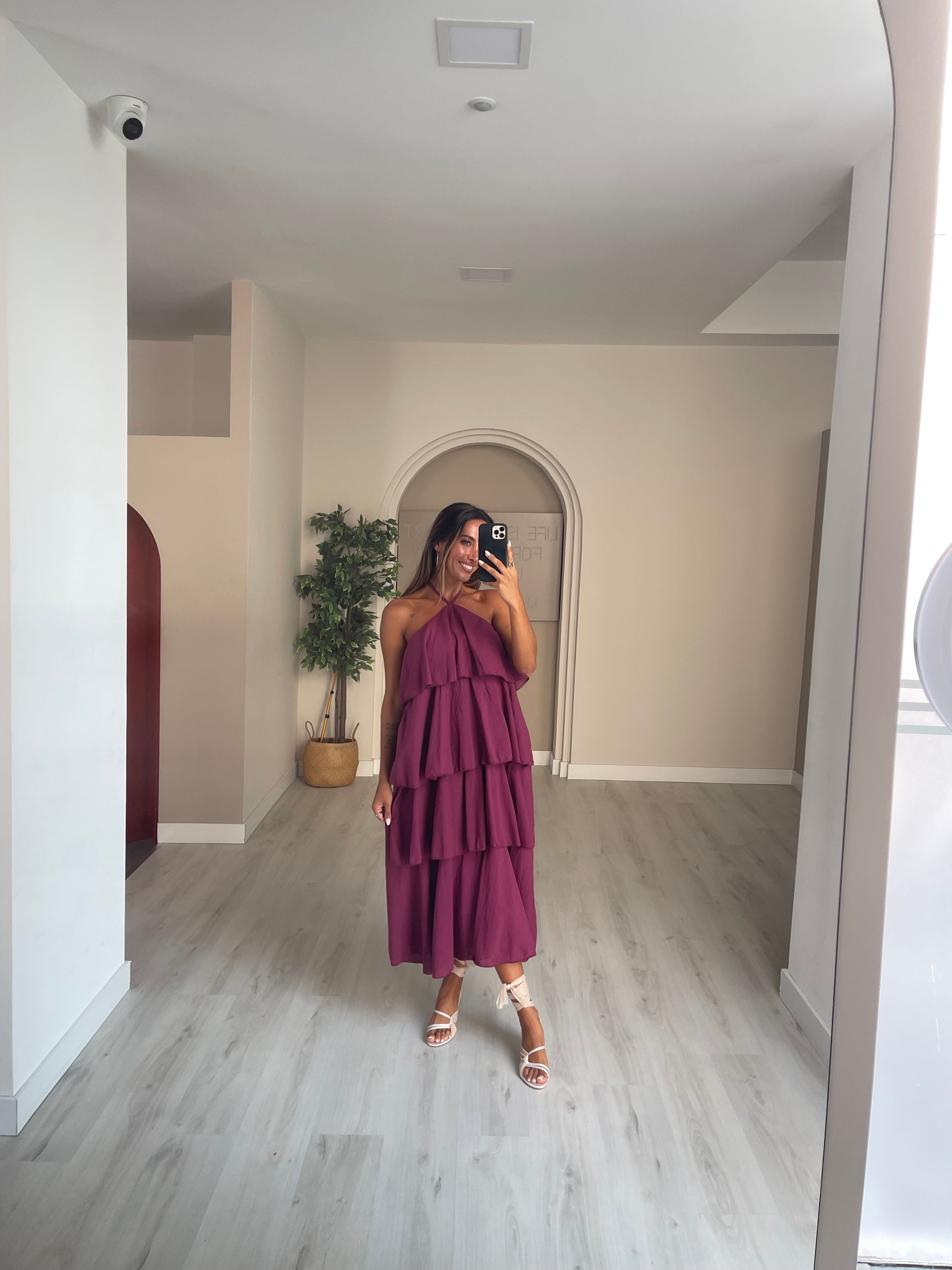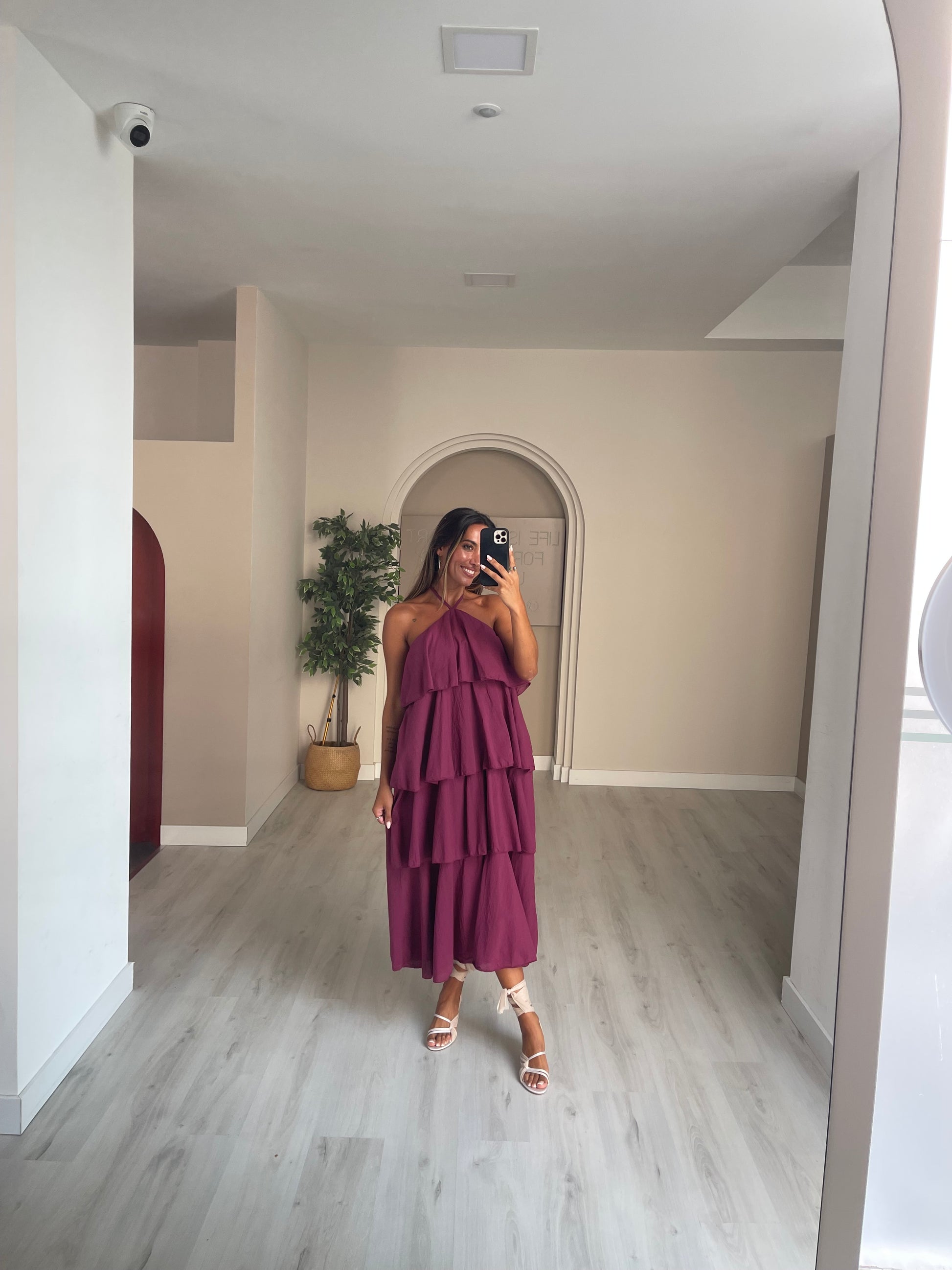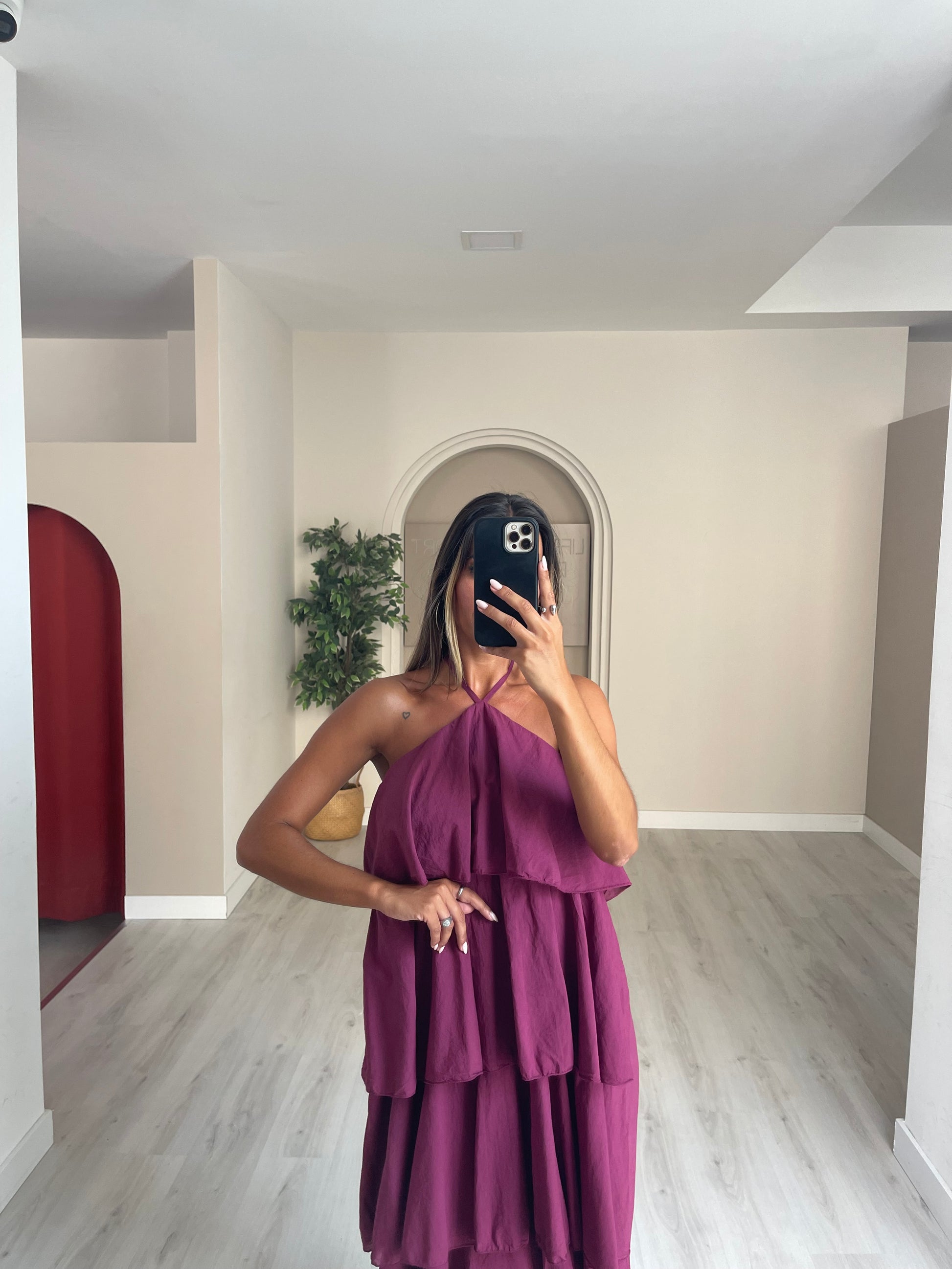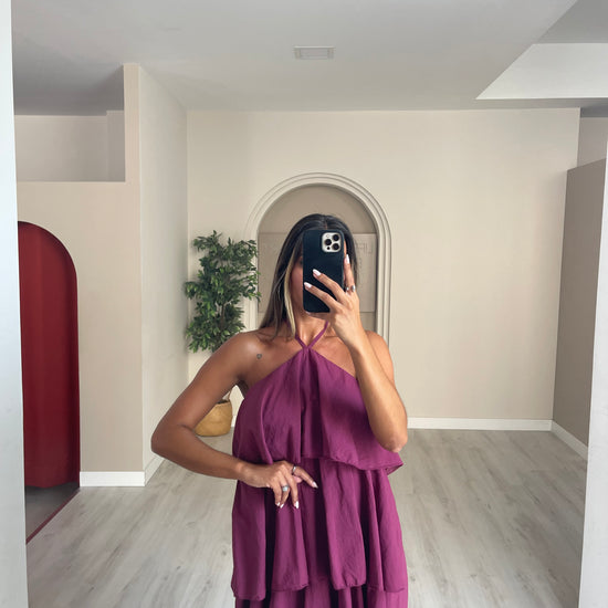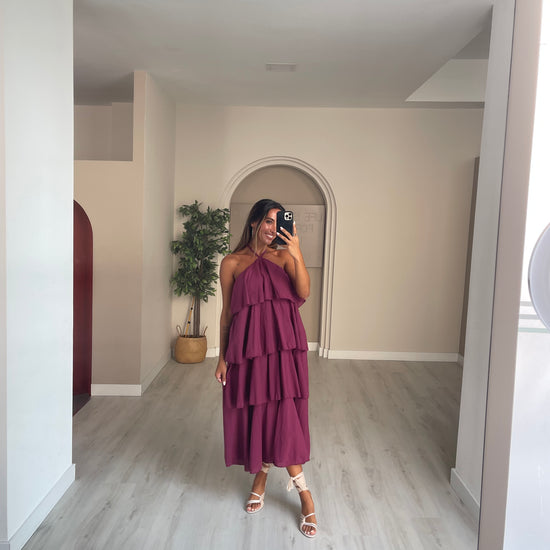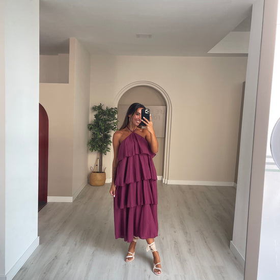 Vestido folhos - beringela