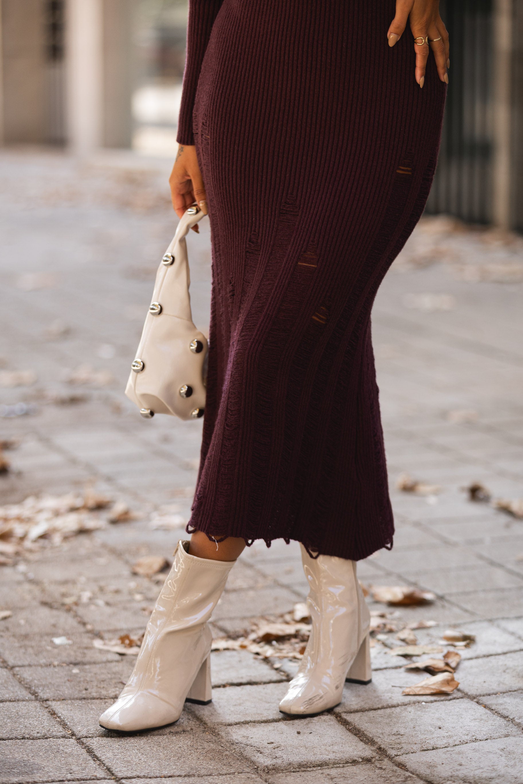Vestido em malha com pormenor esfiapado no remate