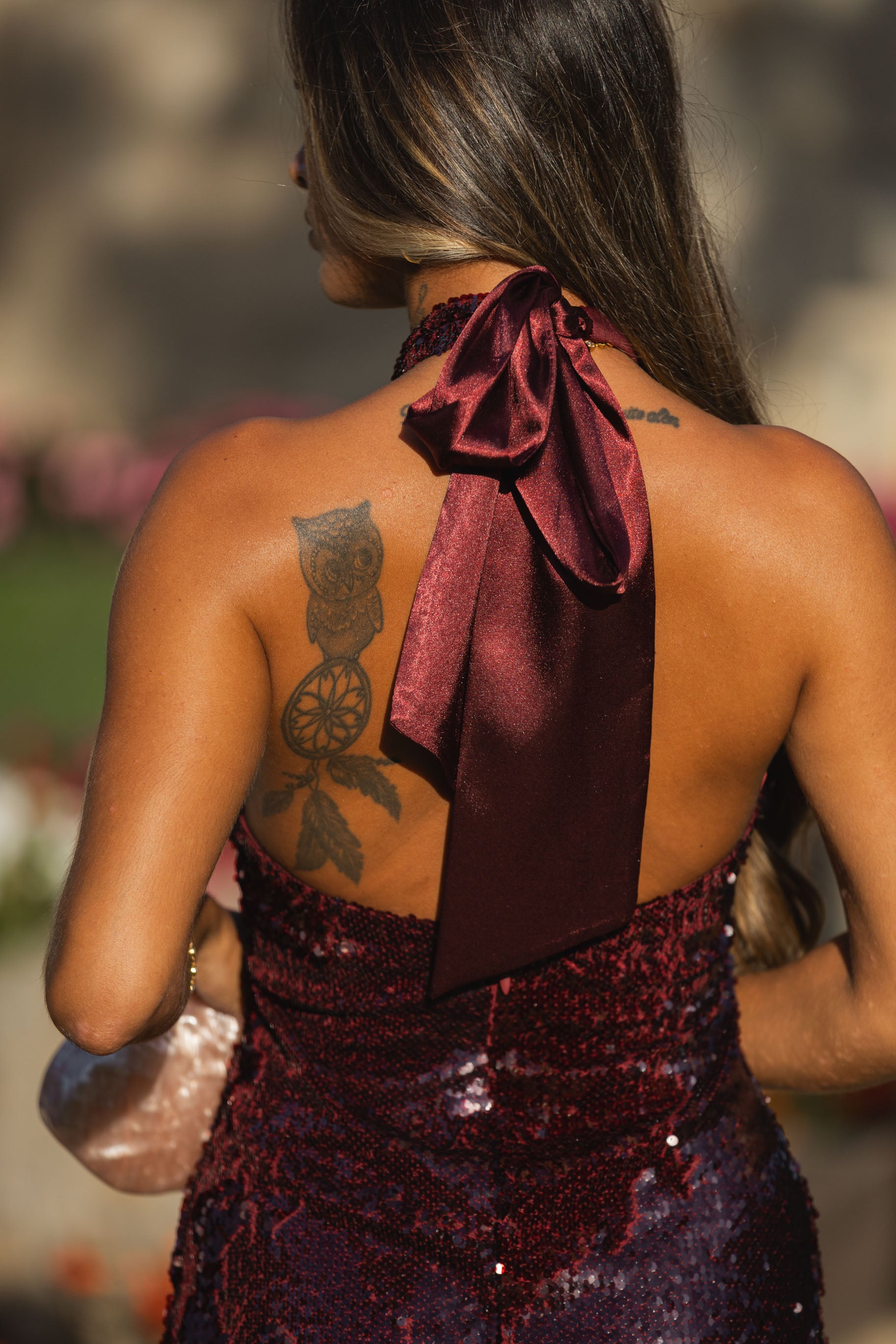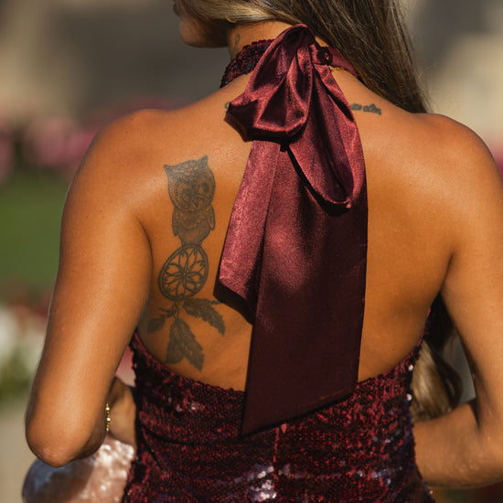 Vestido halter c/ lantejoulas - bordeux