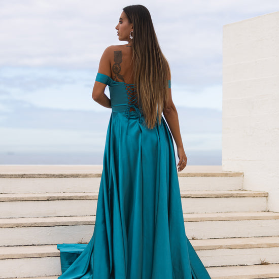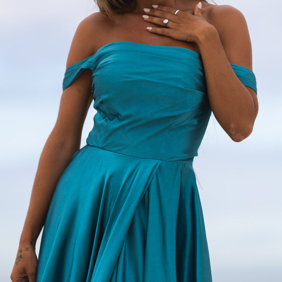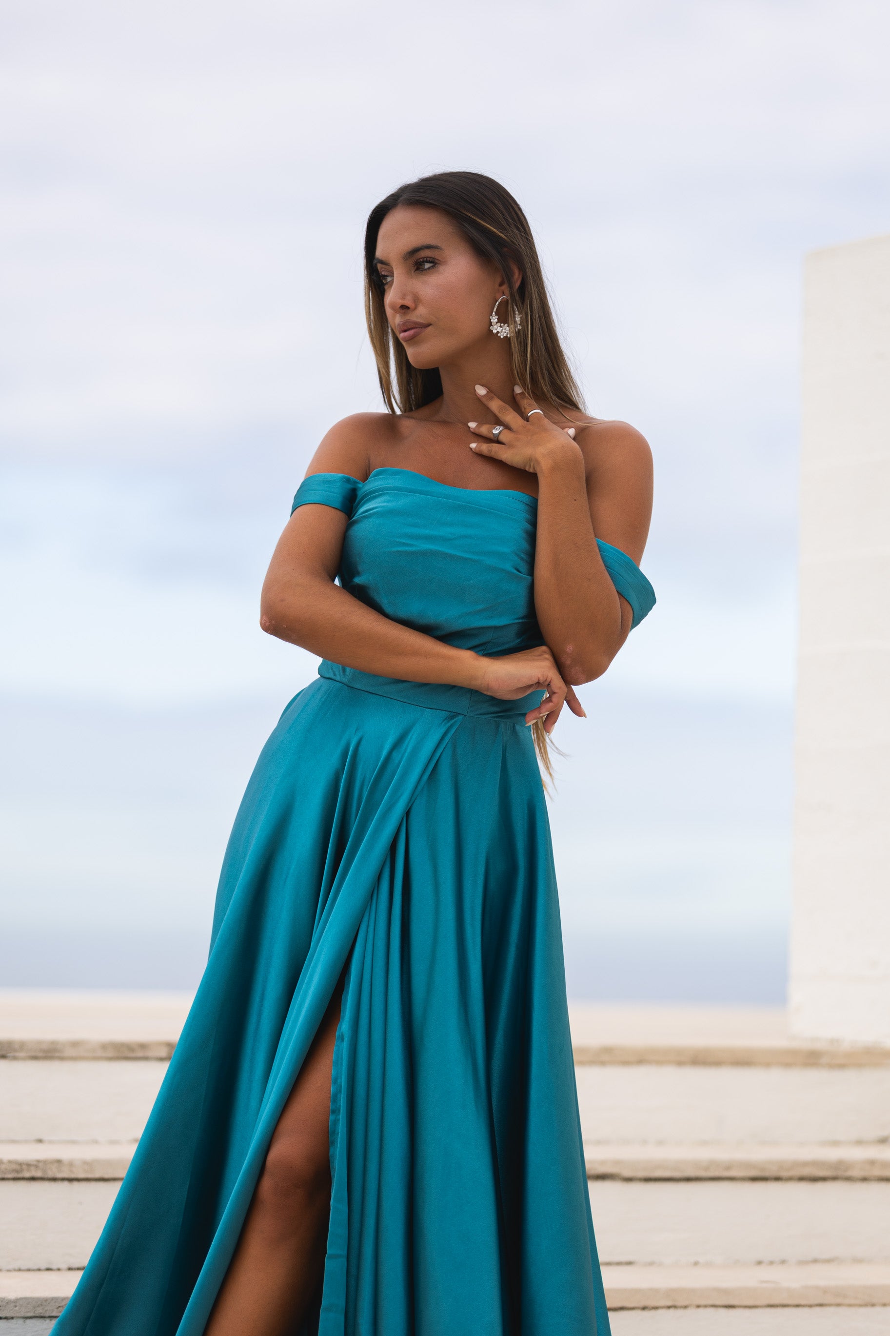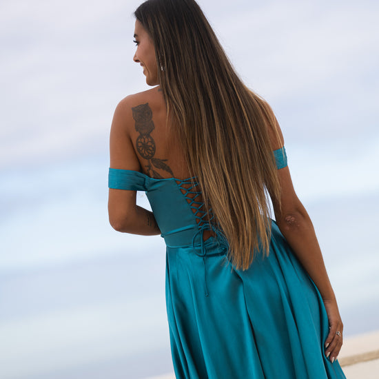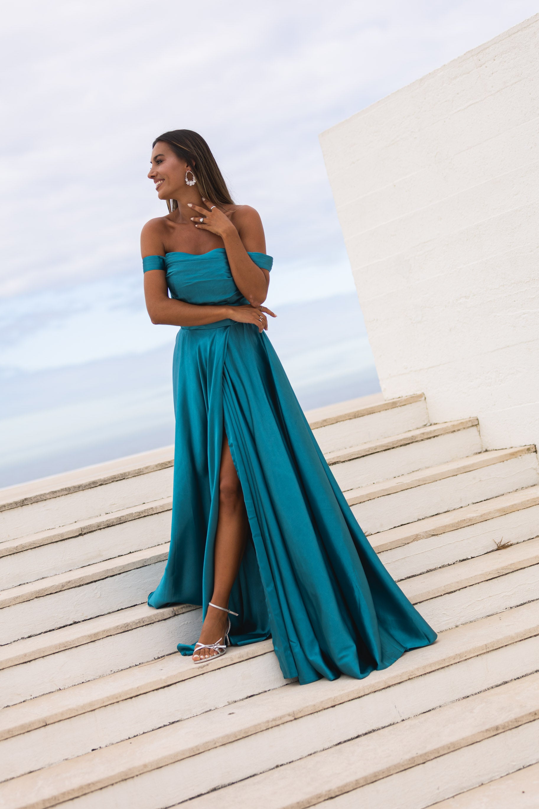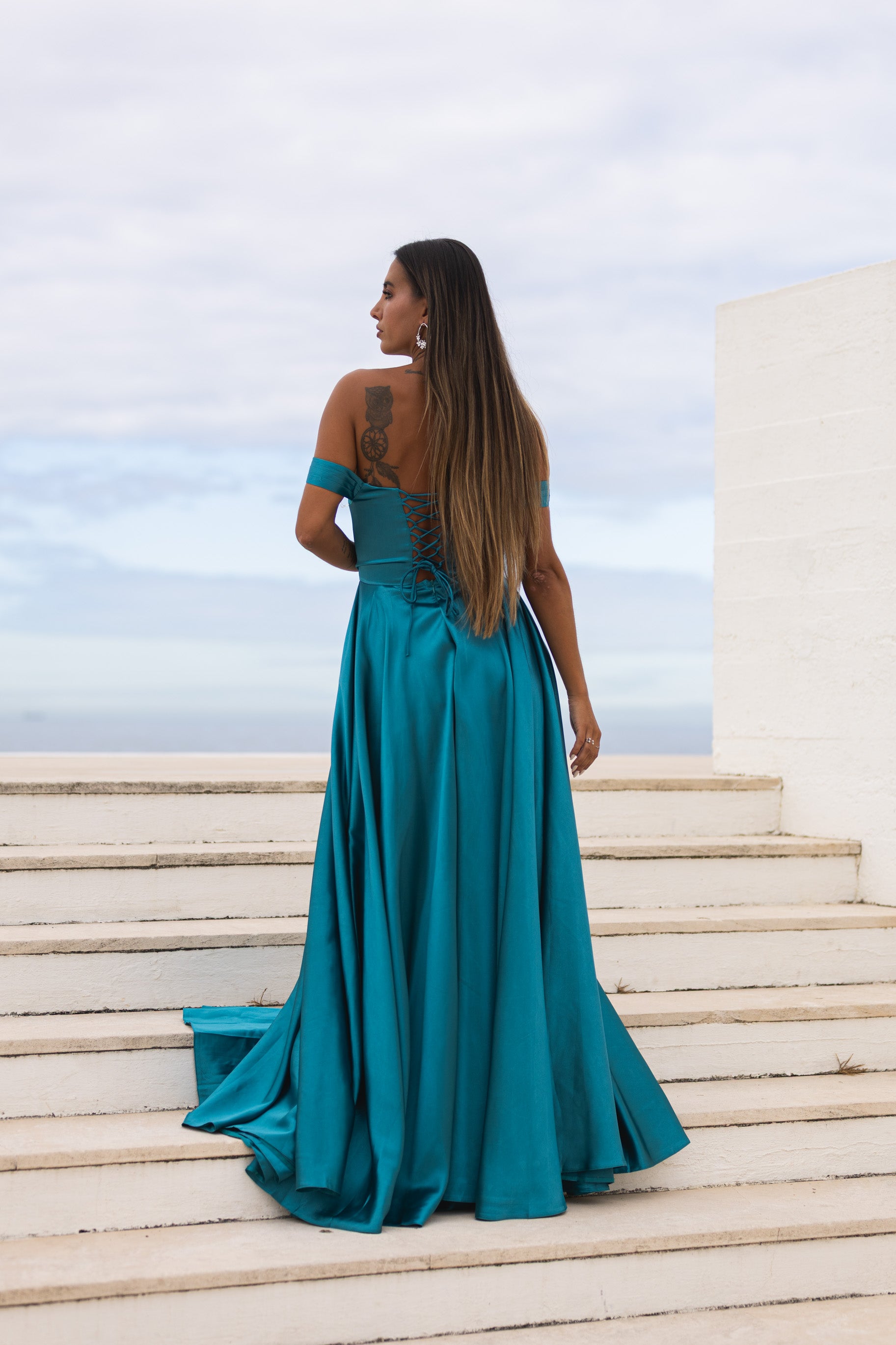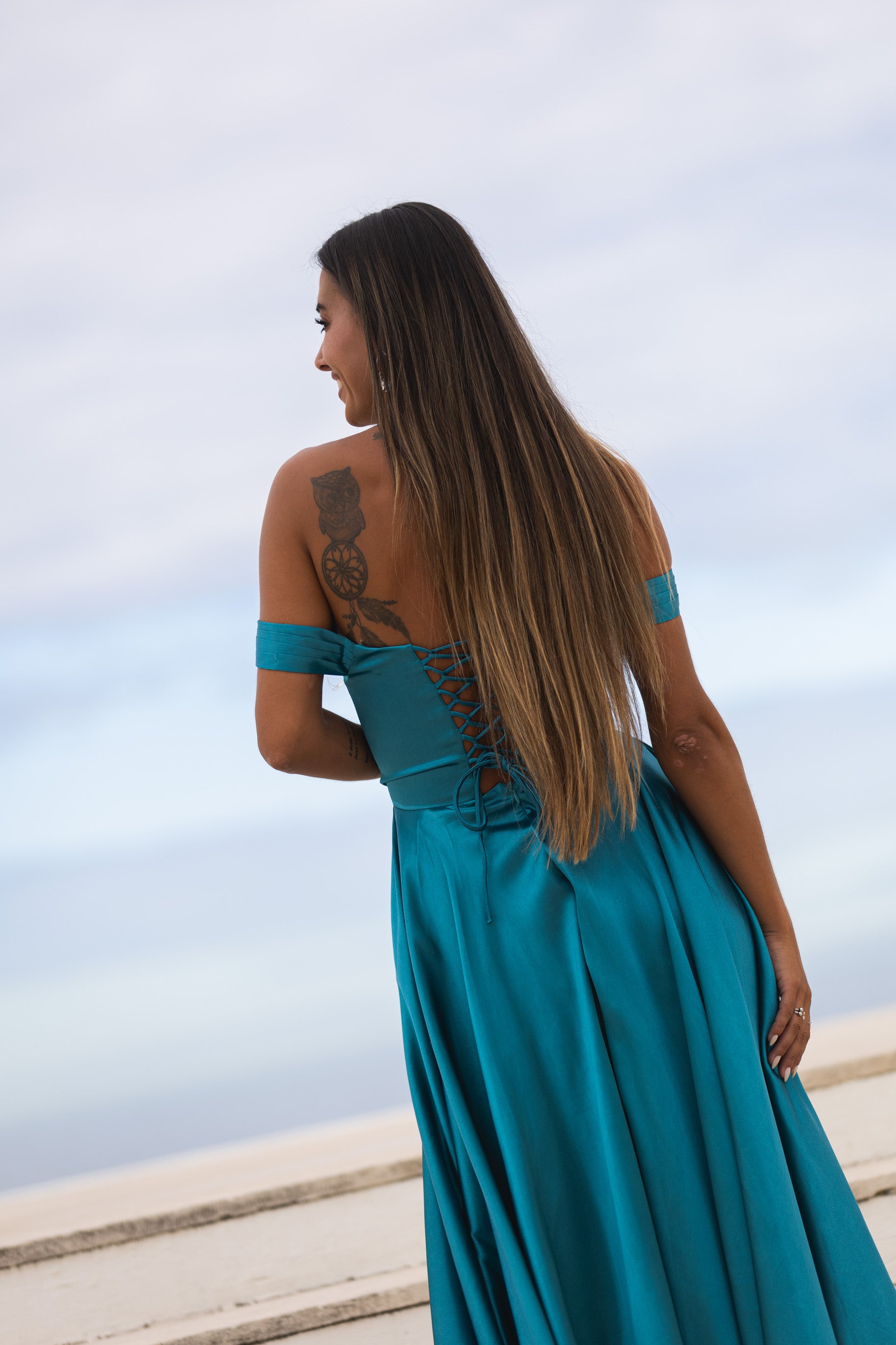 O tecido do vestido é bandage, que faz um efeito compressão como se tivesse uma cinta vestida.