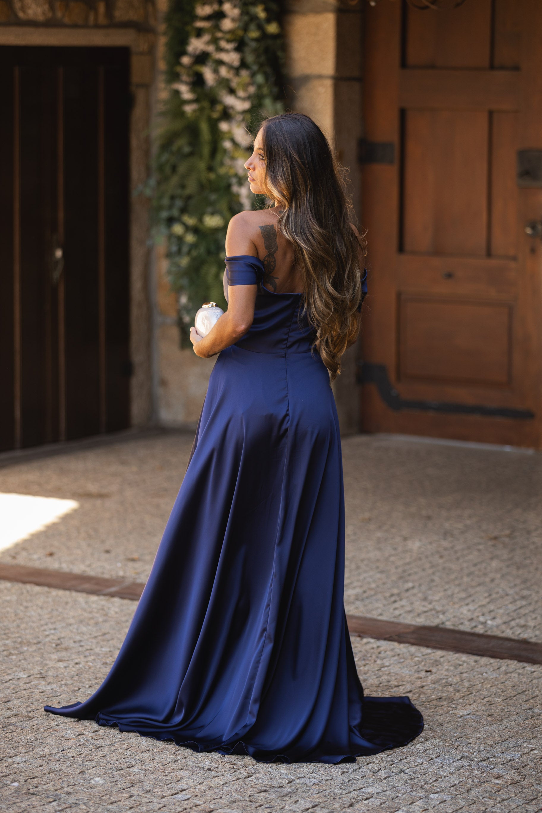 O tecido do vestido é bandage, que faz um efeito compressão como se tivesse uma cinta vestida.
