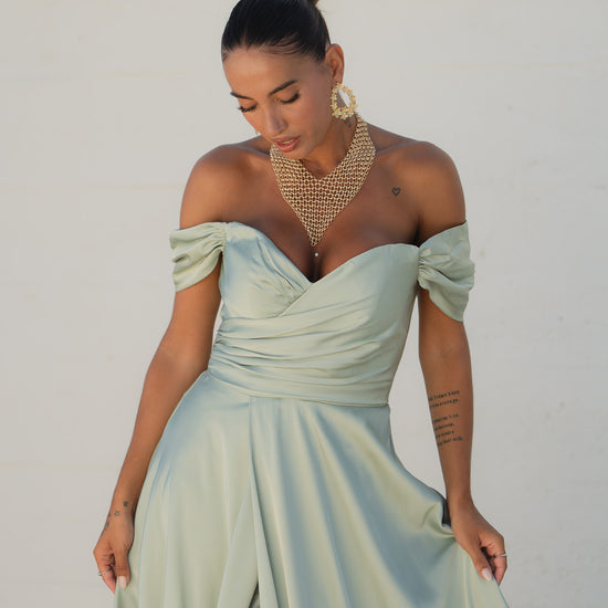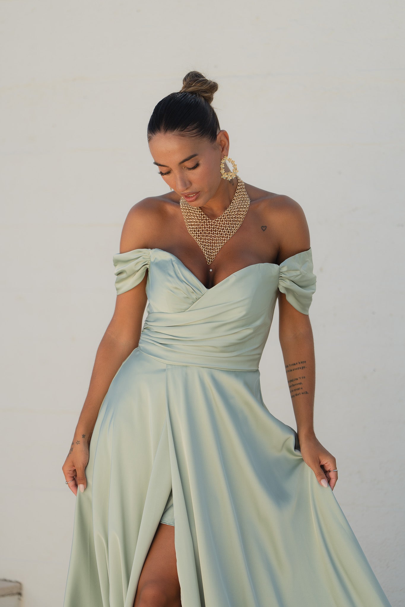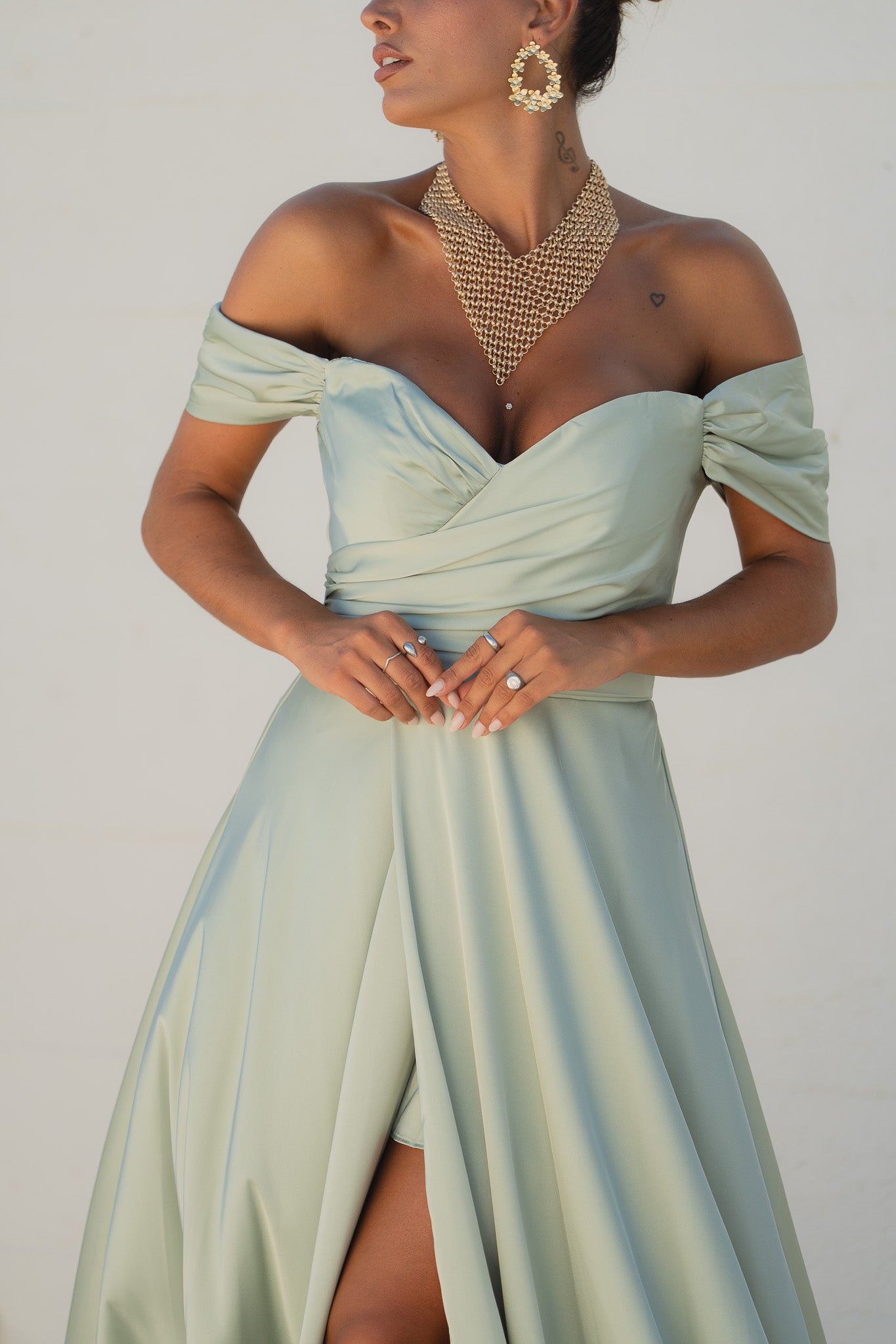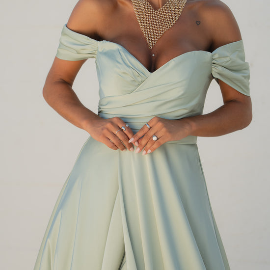 O tecido do vestido é bandage, que faz um efeito compressão como se tivesse uma cinta vestida.